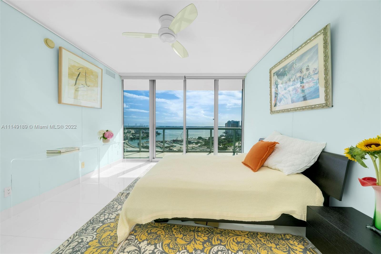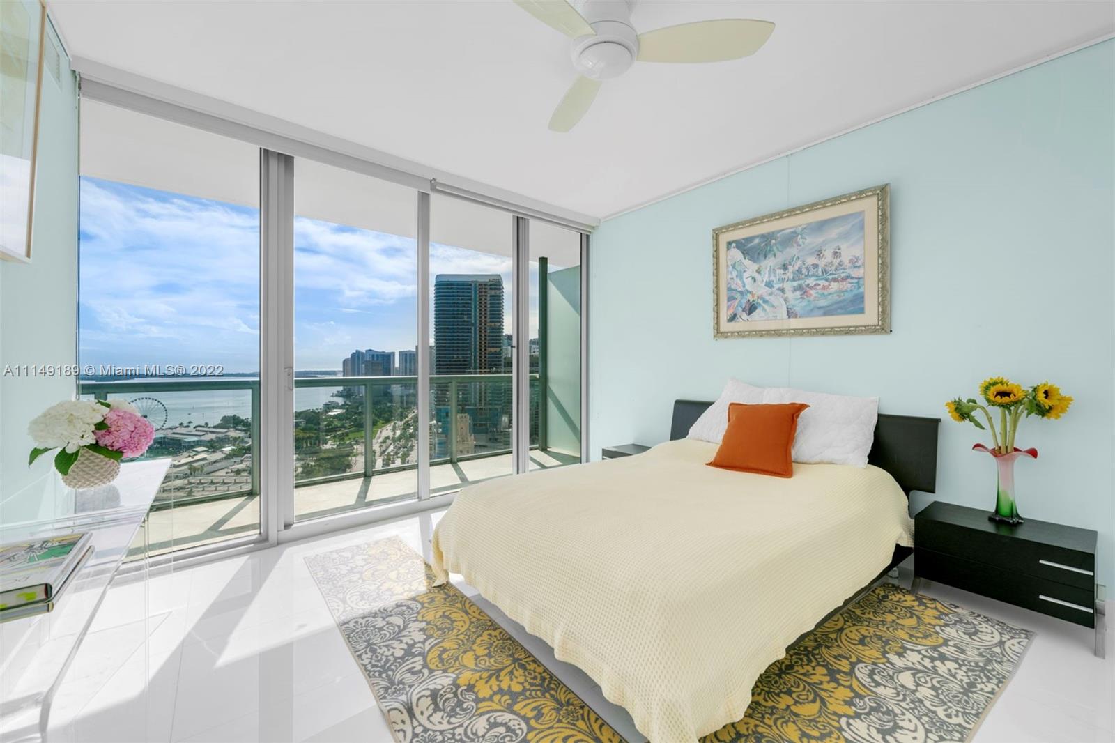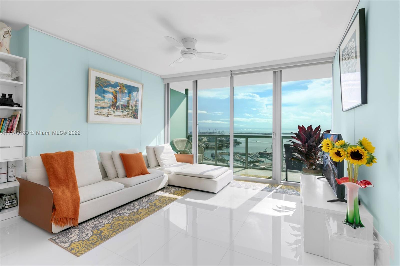 Welcome home to a large 1-Bed + Den condo on the 32nd floor overlooking the Miami Bay, Ocean & City. Featuring white marble floors, the residence delivers a lot of natural light with stunning sunrises coming from the East exposures to the bay. The spacious balcony is accessible from both the living & bedroom area providing picture perfect views. The residence is also equipped with built-out closets, a large master walk-in closet and custom built-ins in the kitchen. Located in Marina Blue, with sunrise & sunset pools, a volleyball court, a huge gym & jacuzzi, a BBQ area, art filled hallways and more. Right in the middle of Downtown Miami, close to the airport, Miami Beach, all of the major highways and where many prominent entertainment centers & projects are underway.