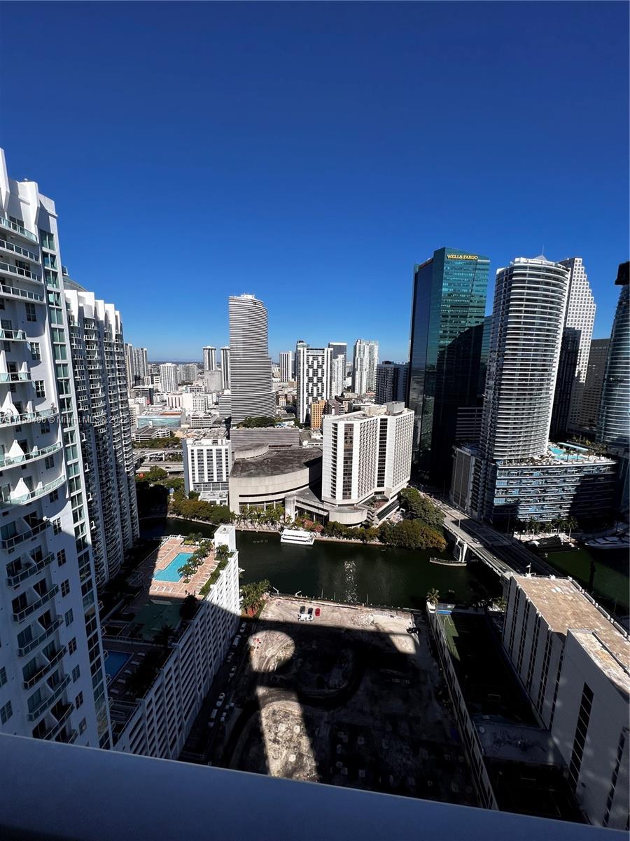 Great views from this split-plan 2Bed / 2Bath high-floor unit at 500 Brickell. Lots of natural light, large balcony overviewing the Miami River and skyline. U Unit has porcelain floors, it is vacant and ready to move in. EASY TO SHOW.