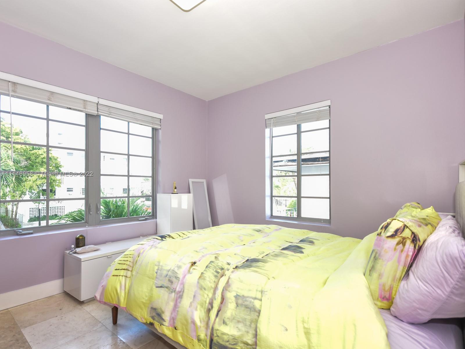Spacious Corner unit features 2/2 located in the heart of South Beach. Unit boasts a lot of windows which brings in a lot natural light. Art Deco unit with 9 foot ceilings, 2 master bedrooms, one has en suite renovated bathroom with walk in shower. 2nd master bedroom has a shower/bath combo bathroom. Large renovated kitchen with a lot of cabinets and counter space. Wash/dryer in unit. Located just south of Flamingo Park and walking distance to Alton Road, Collins Ave, Washington Ave and Ocean drive along with the beach.