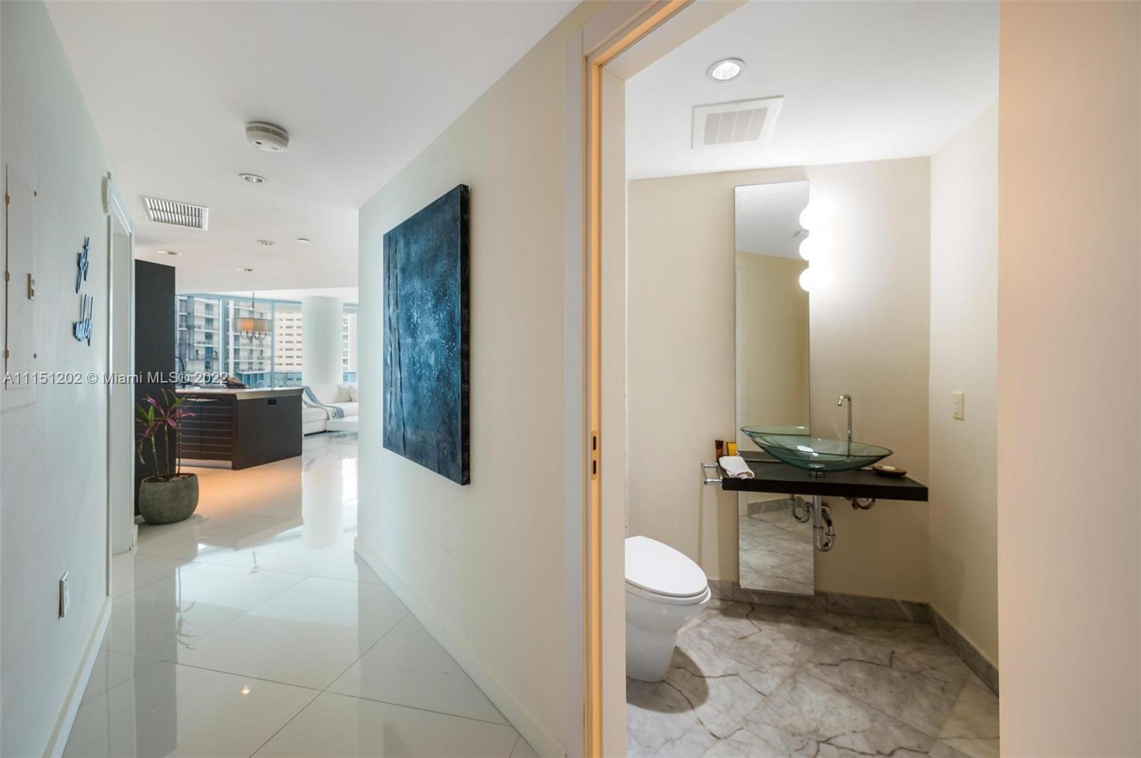 Spacious and bright 2 bedrooms / 2,5 bathrooms unit with floor to ceiling windows, and an oversized 280 sqft balcony, offers 180° views of ocean, bay and city. Primary suite with extra large walk-in closet, jet bath tub and shower, top-of-the-line finishes, porcelain flooring throughout and marble in the bathrooms. Unit is in perfect condition. Located in one of the finest luxury residences in Downtown with famous Miami happy hour by the infinity pool and high end restaurants such as Zuma, Novikov and Area 31. Sophisticated amenities include Exhale fitness center & spa, 2 pools, 24h concierge and marina access.