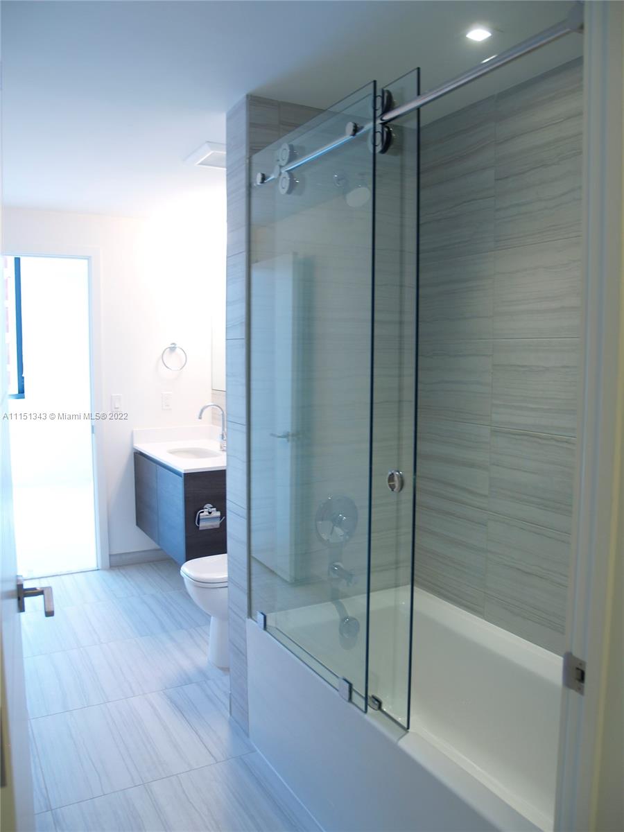 Amazing unit 1 Bedroom plus BIG DEN with closet included. Unit has ceramic floor, walking closet and blinds. Smart A/c Nest in unit. Glass sliding doors in shower tub. 1 Assigned cover parking. Amenities such as Salt water pool, BBQ area, Gym, Party room with kitchen. 24 hours security at lobby.