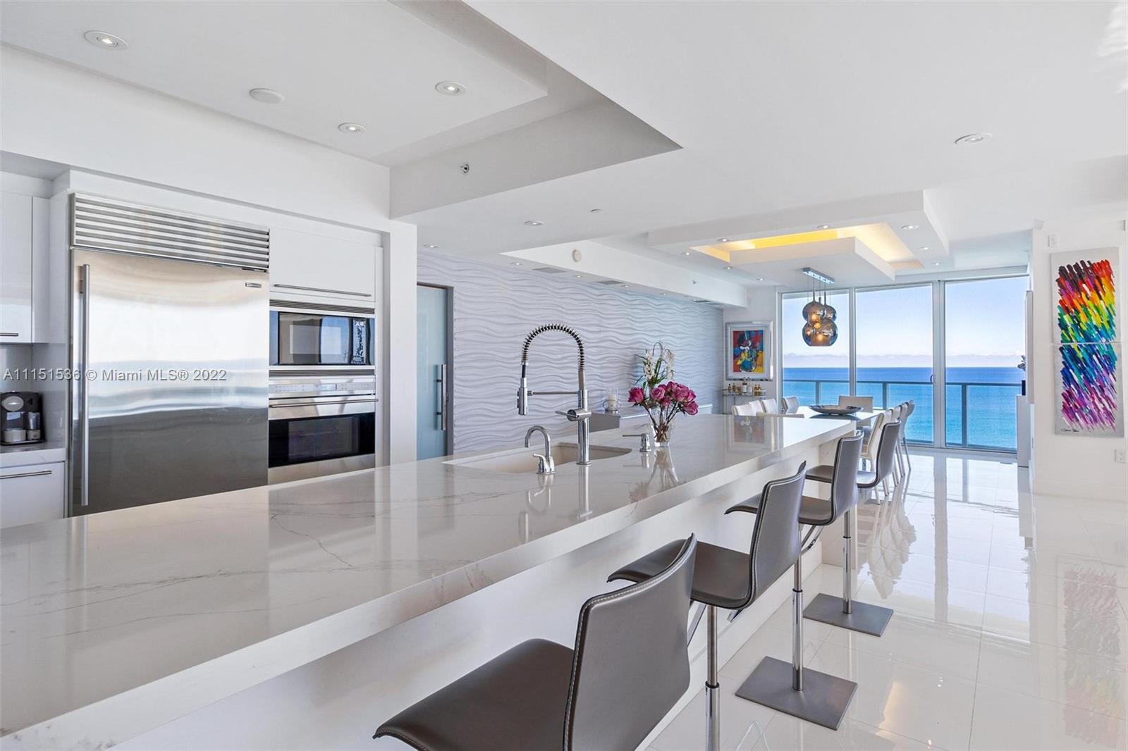 Spectacular beachfront condo, Hollywood Beach's most exclusive Apogee Beach, Sunset & Sunrise views. SE corner unit w 4 BRs +den/ 4.5 Bths, 3240 sq.ft + 540 sq.ft wraparound balcony. $800K of upgrades, furnished & decorated, floor to ceiling high impact windows, Smart home, automated w/latest technology & custom lights, Porcelain white floors, Italian built-in cabinetry, stainless steel appliances, Quartz counter-tops, custom closets, Italian interior doors & modern high-end Italian furniture, Amenities: Heated pool, fitness, club room & game room, billiards, TV, 24/7concierge & comp. guest valet, sauna, massage rms, lounge chairs & day beds overlooking Atlantic Ocean. Price Includes poolside designer-furnished Cabana $250K Value, 2 assigned parking spaces & large storage room $30K value