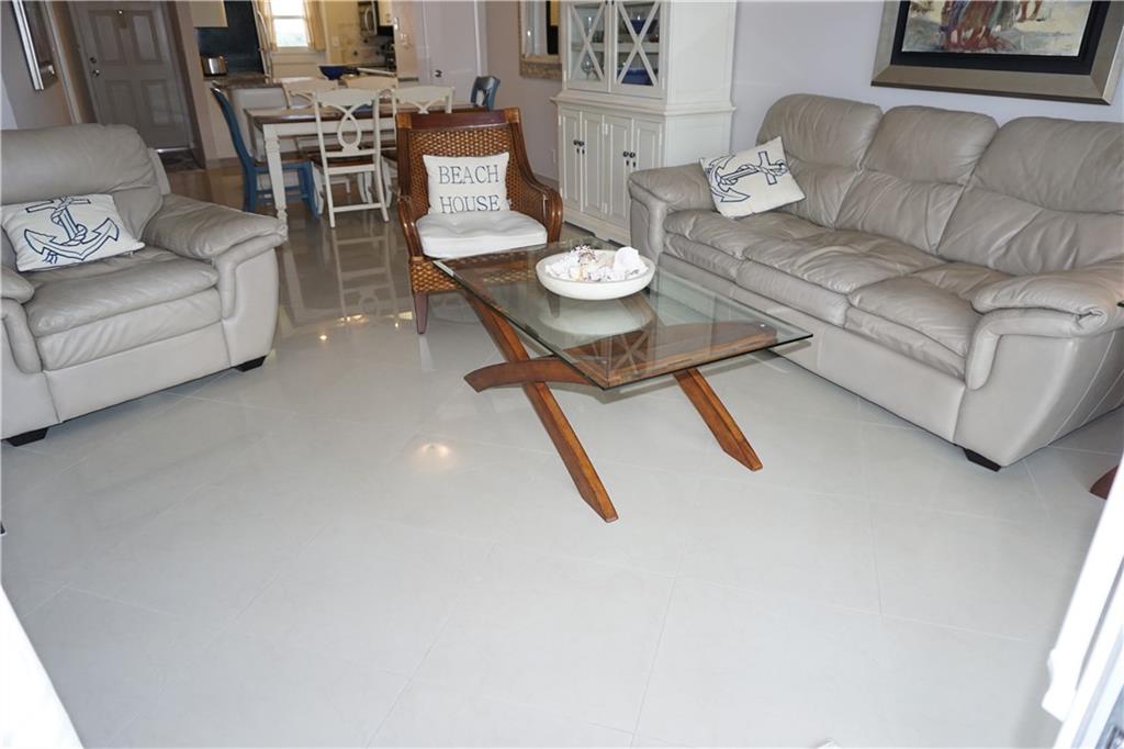 Beautiful condo in an ocean front complex. Nice partial ocean views. Large Porcelain tile and granite counter in kitchen. All hurricane windows. Immaculate maintained baths. Good fixtures, fans and appliances. Open balcony. The building is being refreshed and painted white with aqua trim. The pool and amenities are also scheduled for a facelift. Private gate to the ocean, bocce court, putting green and picturest grounds. One of the lowest maintenance on the beach. Locked lobby. This beauty has a renter until April 30 so we can show but not occupy until May