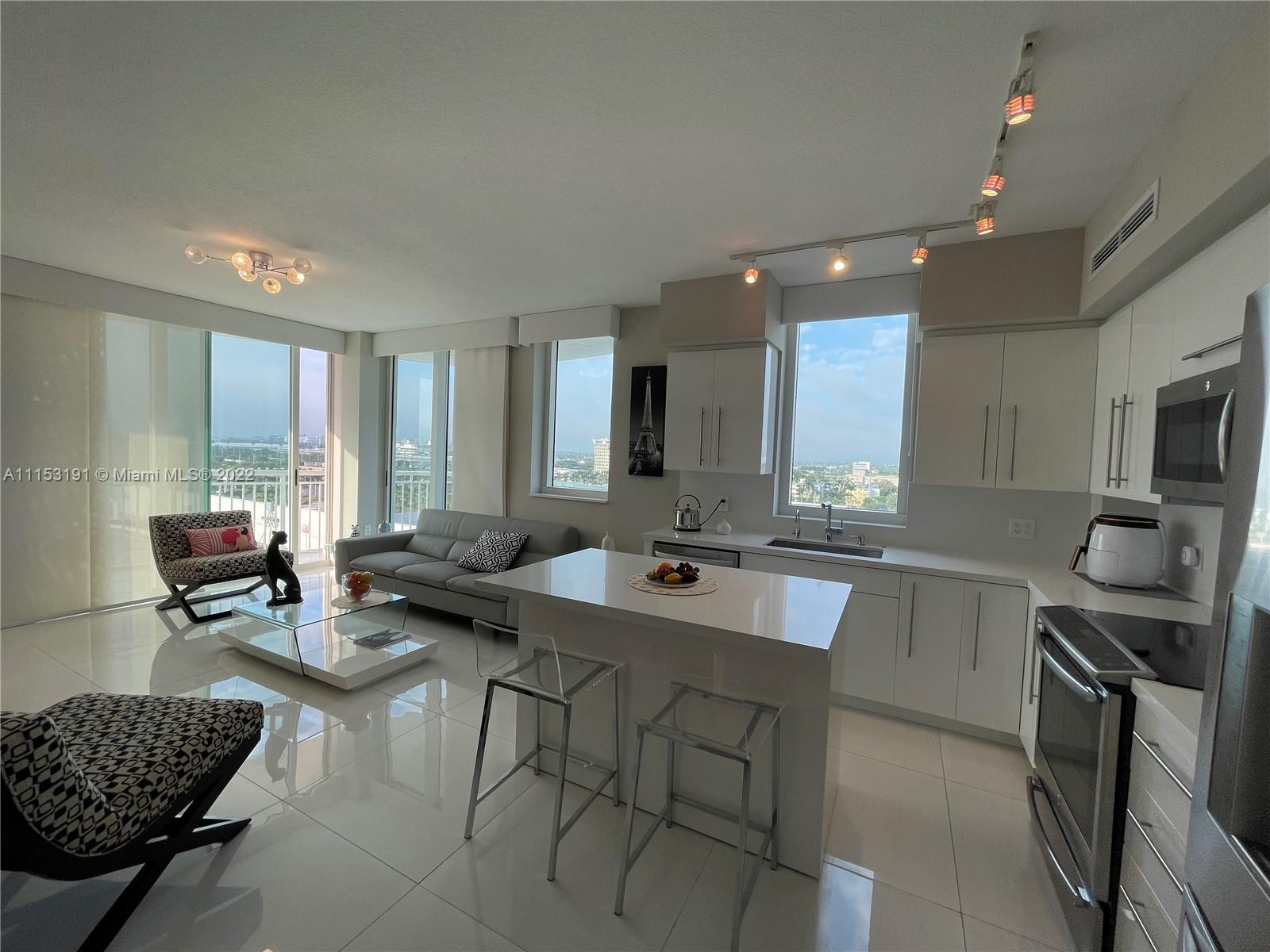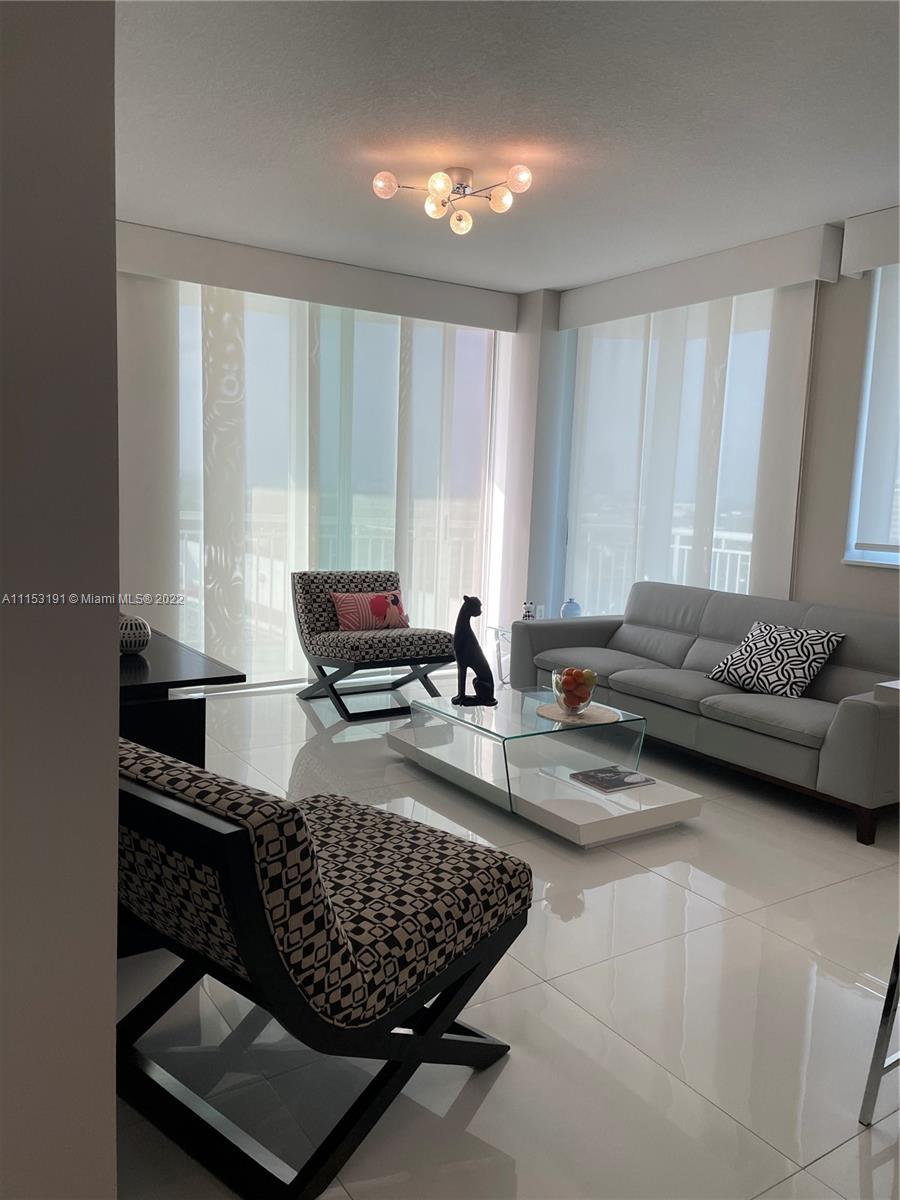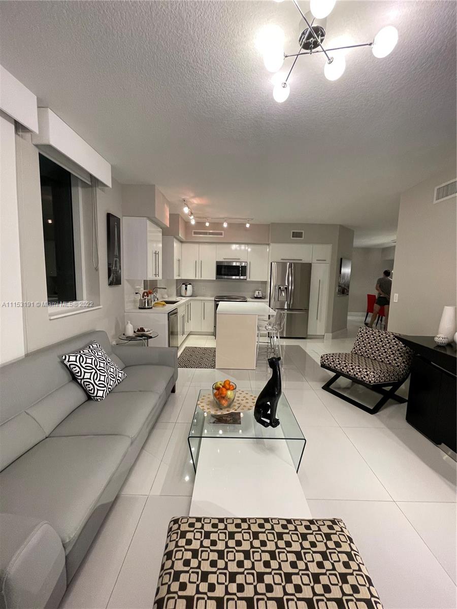 Luxury at its Best at the Desirable Resort-Style Living !!! Immaculate, Completely Remodeled Corner Unit Offers a Beautiful Contemporary Lifestyle. Gorgeous Open Kitchen, High Gloss Cabinets, Quartz Counter Tops, High-End Stainless Steel Appliances, Movable Kitchen Island That Will Help You Rearrange Your Space in Seconds! Impact Windows and Doors. Customized Window Treatments, Fabric Sliding Panels, Fabric Wrapped Valances & Blackouts. Ample Main Bedroom, Custom Closets & Doors. Tastefully Remodeled Bathrooms. Sophisticated Built-In Banquette Seating in Dining Area. Elegant Porcelain Floors & Light Fixtures Throughout. Built-In Work Space in 2nd Bedroom. Amazing City Views From Your Wrap-Around Balcony. Newer Washer and Dryer. Resort-Style Amenities!! This is a Must See!!