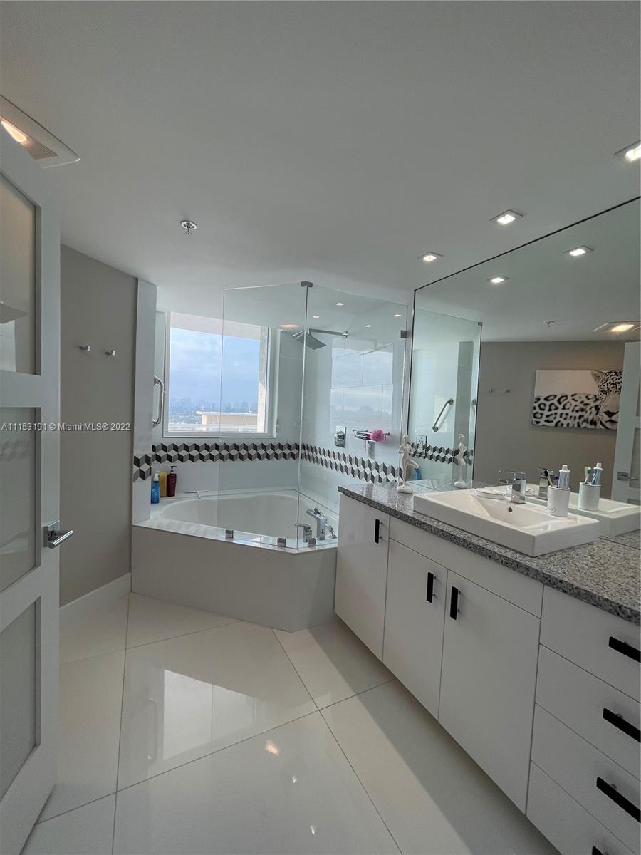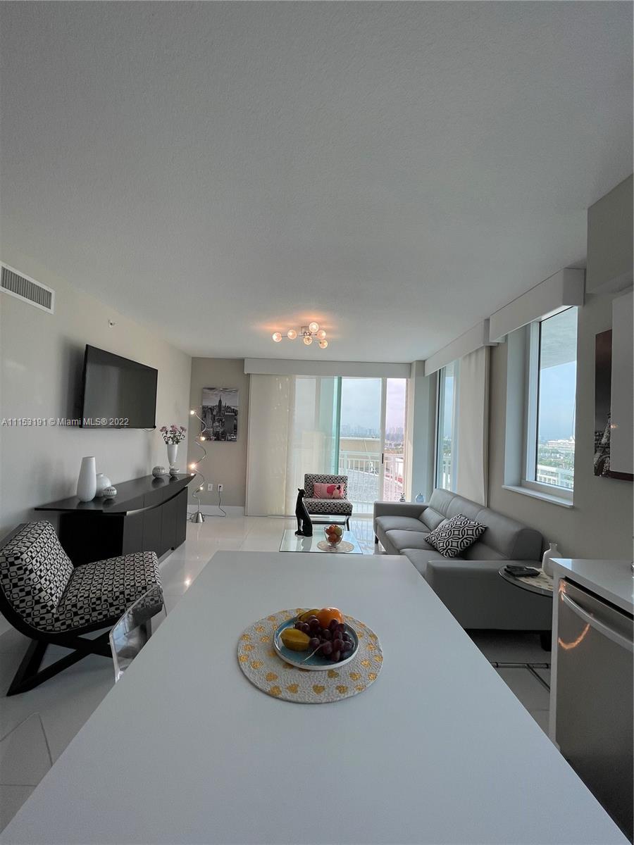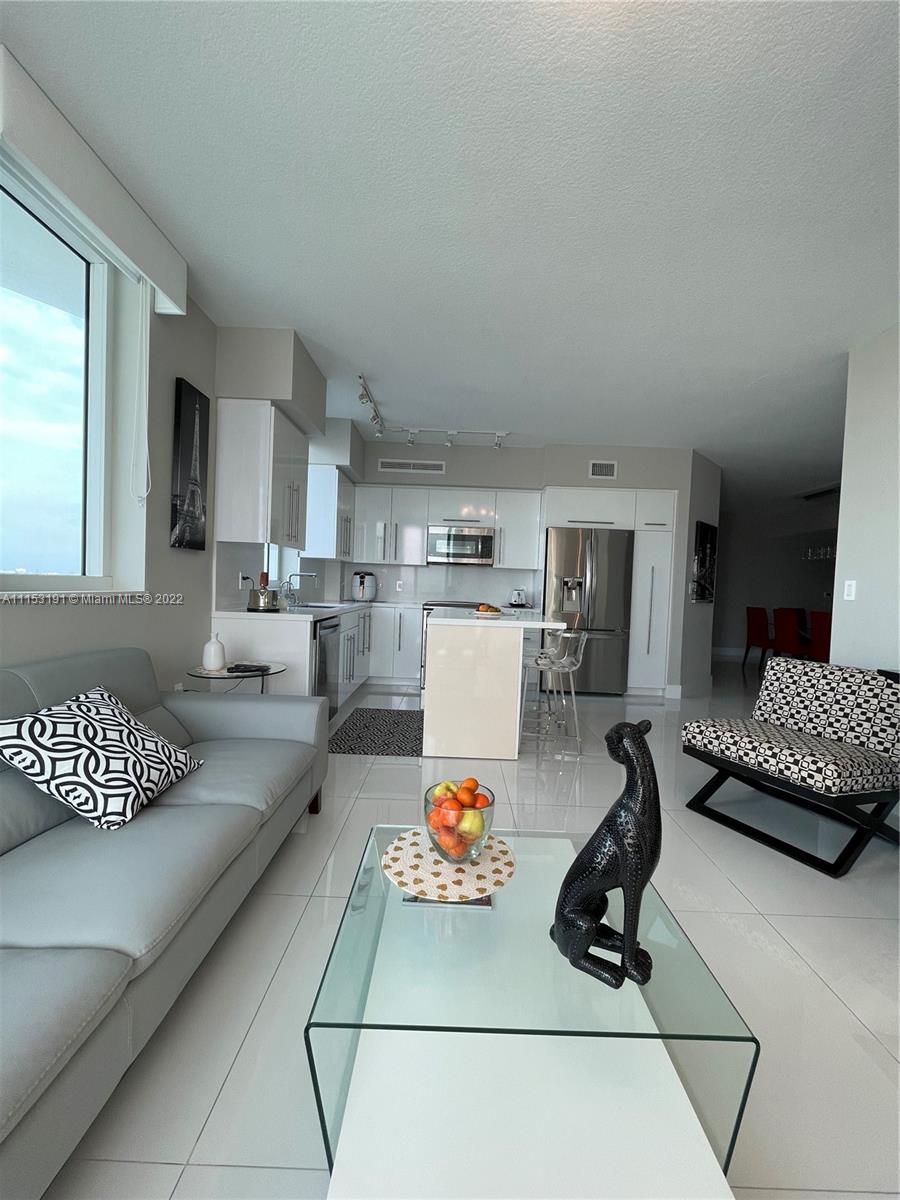 Luxury at its Best at the Desirable Resort-Style Living !!! Immaculate, Completely Remodeled Corner Unit Offers a Beautiful Contemporary Lifestyle. Gorgeous Open Kitchen, High Gloss Cabinets, Quartz Counter Tops, High-End Stainless Steel Appliances, Movable Kitchen Island That Will Help You Rearrange Your Space in Seconds! Impact Windows and Doors. Customized Window Treatments, Fabric Sliding Panels, Fabric Wrapped Valances & Blackouts. Ample Main Bedroom, Custom Closets & Doors. Tastefully Remodeled Bathrooms. Sophisticated Built-In Banquette Seating in Dining Area. Elegant Porcelain Floors & Light Fixtures Throughout. Built-In Work Space in 2nd Bedroom. Amazing City Views From Your Wrap-Around Balcony. Newer Washer and Dryer. Resort-Style Amenities!! This is a Must See!!