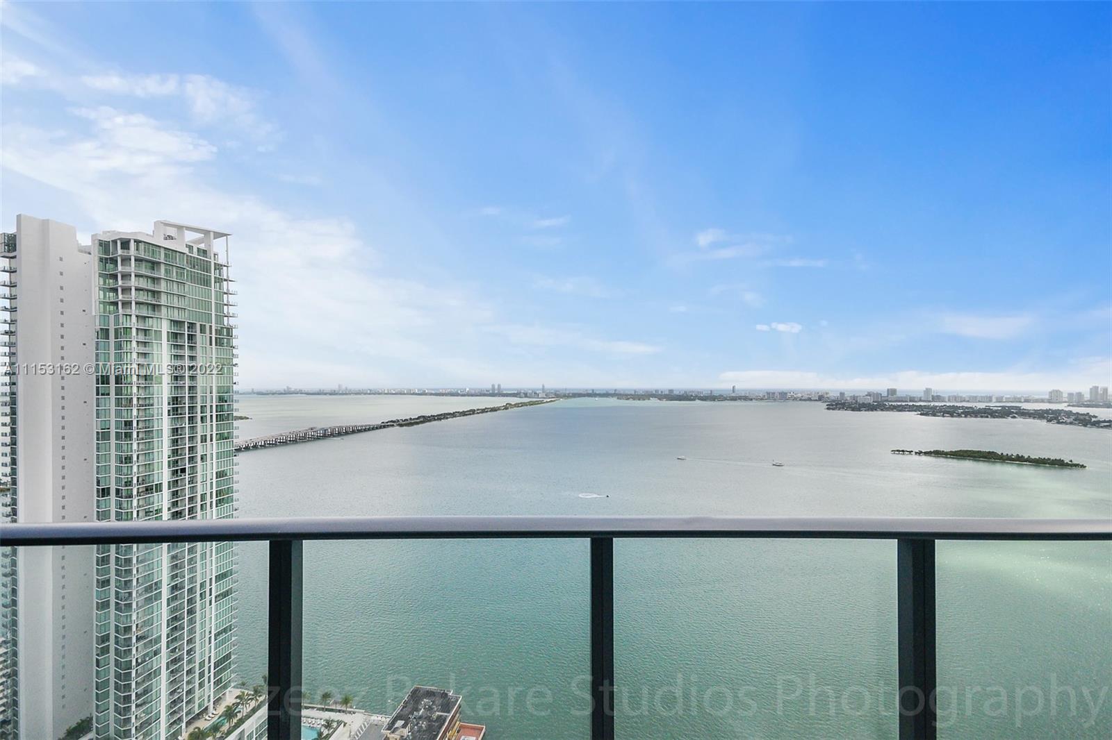 Beautiful PH with direct views of Biscayne Bay and Miami Beach. This spacious home in the sky features private elevator entrance to foyer with separate delivery entrance door. The high ceilings and direct sunlight provide spacious ambiance for family and guest to enjoy and entertain. Unit comes with Italian kitchen cabinets, porcelain tiles, custom closets, and more. Bldg amenities incl: pool, gym, spa, theatre room, 24 hours security, valet, and concierge. Located in the Edgwater district and within minutes to Design District, Beach, Brickell, and Airport. Call today for a private tour.