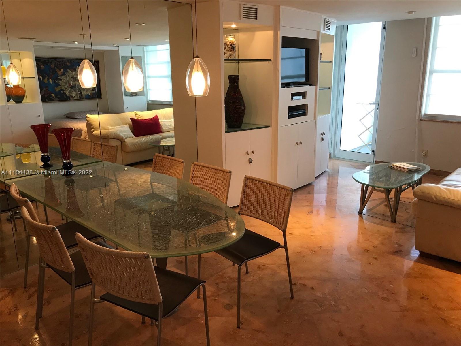 Absolutely great studio, balcony facing ocean pool & garden. Panoramic views! High impact windows, marble floors, glossy chic mink color cabinets, custom mirrors, SS sub zero, electric shades, walk-in closet, spa, recessed light. Building allows 30 days minimum, 12 leases per year. Top producer! Currently rented month to month for $3300. HOA includes: water, central A/C, internet, digital cable, reserves, insurance, 1 valet parking. Building is almost finished with the re-certification. Incredible location, walking distance to shops, restaurants, entertainment. Building offers 24 hrs security & front desk, management on site, biometric access, game room, laundry, mini market, lounge, receiving, heated pool, bike storage and more. Call now for an appointment 24 hrs notice for showings.