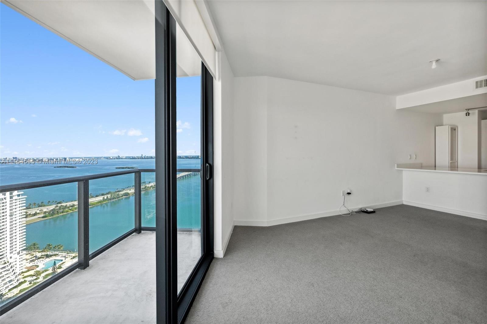 Beautiful 2/2 unit in Paraiso Bayviews. The fourth tower of the Paraiso mega project in Edgewater, offering spectacular 180 degrees of bay and city views in this 36th floor unit, with a deep and and spacious wrap around balcony, 9' high floor to ceiling windows, open kitchen concept, high end Bosch stainless steel appliances, with 2 floors of first class amenities including a rooftop infinity pool, jacuzzi, fitness center, theater, BBQ area and more. Units can be rented for a minimum of 30 days, for up to 12 times per year. Easy to show.