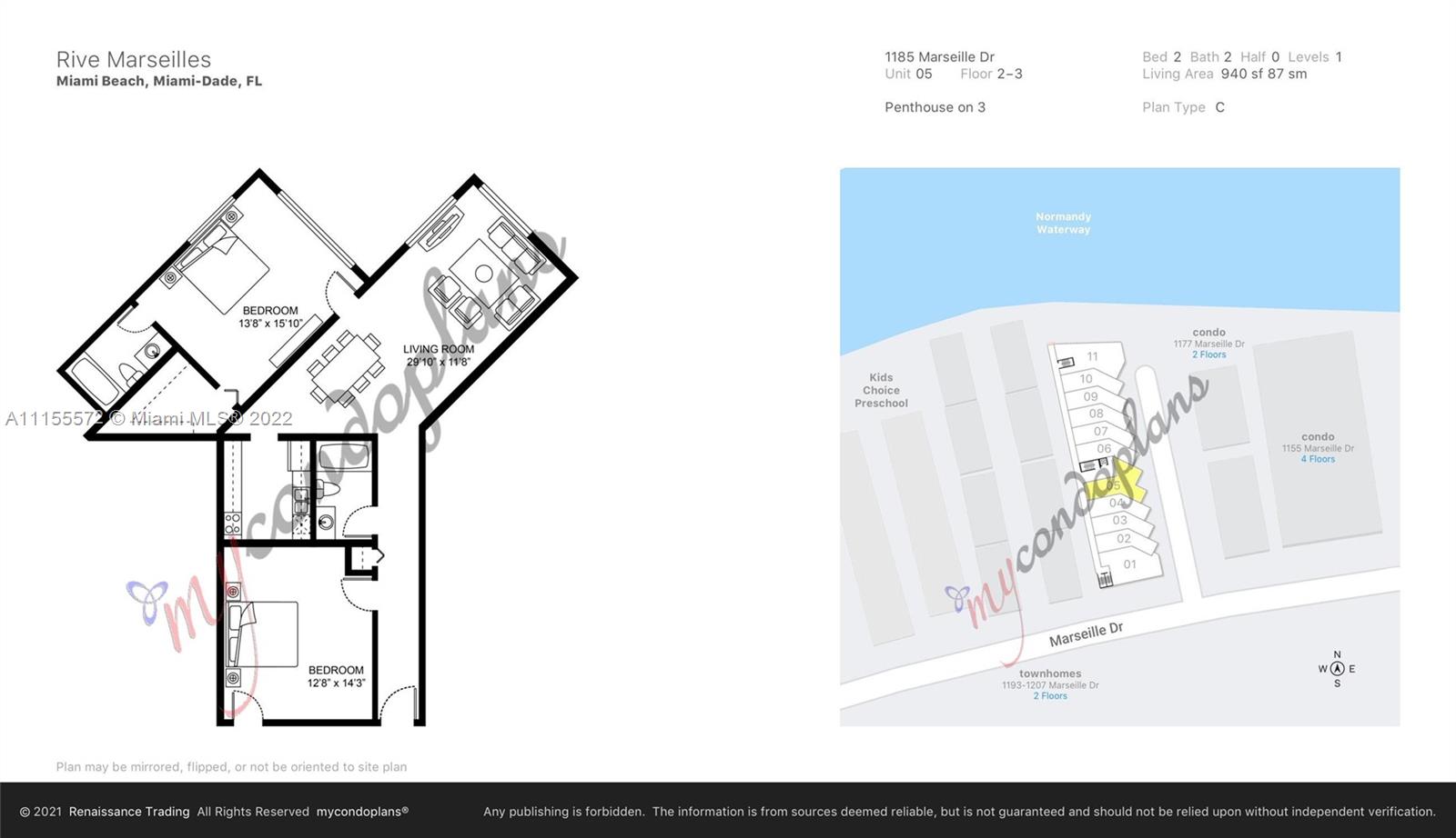 "RIVE MARSEILLES WATERFRONT CONDO! FURNISHED 2BR/2BA in Normandy Isle's premier boutique building steps from the beach and top-rated restaurants, movie theaters, and grocery stores. The unit boasts high ceilings, lots of natural light, tons of closet and storage space, tile flooring throughout, a large living area and dining area, and 1 ASSIGNED PARKING SPACE IN A gated parking. Gated Complex, Community pool & barbecue overlooking the water! Assigned parking, Shared Laundry Facility, very spacious, in Normandy Isles walking distance to ocean & stores, great restaurants! The building is fully gated with 24-hour security, pool, dock, laundry, and is beautifully manicured. A must-see!