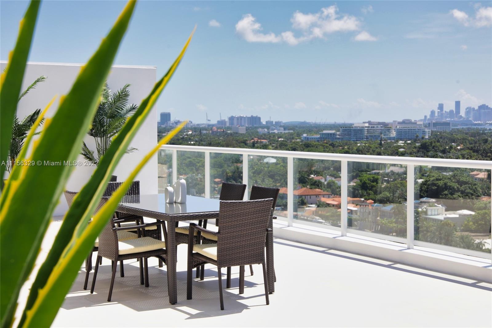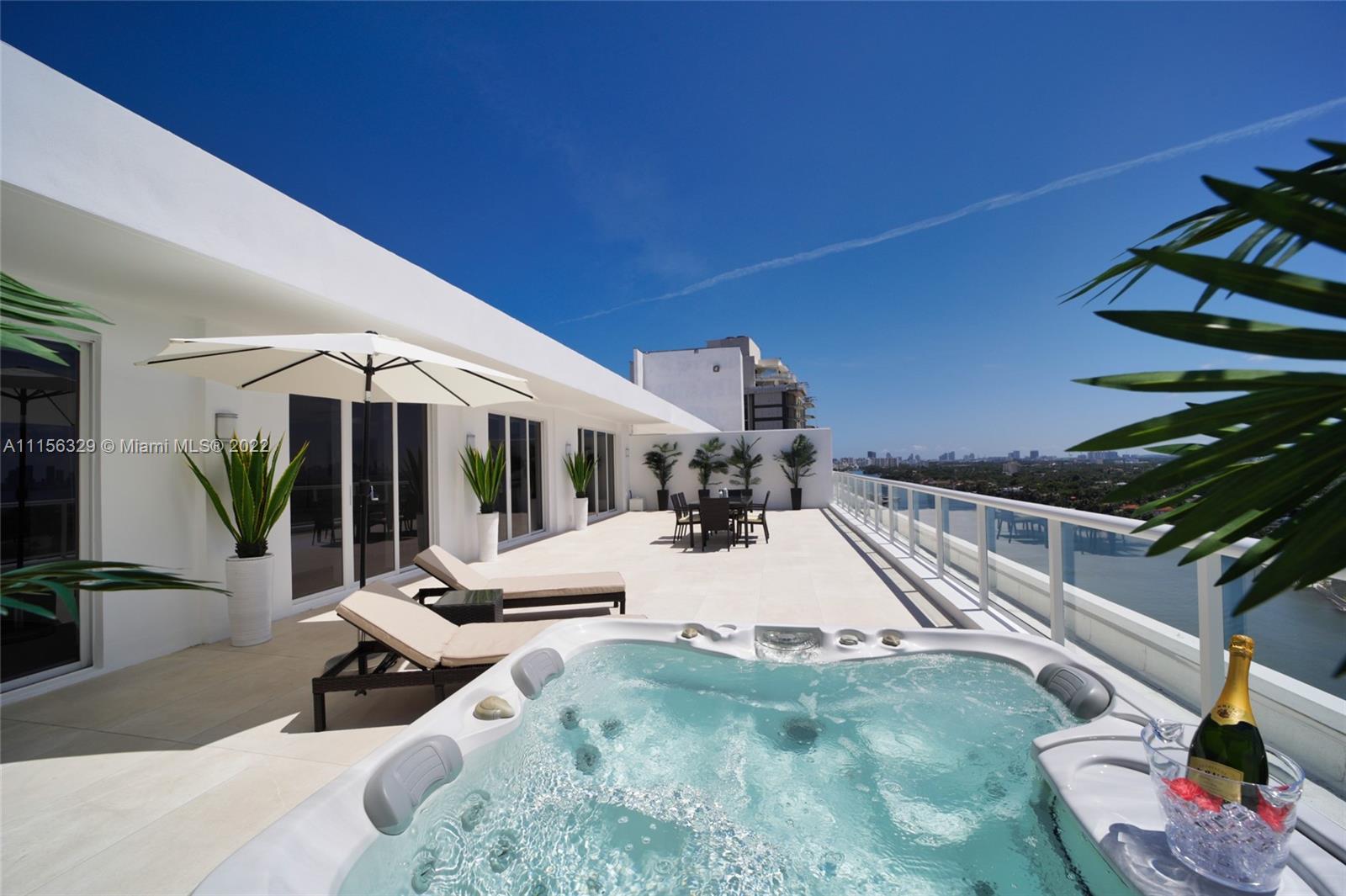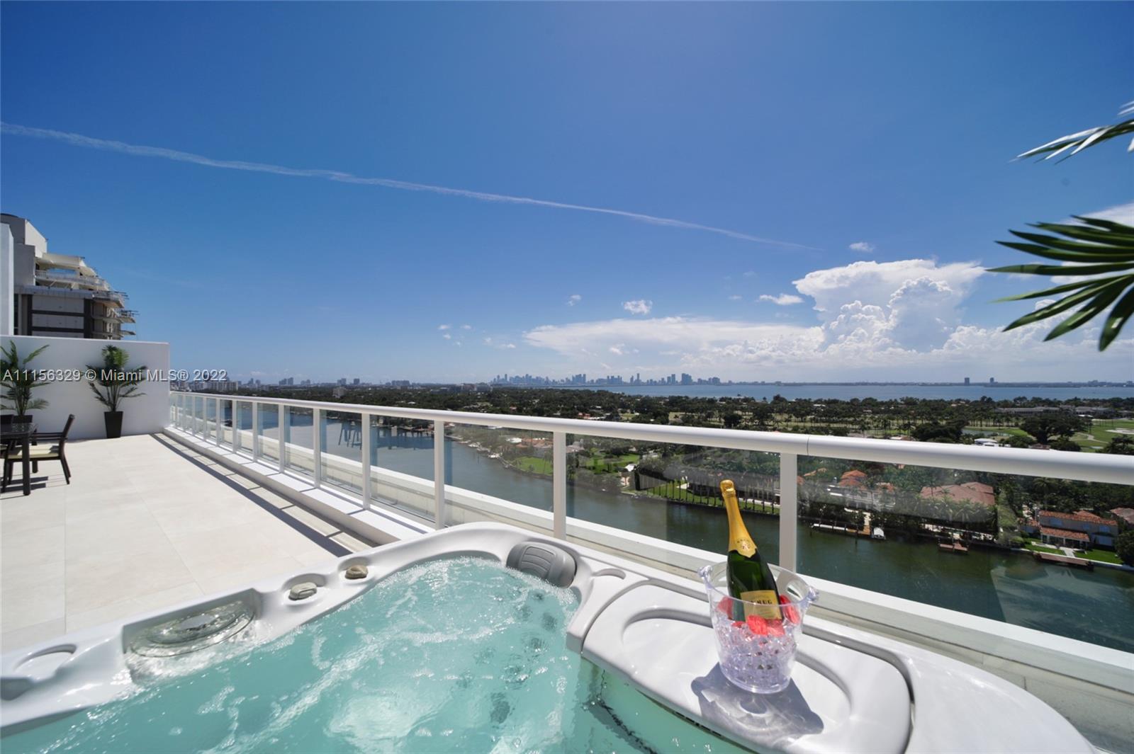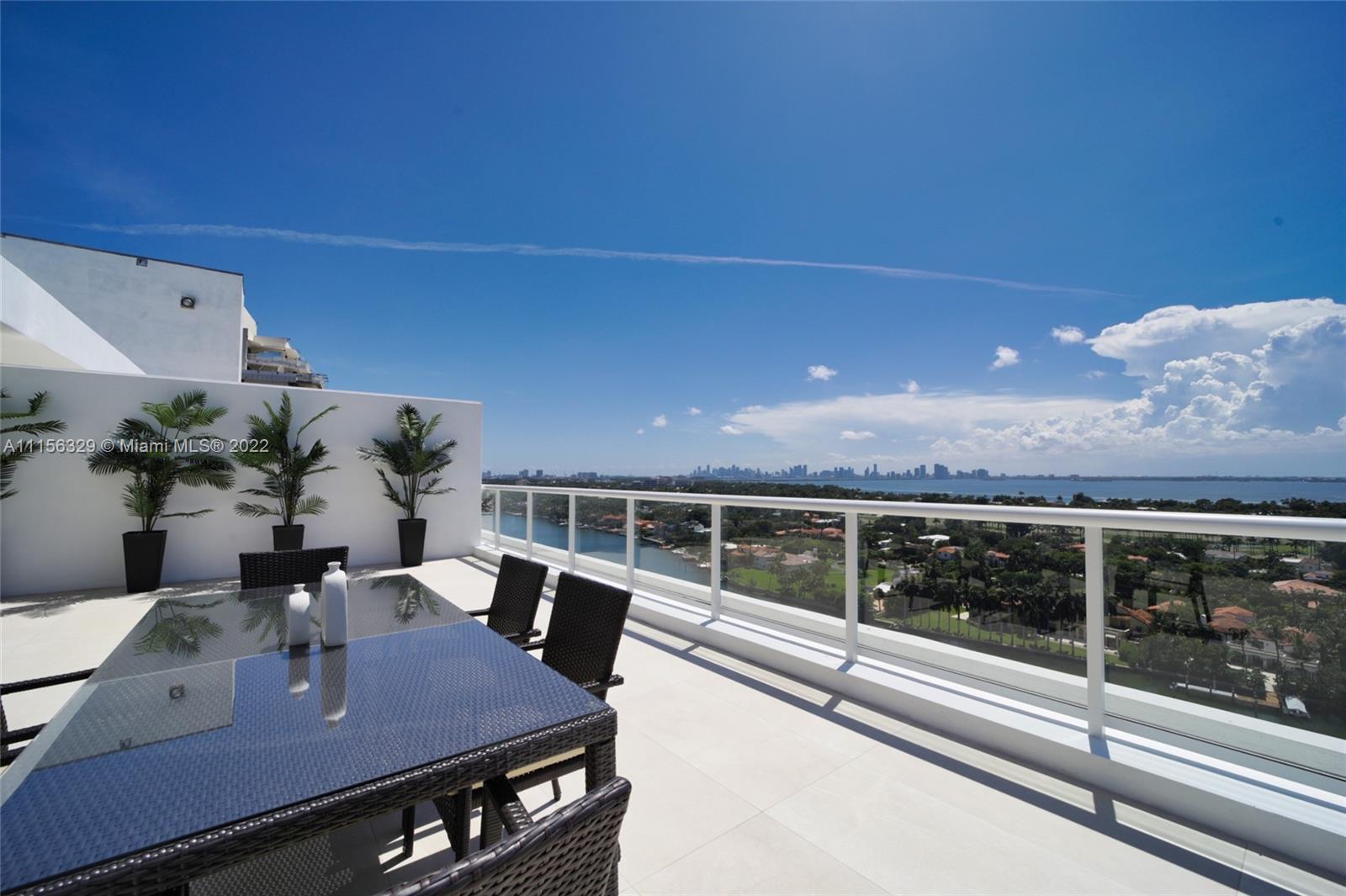 THIS LUXURY 3 BEDROOMS, 3 FULL BATHROOMS PENTHOUSE IS DESIGNED FOR YOU. 2,100 SQUARE FEET UNDER A/C & AND ADDITIONAL 1,200 SQUARE FEET OF TERRACE W/ GORGEOUS VIEWS OF THE INTRA-COASTAL, BISCAYNE BAY, LA GORCE GOLF COURSE, & DOWNTOWN MIAMI AND THE SUNSET. AMAZING JACUZZI ON THE TERRACE. THIS UNIQUE PENTHOUSE INCLUDES A POOL-SIDE CABANA W/DRESSING ROOM & FULL BATH. THE RESIDENCE COMES FULLY FURNISHED, FEATURING ITALIAN SNAIDERO CHERRY WOOD KITCHEN CABINETRY, MIELE APPLIANCE. CHERRY WOOD FLOORS. MARBLE BATHROOMS. LAUNDRY ROOM WITH SINK. PRIVATE STORAGE ON THE APARTMENT FLOOR. PRIVATE WINE CELLAR. 3 PARKING SPACES ASSIGNED. BUILDING HAS BEEN COMPLETELY RENOVATED WITH NEW GYM, POOL AREA, ELEVATORS, LOBBY,HEATED POOL, RESTAURANT.FULLY FURNISHED. BUILDING HAS PRIVATE MARINA. BOATERS DREAM.