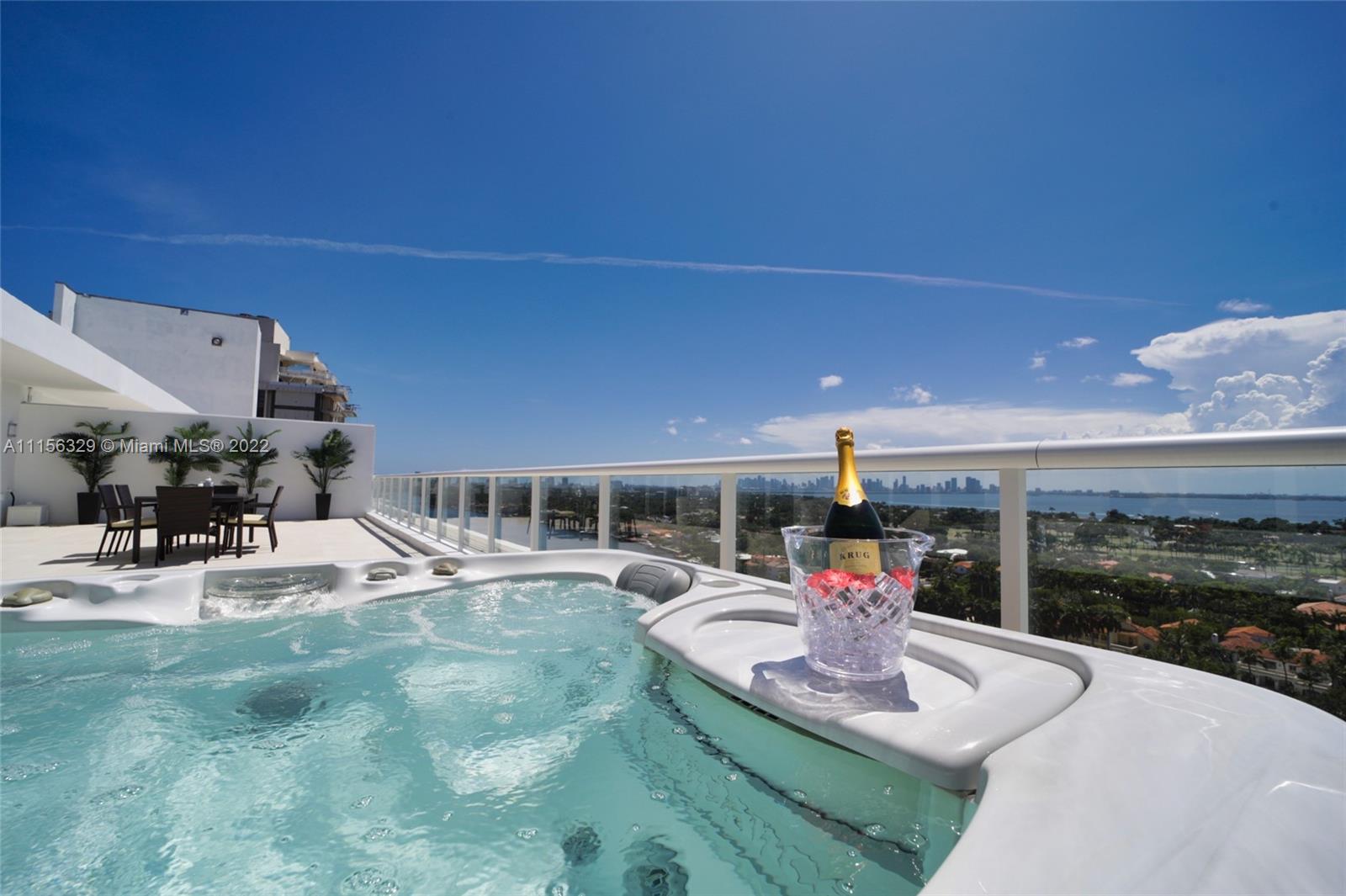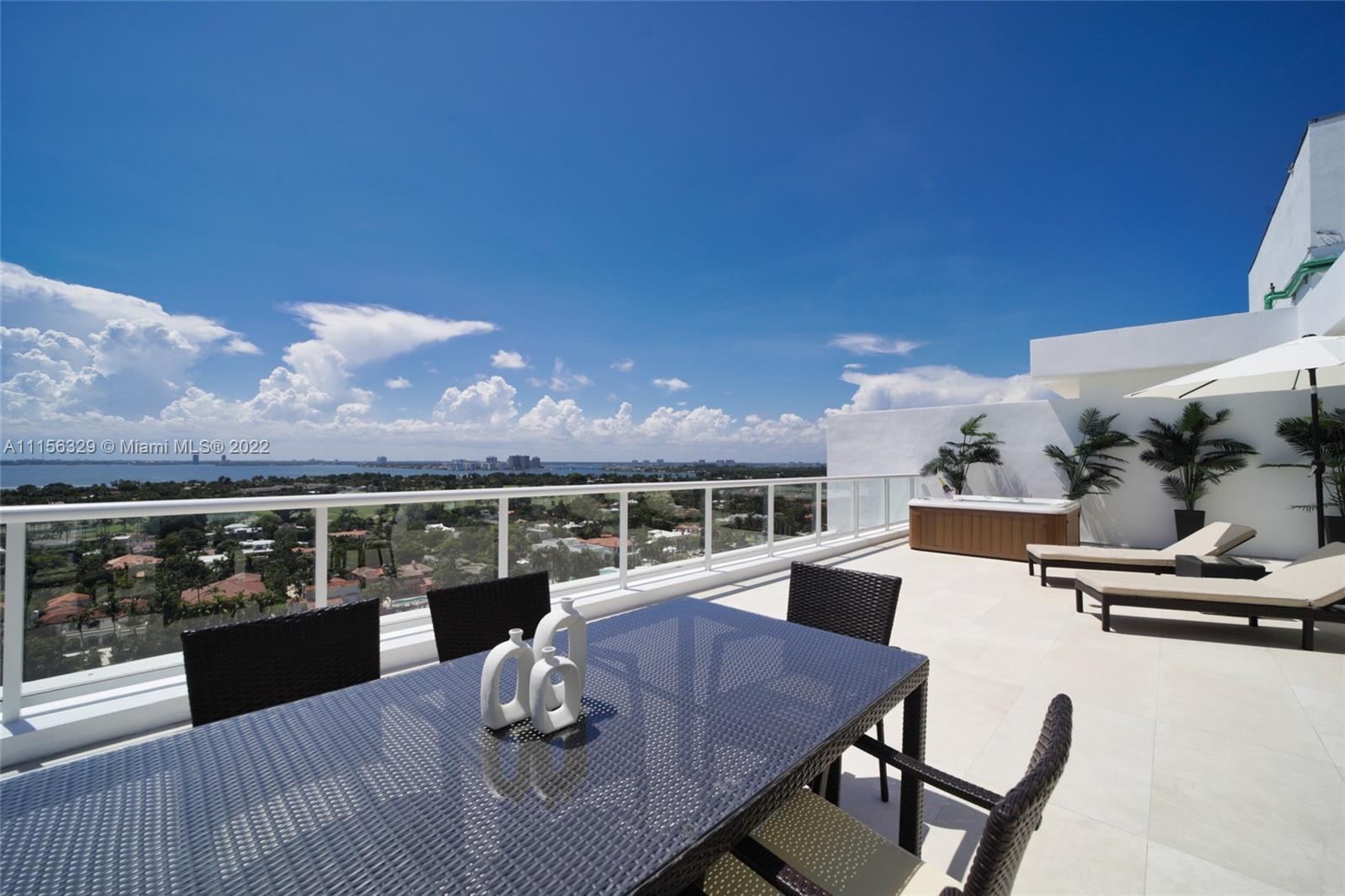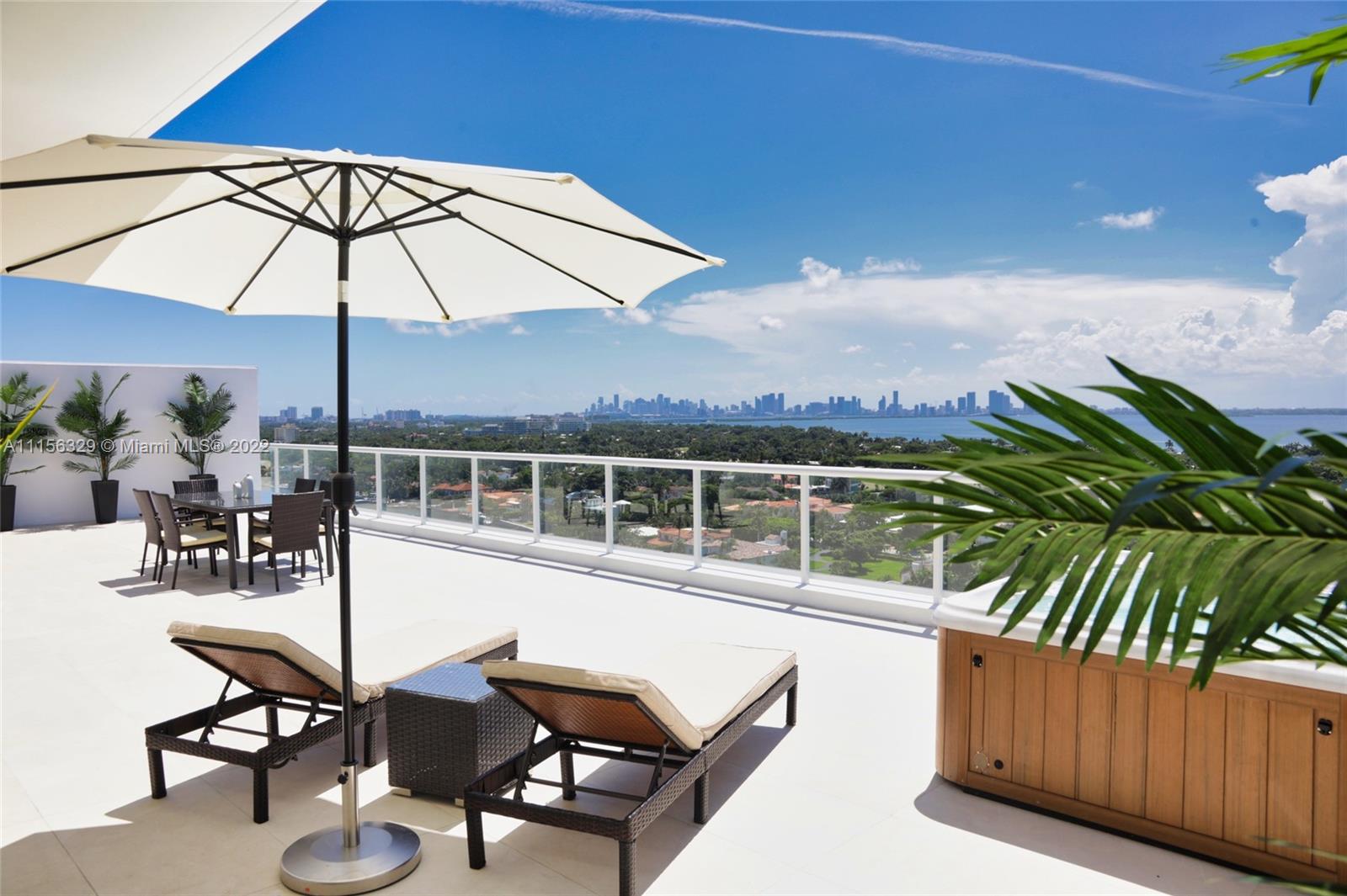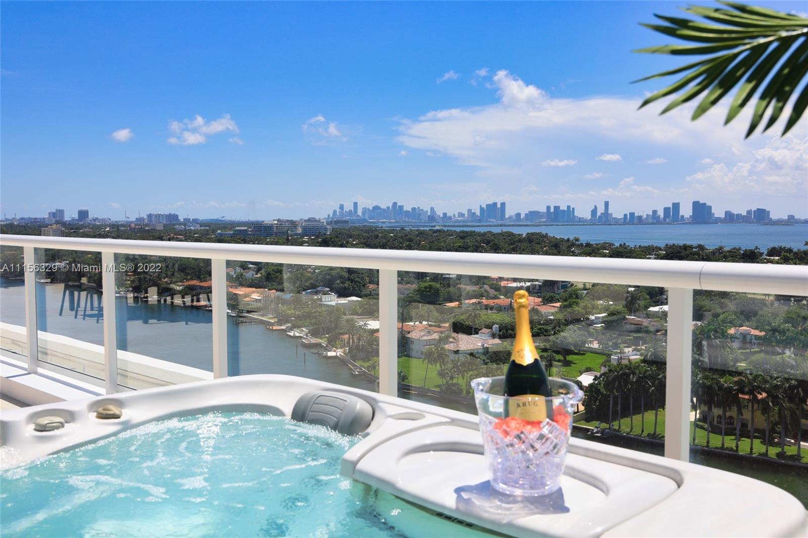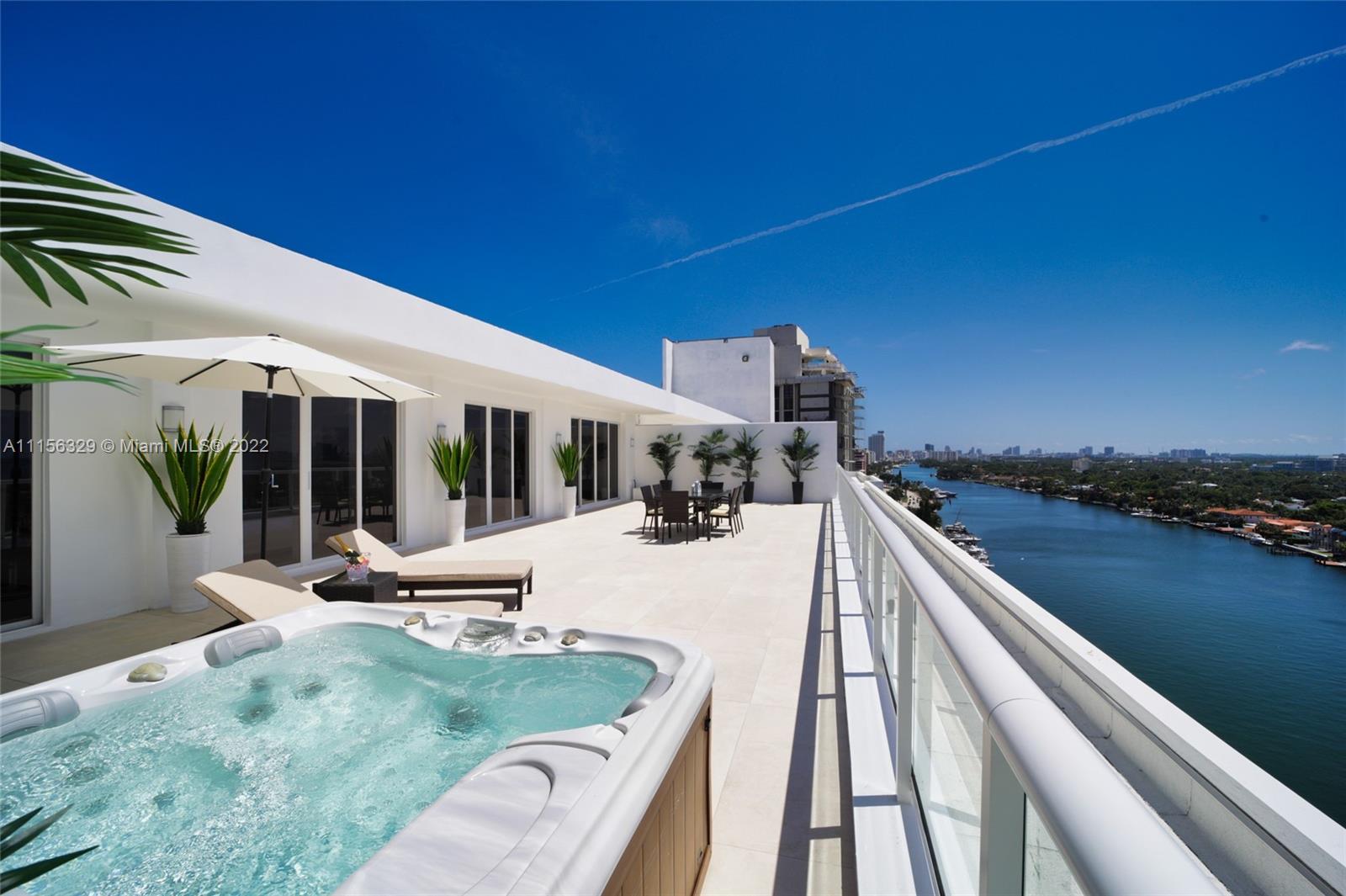 THIS LUXURY 3 BEDROOMS, 3 FULL BATHROOMS PENTHOUSE IS DESIGNED FOR YOU. 2,100 SQUARE FEET UNDER A/C & AND ADDITIONAL 1,200 SQUARE FEET OF TERRACE W/ GORGEOUS VIEWS OF THE INTRA-COASTAL, BISCAYNE BAY, LA GORCE GOLF COURSE, & DOWNTOWN MIAMI AND THE SUNSET. AMAZING JACUZZI ON THE TERRACE. THIS UNIQUE PENTHOUSE INCLUDES A POOL-SIDE CABANA W/DRESSING ROOM & FULL BATH. THE RESIDENCE COMES FULLY FURNISHED, FEATURING ITALIAN SNAIDERO CHERRY WOOD KITCHEN CABINETRY, MIELE APPLIANCE. CHERRY WOOD FLOORS. MARBLE BATHROOMS. LAUNDRY ROOM WITH SINK. PRIVATE STORAGE ON THE APARTMENT FLOOR. PRIVATE WINE CELLAR. 3 PARKING SPACES ASSIGNED. BUILDING HAS BEEN COMPLETELY RENOVATED WITH NEW GYM, POOL AREA, ELEVATORS, LOBBY,HEATED POOL, RESTAURANT.FULLY FURNISHED. BUILDING HAS PRIVATE MARINA. BOATERS DREAM.