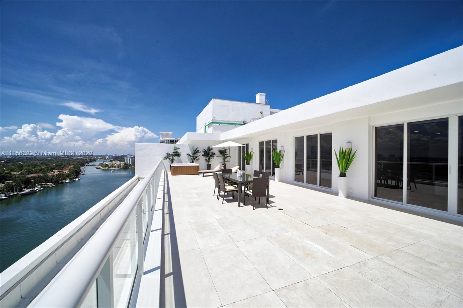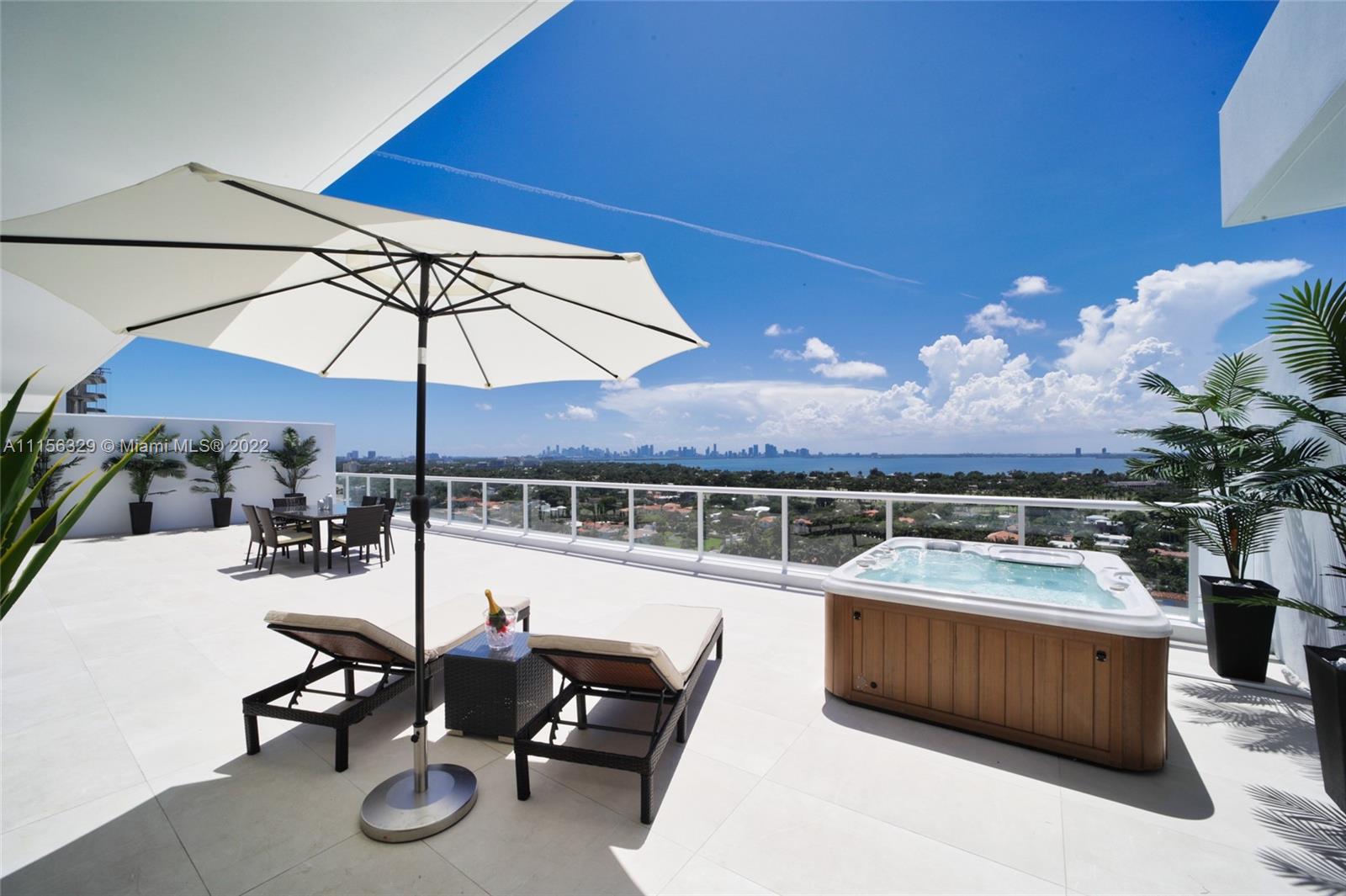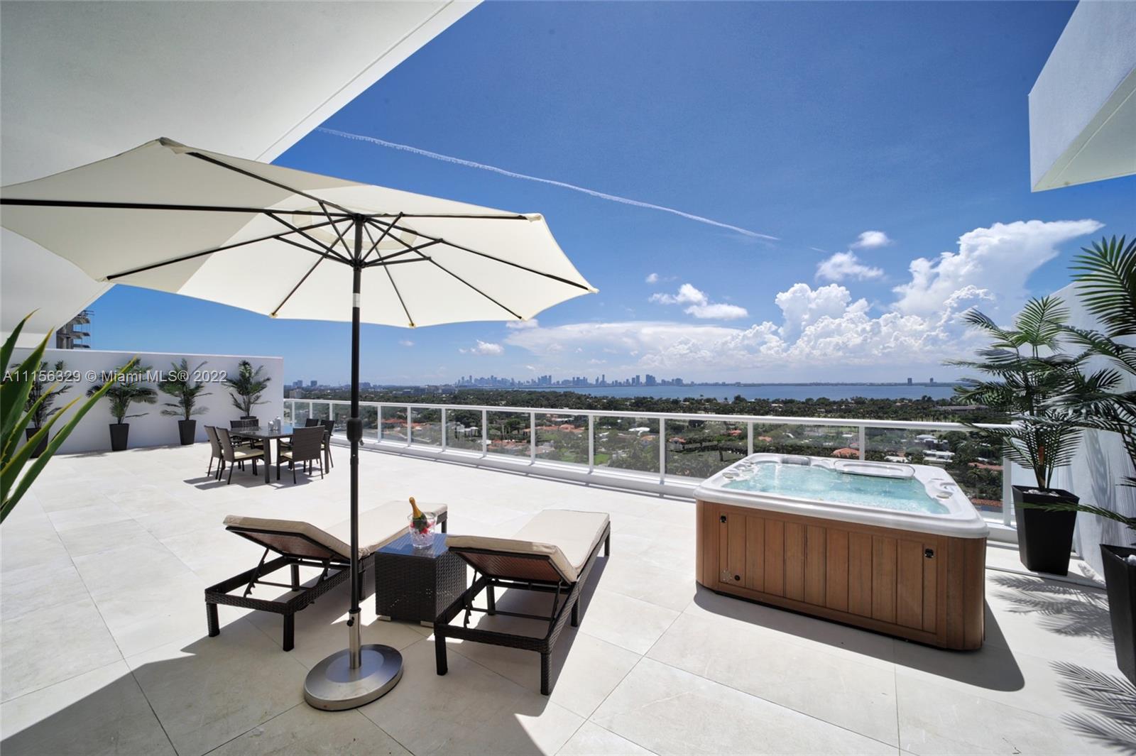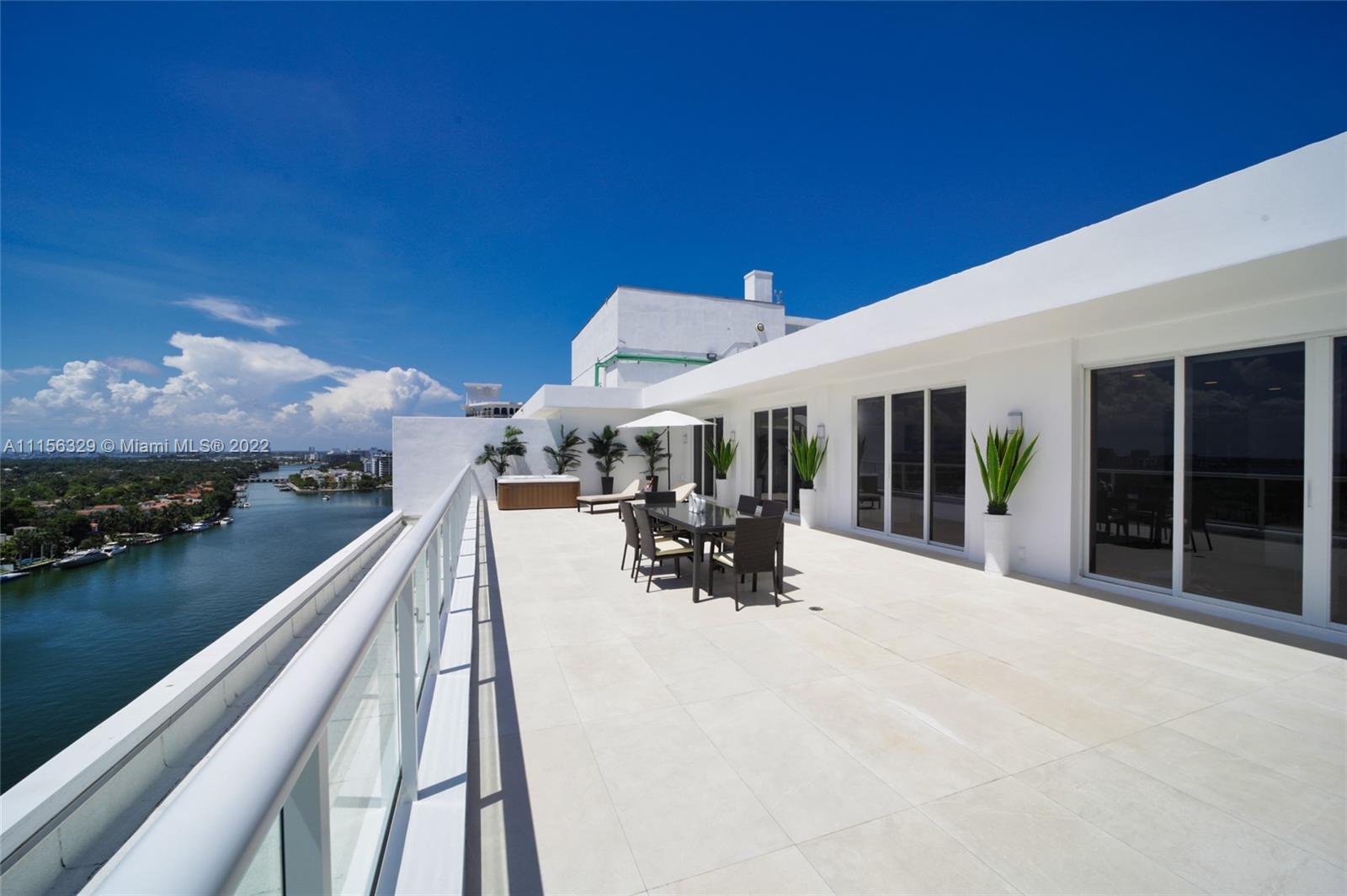 THIS LUXURY 3 BEDROOMS, 3 FULL BATHROOMS PENTHOUSE IS DESIGNED FOR YOU. 2,100 SQUARE FEET UNDER A/C & AND ADDITIONAL 1,200 SQUARE FEET OF TERRACE W/ GORGEOUS VIEWS OF THE INTRA-COASTAL, BISCAYNE BAY, LA GORCE GOLF COURSE, & DOWNTOWN MIAMI AND THE SUNSET. AMAZING JACUZZI ON THE TERRACE. THIS UNIQUE PENTHOUSE INCLUDES A POOL-SIDE CABANA W/DRESSING ROOM & FULL BATH. THE RESIDENCE COMES FULLY FURNISHED, FEATURING ITALIAN SNAIDERO CHERRY WOOD KITCHEN CABINETRY, MIELE APPLIANCE. CHERRY WOOD FLOORS. MARBLE BATHROOMS. LAUNDRY ROOM WITH SINK. PRIVATE STORAGE ON THE APARTMENT FLOOR. PRIVATE WINE CELLAR. 3 PARKING SPACES ASSIGNED. BUILDING HAS BEEN COMPLETELY RENOVATED WITH NEW GYM, POOL AREA, ELEVATORS, LOBBY,HEATED POOL, RESTAURANT.FULLY FURNISHED. BUILDING HAS PRIVATE MARINA. BOATERS DREAM.