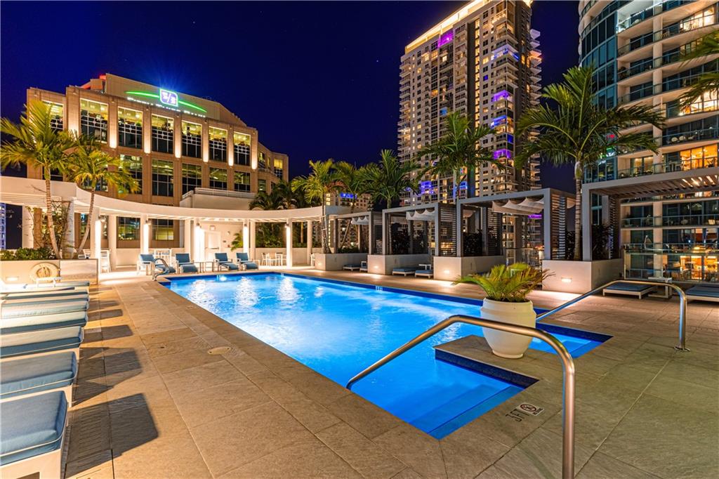 DESIGNER FINISHED TWO BEDROOM + DEN / TWO AND A HALF BATHROOM ON THE 27TH FLOOR AT THE NEW 100 LAS OLAS RESIDENCES* CITY & OCEAN BACKGROUND* FLOOR TO CEILING WINDOWS & SLIDERS OFF THE LIVING ROOM & BEDROOMS LEADING TO AN OVERSIZED TERRACE* DEN INCLUDES A FULL WET BAR WITH FRIDGE & WINE COOLER (ADDITIONAL WINE COOLER IN KITCHEN)* ELECTRIC SHADES THROUGHOUT* BUILD-OUT CLOSETS WITH BARN STYLE DOORS* ***4 PARKING SPACES INCLUDED*** STORAGE UNIT (SAME FLOOR)* TOP OF THE LINE APPLIANCES & FINISHES* WALK TO EVERYTHING DOWNTOWN, LAS OLAS & THE RIVER INCLUDING BARS, RESTAURANTS, SHOPPING & GROCERY STORE* HYATT CENTRIC BRANDED HOTEL & RESIDENCES WITH RESORT STYLE AMENITIES INCLUDING TWO POOLS, FITNESS CENTER, CLUB ROOM, RESTAURANTS, BAR AND GUEST ROOMS*