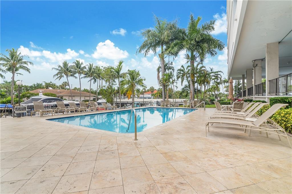 Great location, Resort style living!! Spacious 2 bedrooms, 2 bathrooms, formal dining room plus eat in kitchen. This large unit offers views of both the intracoastal and the ocean. Private washer and dryer in the unit. Impact window and doors, plus shutters. Deeded private parking space along with additional guest parking. Gated beach access across the street to El Mar Club with lots of parking. Enjoy our amenities, dock space when available for your boats. Pompano Beach is happening!! Lots of ocean front restaurants, new fishing pier, beautiful new tiki bar on the beach, playground, water park, and much more.