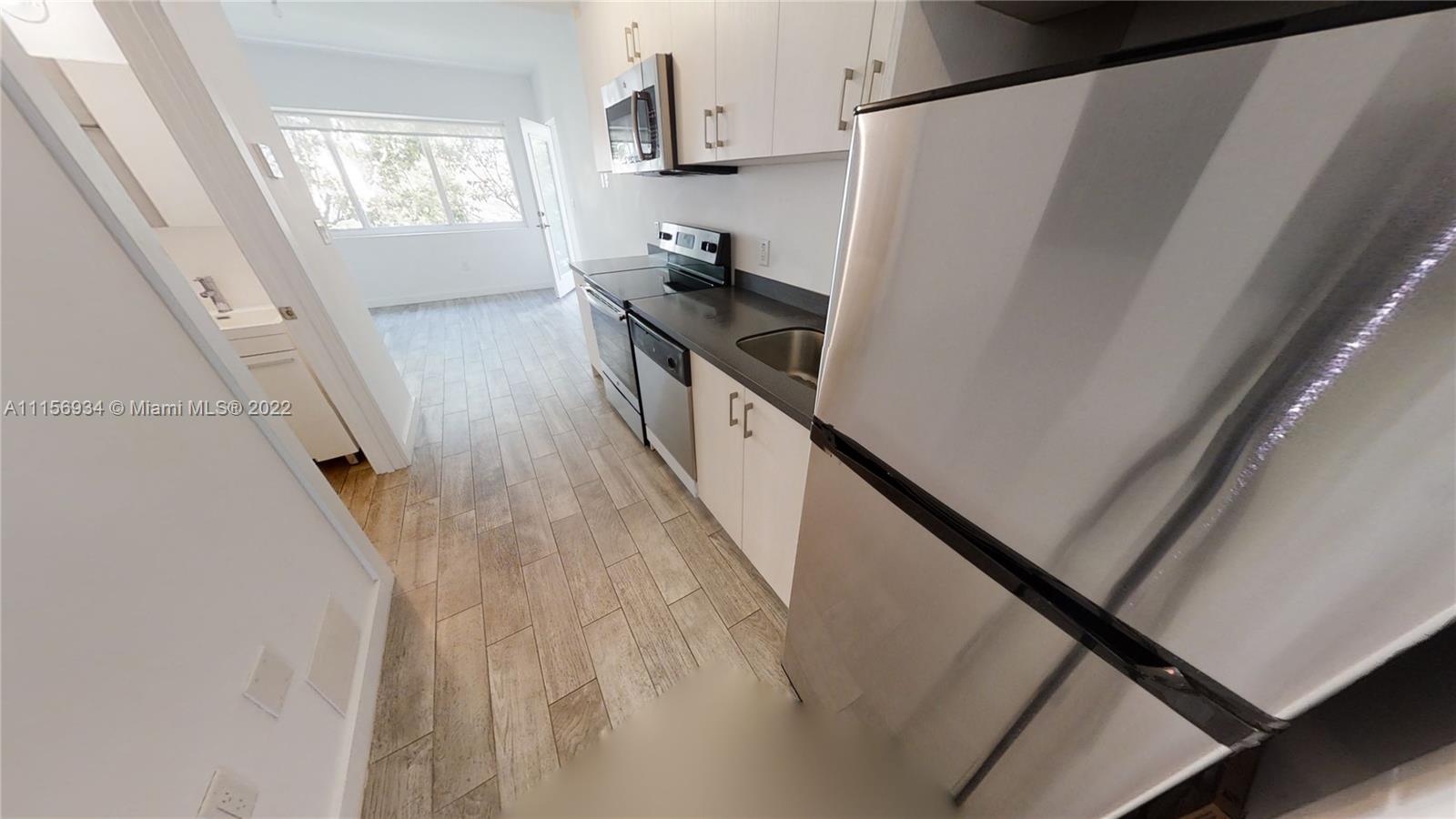 Top floor One Bedroom with modern interior kitchen, bathroom, porcelain tile flooring updates. Complete building renovation 2016. Washer/Dryer, Dishwasher & Central A/C . Impact window & doors, faces South with East/West morning & afternoon sunlight exposure. No elevator. HOA reserve funds