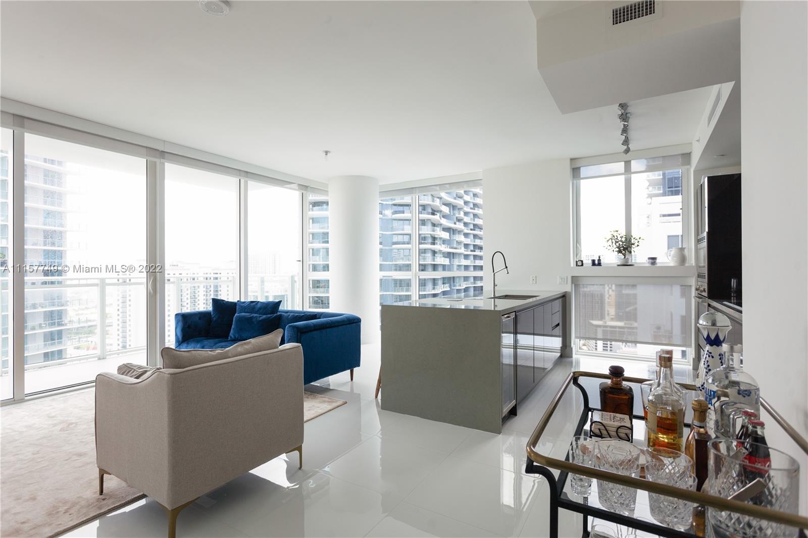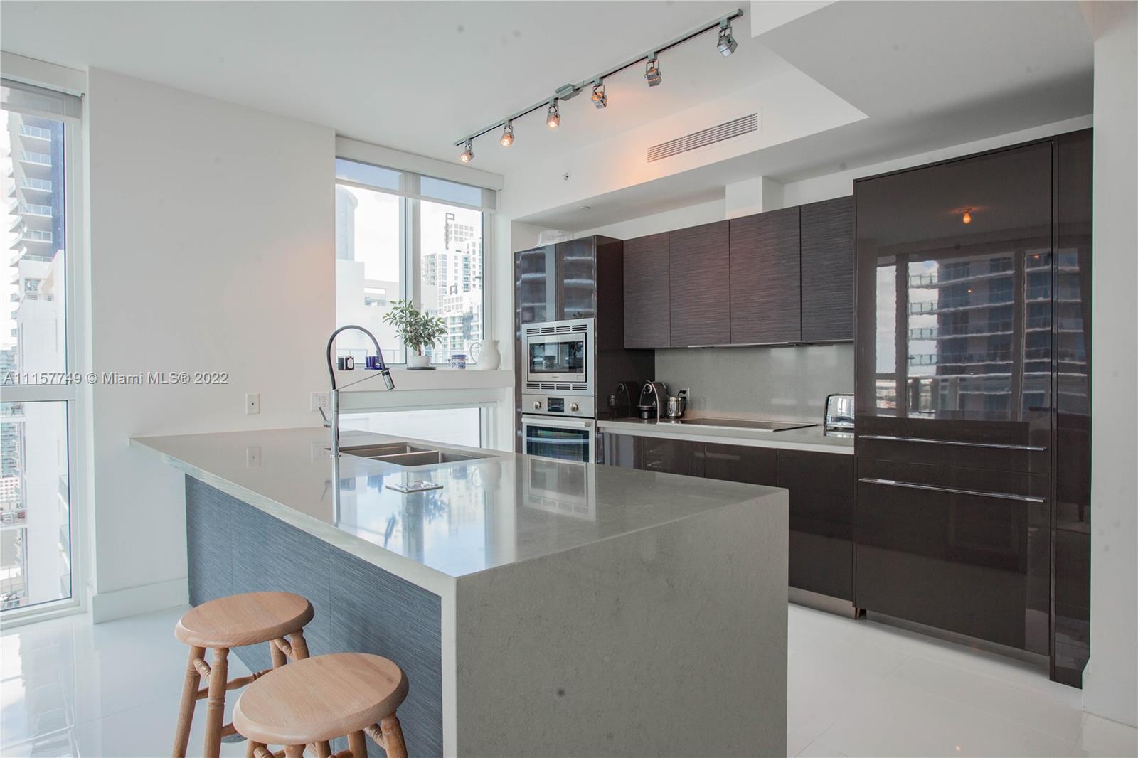 Residence 3509 is a corner 2 Bedrooms plus a Den with 9-ft high ceilings with floor to ceiling glass windows, walk-in closets, plus Bosch kitchen appliances, Porcelanosa fixtures, Nolte cabinetry hand crafted in Germany, and oversized terrace with exquisite views of Brickell. The Bond on Brickell is an impressive luxury residential high-rise in the heart of Brickell features resort-style amenities which include a pool area with summer kitchens, cabanas, clubroom and lounge, screening room, children's playroom, fitness center, valet parking, business center, and an on-site Starbucks coffeeshop. The lobby and common area spaces at The Bond features British-themed photography collection by Terry O' Neill.