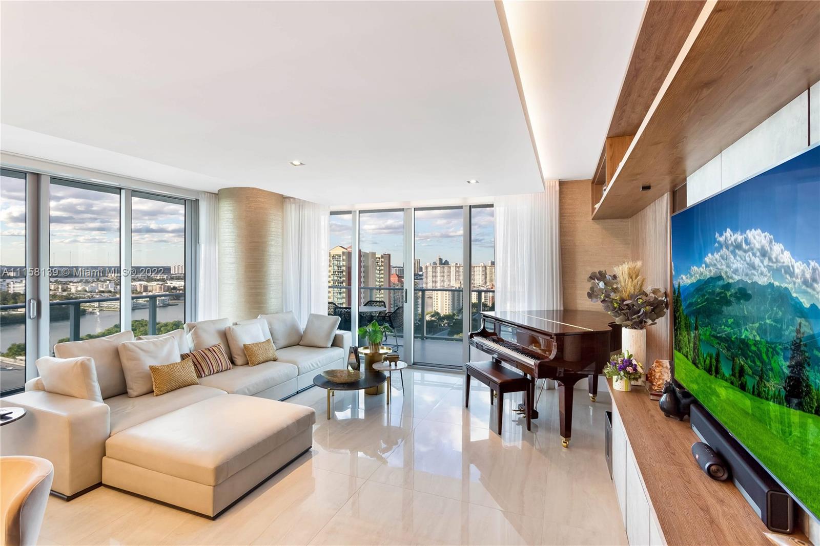 Sophistication meets a masterpiece! In the prime riviera-like Sunny Isles Beach location, this outstanding 1892 sq feet apartment reveals a stunning 3 bedrooms, 3 and half bathrooms harmonizing with a spacious dining room and living room, and a lux modern open concept kitchen. With over $450k High end finishes invested in, the exclusive details are essentially key to this inspiring apartment. From the balcony, an absolutely gorgeous view unveils landscape, ocean and bay. Perfect property to entertain guests and a cozy place for gathering family, this home is fully smart integrated. And it has been embodying South Florida’s indoor-outdoor lifestyle. Amenities includes 3 pools with resort-service, sauna, gym and jacuzzi. Truly one of a kind classy ambience from the inside out.