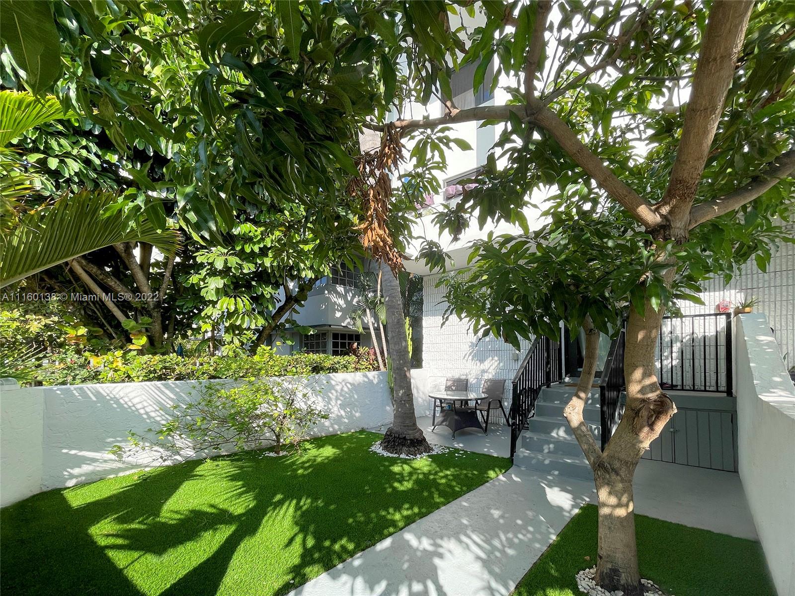 GARDEN FLAT AT BOUGAINVILLEA SOUTH - Be in the center of it all without sacrificing! Rarely found in SoBe, this bright and spacious 1/1 condo has an assigned covered parking spot and a gated and private front yard with low-maintenance turf. Enjoy cool evenings on your private patio overlooking your very own garden with mature mango tree. Features include: open living space, warm tile floors, NEST thermostat, impact windows & door, sleek kitchen with washer/dryer combo & dishwasher, and large bedroom with double closets. New A/C, water heater, and appliances. You'll be close to all the action, but in a quiet, well-maintained boutique building. Enjoy nearby restaurants, shopping, nightlife, South of Fifth neighborhood, Equinox, Publix, Target, and of course the beach!