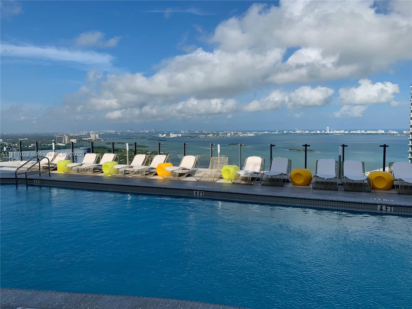 Enjoy great views of the city and bay from this corner unit at Paraiso Bayviews. Building designed by Karim Rashid, Bayviews is the hippest of the Paraiso towers. Apartment 1908 is a 2 bed+den/2 bath condo boasting high impact glass doors & windows, 9' ceilings, and porcelain flooring. High-end finishes include Italian kitchen cabinetry, BOSCH appliances, and high-end bathroom fixtures. Stunning amenities include a 46th-floor rooftop pool, fitness center, spa & sauna, kid's playroom, tennis & clubroom! Located in Edgewater, next to Midtown, close to the Design District, downtown Miami, and Miami Beach, Bayviews is the fourth tower of the Paraiso project. Short Term Rentals allowed (min 30days)