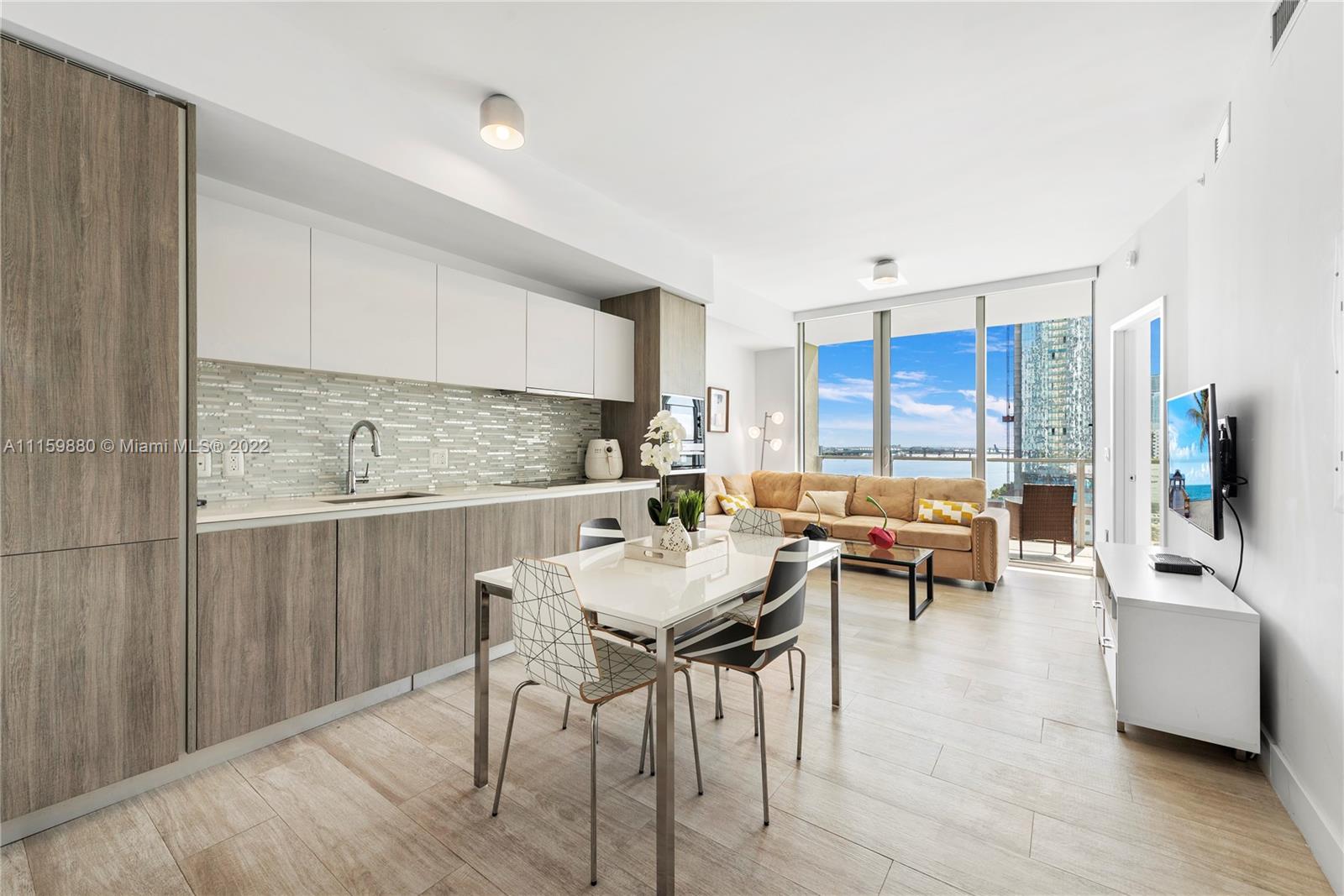Gorgeously polished 2 BD/2 BA residence (originally 1 BD+den, den converted to 2nd BD) in East Edgewater boasting unobstructed skyline & bay views throughout! Located at Biscayne Beach, a newer construction, luxurious high rise building. This residence has floor-to-ceiling impact windows, a private balcony w/ spectacular views, top-of-the-line Miele appliances, Snaidero cabinetry, spacious living area, open & bright primary suite, primary bath w/ separate tub & shower, dual sinks, & cove lighting, & full sized washer/dryer in the unit! Resort style amenities include: secluded pool deck, beach club w/ towel services & private cabanas, 2 pools, sauna, summer kitchen w/lounge seating areas, 2 tennis courts, fitness center, steam room, blow-dry bar, massage rooms, dog park, restaurant, & more!