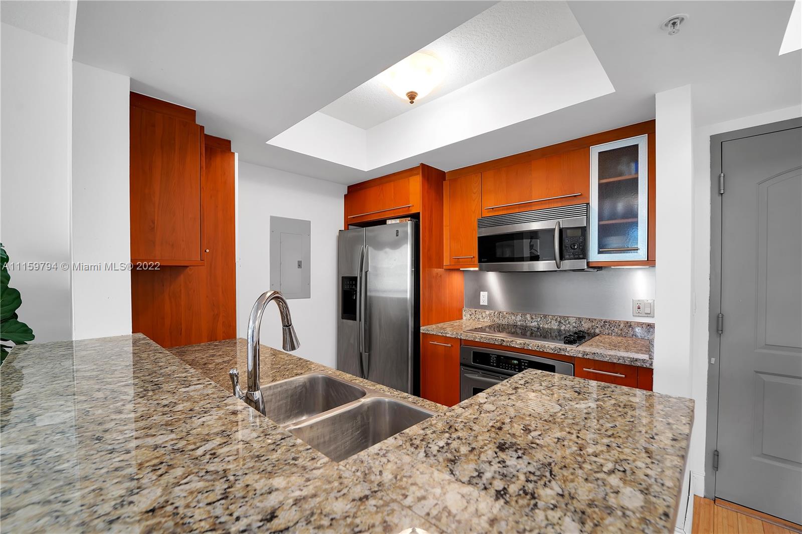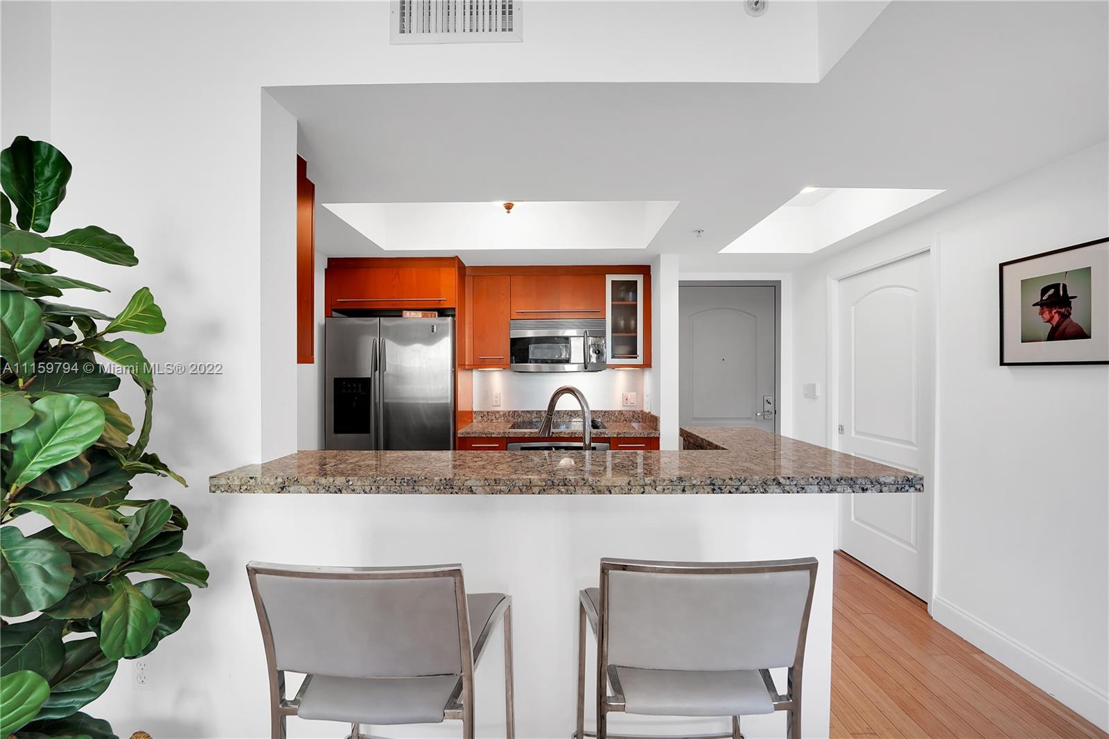 2 Bed/2 Bath, Bamboo floor, granite countertops, stainless steel appliances, new Washer and Dryer and recently replaced A/C unit. 1 Assigned Parking Space. Full Service Building, heated pool, spa, sauna, 24/7 Fitness Center. This unit faces Meridian Ave.