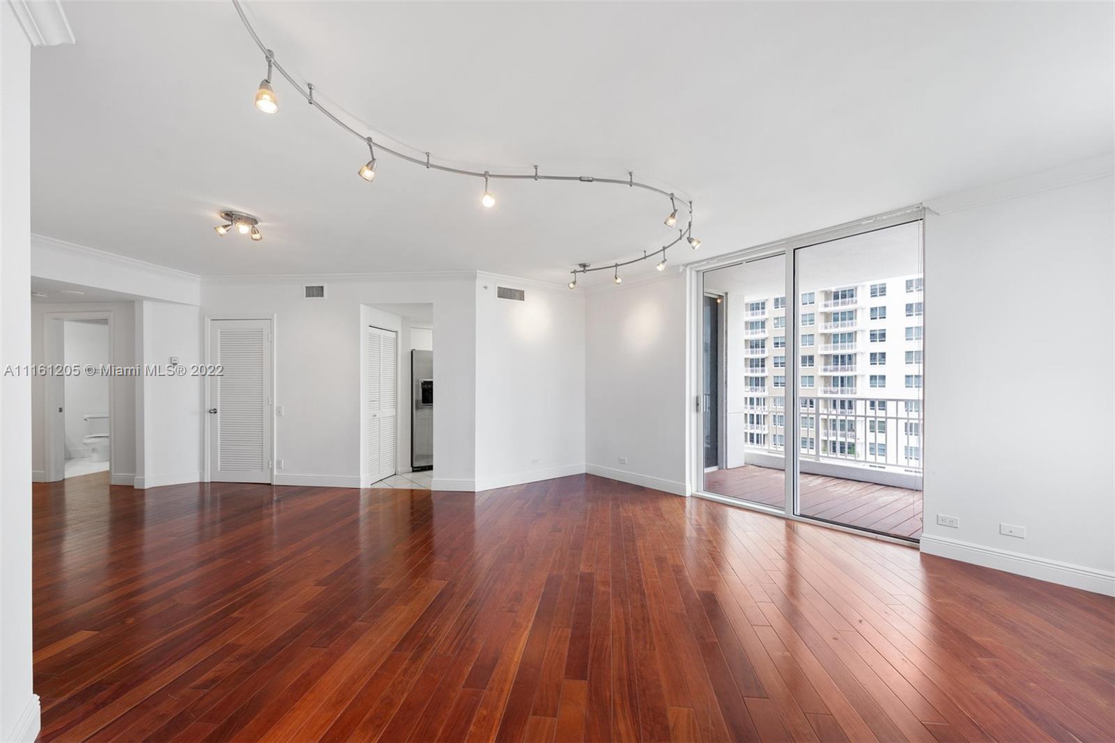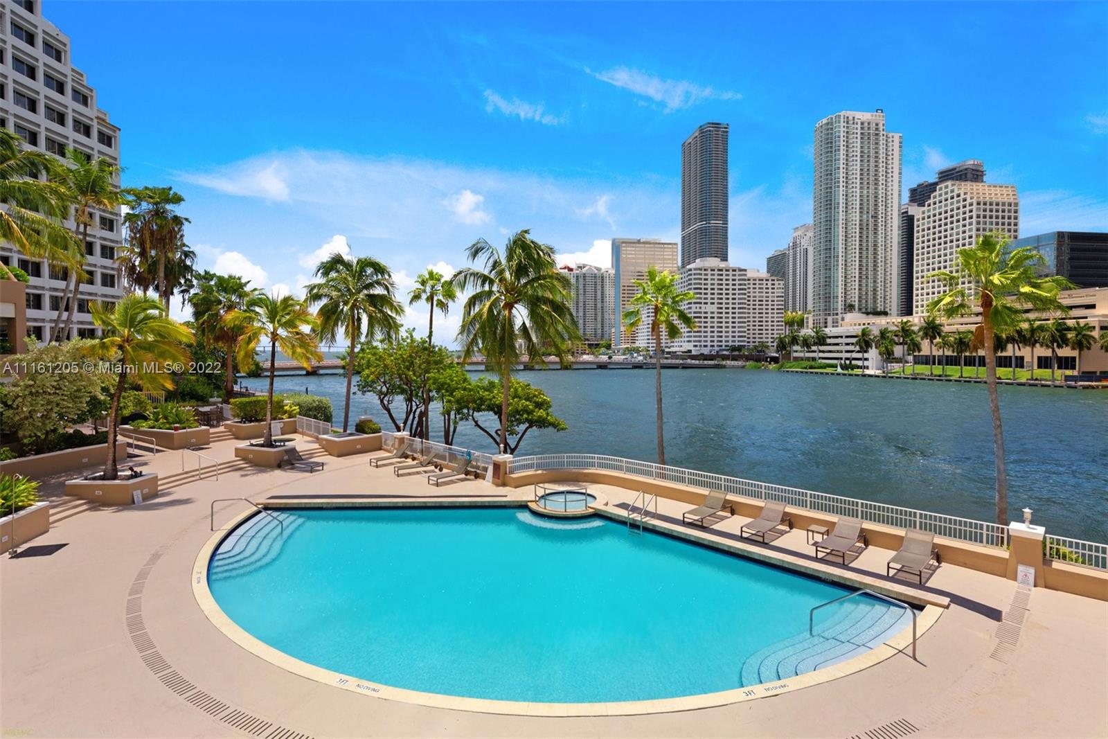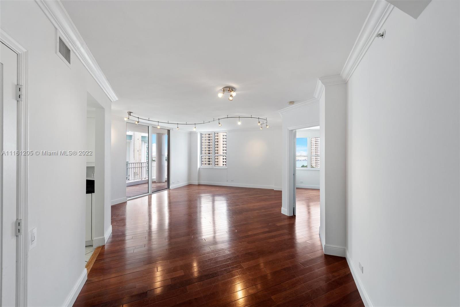 Corner unit located in Brickell Key Island. Bay views from every room. 2 bedrooms, 2 baths and 1/2 bath with hard wood floors and high impact windows and doors. All closets are finished. Sunny East exposure. Resort lifestyle with all amenities and jogging trail around the Island. Live in the heart of Brickell in a tranquil enviroment.