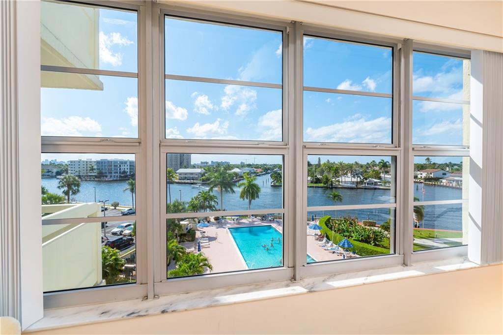 Absolutely stunning unobstructed Intracoastal views from every room! Located in the most coveted stack in the Coral Ridge Towers complex, apartment 501 has the kind of views you dream about. Some photos have been virtually staged for marketing purposes. This spacious 1400 sq ft 3 bedroom 2 bathroom features central air conditioning, hurricane impact windows / door, walk in closets and incredible views from every room. Located on a barrier island between the ocean & intracoastal waterway, walking distance to the beach, restaurants, grocery, post office & water taxi. Great amenities including a resort style 30 x 60 heated pool and picturesque garden area on the Intracoastal. Association states one buyer must be 55 plus & no pets or rentals.