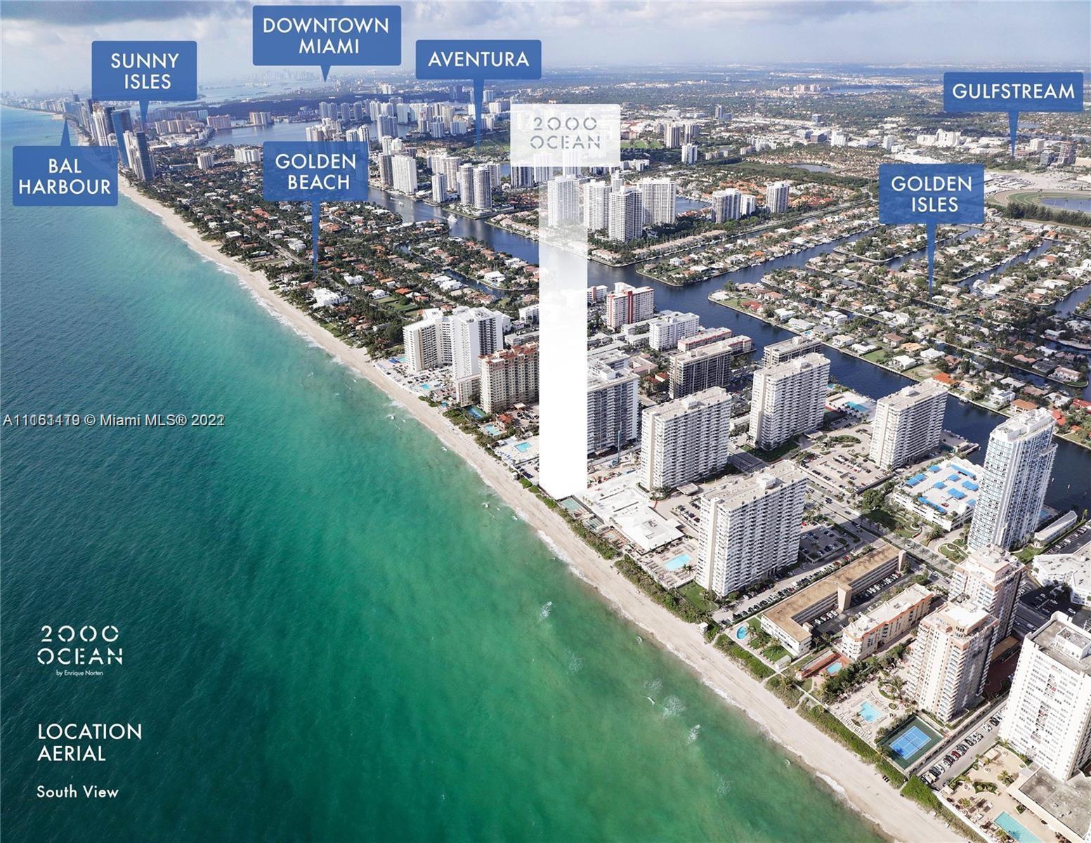 NEW PRICE! Last available high floor residence (SOUTH SIDE) at the brand new 2000 Ocean, located just north of exclusive Golden Beach. This 3 bedroom+den is one of 3 units in the building to feature highly desirable white marble floors, BOFFI kitchen with marble countertops and integrated sink, GAGGENAU appliances, extra lighting and outlets throughout, built-in speakers, enclosed den with custom cabinetry. It is the only residence to feature RIMADESIO closets. Large east& west facing terraces (475 sqft). Gorgeous 270 degree views of the ocean, Miami skyline, and the bay. 2000 Ocean is a boutique building with luxurious resort style amenities - 2 pools with private cabanas, oceanside cafe, butler service, fitness center, yoga room, spa pavilion with Hammam/ice room, library and more!