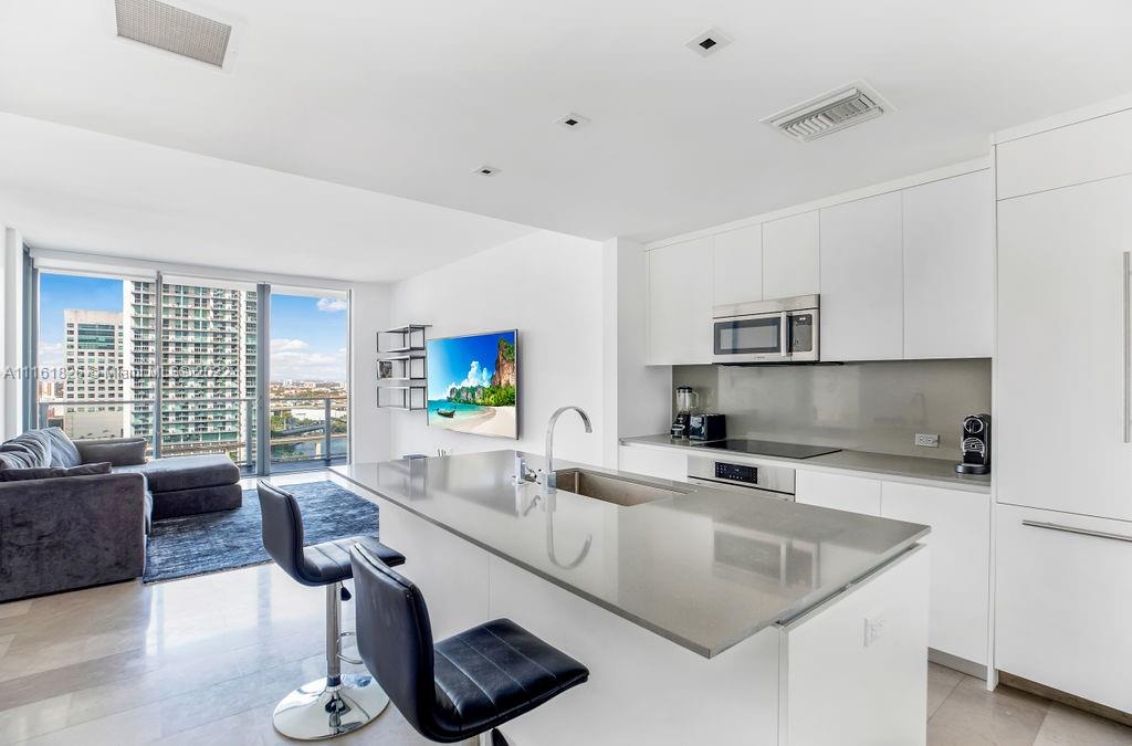 Amazing City and River views from this full-service 1 bedroom, 1.5 bath unit at Reach at Brickell City Center. Italian kitchen including cooks island and Bosch stainless steel appliances including a wine cooler and seamless wood cabinetry, motorized curtains, walk-in closet. Washer and dryer in unit. Enjoy all the amenities of Reach – fitness center, infinity swimming pool, concierge, kids playground, covered parking with valet, etc. right in the heart of downtown Miami. Brickell City Center is Swire’s latest development with many restaurants, stores, movie theaters.
