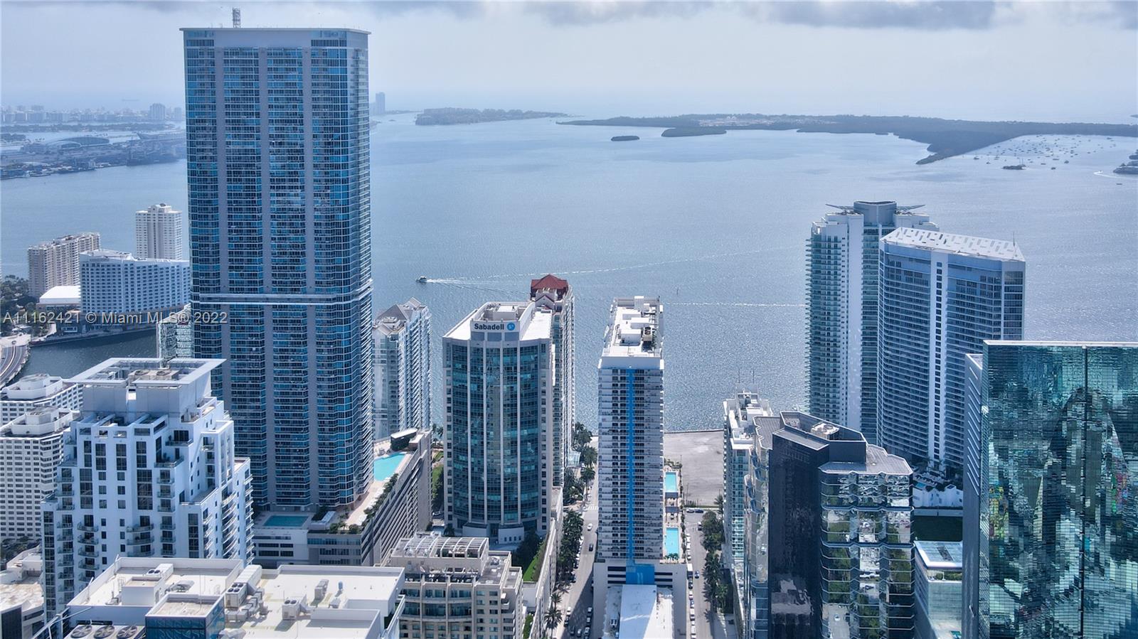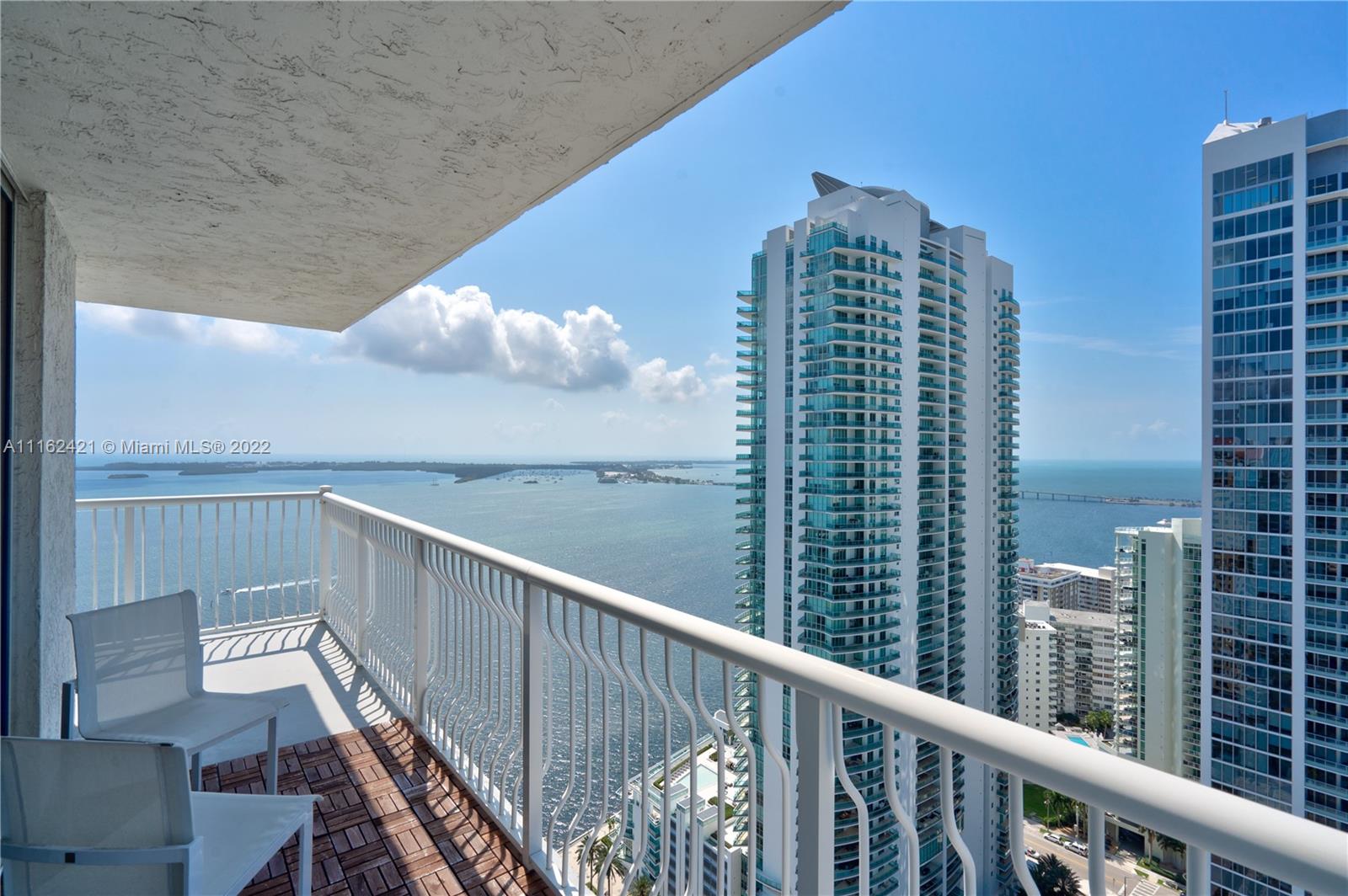 MILLION DOLLAR VIEWS FOR UNDER A MILLION! DIRECT WATER VIEWS FROM WRAP AROUND BALCONY ON THE 39TH FLOOR! SEE FISHER ISLAND, KEY BISCAYNE & even Cruise ships departing the port straight from your balcony! The LOW $783 monthly maintenance fees includes hot water, cable, internet, one assigned parking and full resort amenities in the heart of Brickell. Building is INVESTOR friendly, no rental restrictions for short term rentals! Unit has been renovated with wood floors in the living room areas, all appliances have been replaced within the past 3 years. The air conditioner & water heater are newly replaced. The unit is turn key and ready for your family & guests with unobstructed bay & ocean views.