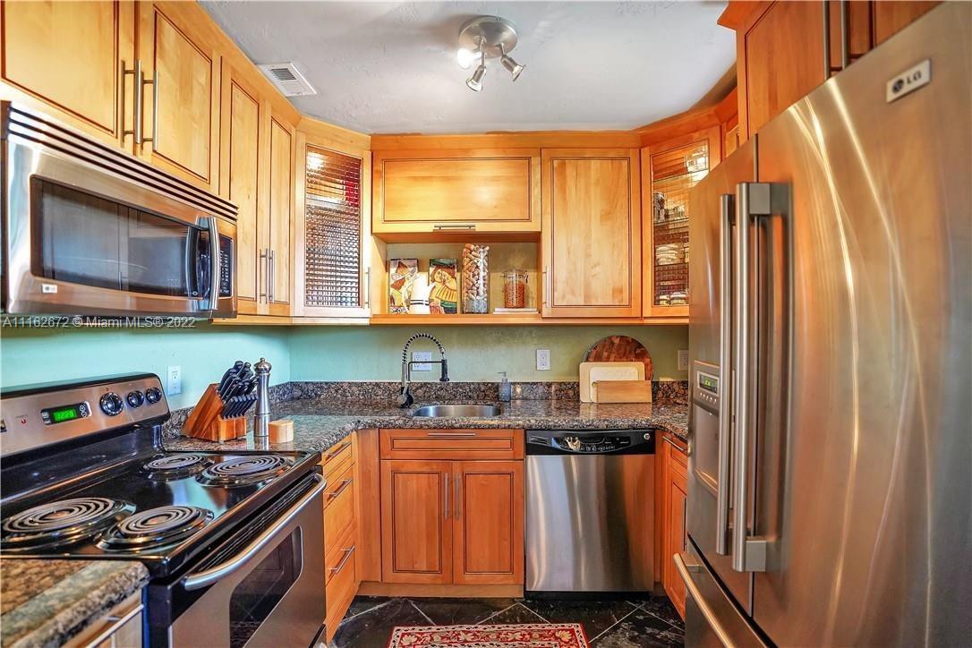 Beautifully updated 1 bedroom/1 bath condominium in the sought after Golden Isles gated community. Remodeled kitchen with SS appliances, gorgeous cabinetry, rich granite counters, and slate flooring. Dining area is separate from the living room. Living room has a beautiful rare high end designer carpet. Wood laminate flooring throughout the rest of the property. Hurricane Impact slider to the screened in porch, which is private and very quiet from the community overlooking the garden area and Layne Blvd. ASSOCIATION HAS LOTS OF RESTRICTIONS FOR RENTING, CURRENTLY A WAITING LIST TO ADD YOUR UNIT TO THE RENTAL PROGRAM. SEE ATTACHMENT FOR MORE INFORMATION.