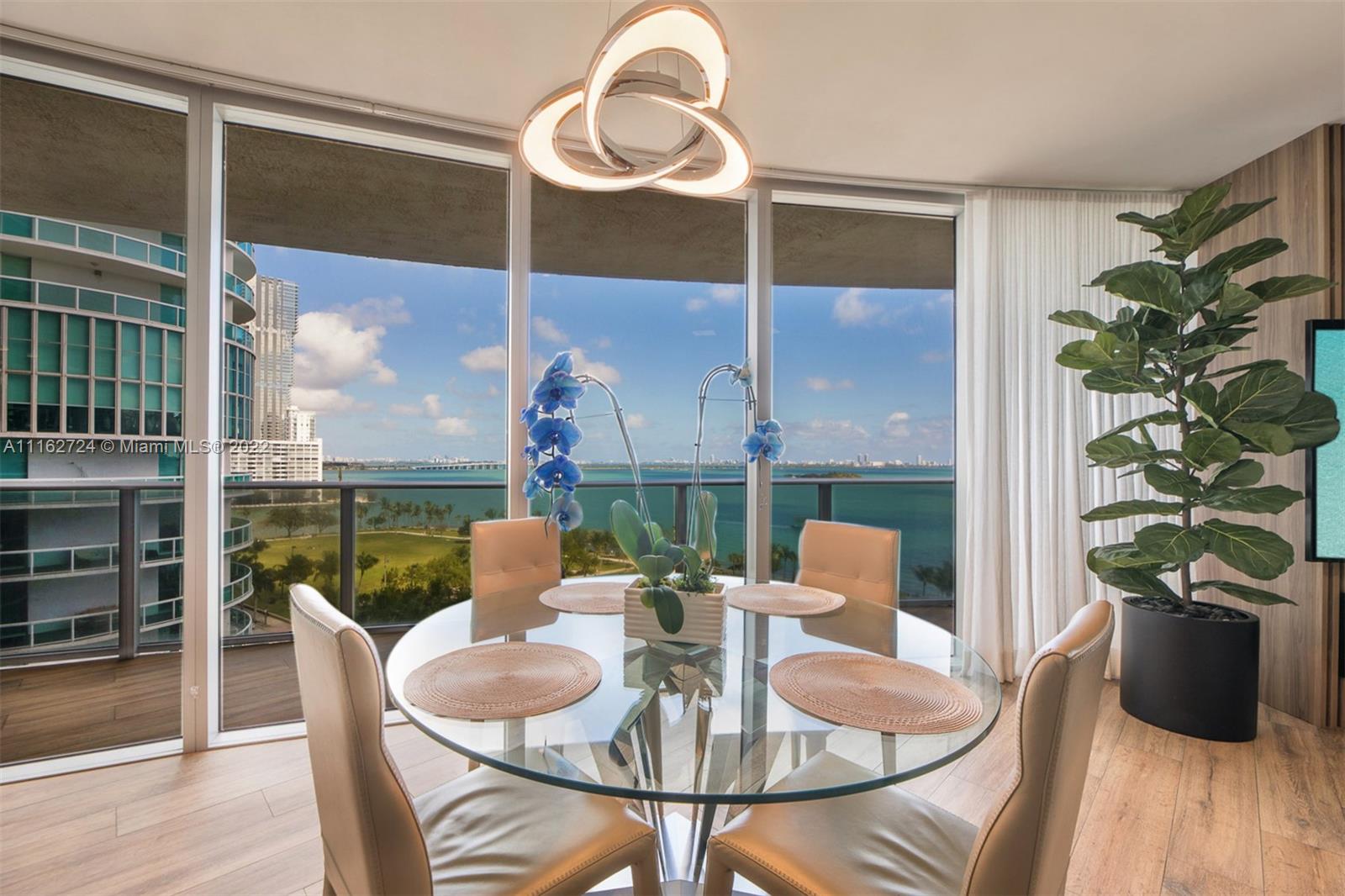 Magnificent 2,018 sq.ft. wrap-around corner with unrestricted view of Biscayne Bay. Private elevator foyer, 3/4 bdr/bath plus den converted in a 4th bedroom, adjacent parking spot located on the same floor. Unit facing NE w/ floor-to-ceiling tinted high-impact windows. Full-service building with valet parking, 24 hours concierge, gym, party room, movie theater, 2 pools, business center, kids' playroom, sauna, steam room etc. Walk to Publix, Arsht Center, Metromover, Museums etc. Centrally located close to SoBe, Brickell, downtown, Wynwood, Design District.