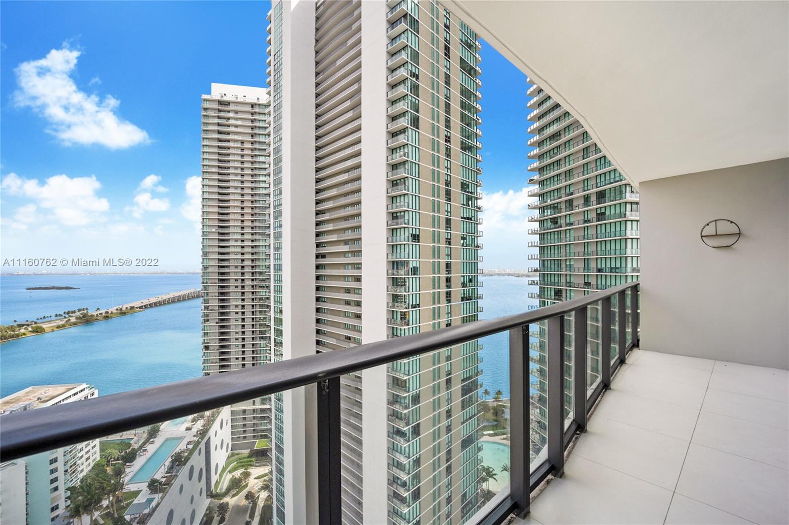 The BEST fully furnished apartment with an amazing water view to South Beach from 27th floor, is ready to move in! Brand new Building at Paraiso Bayviews with direct bay and water view with 1 bedroom, 1 Den, 1.5 Baths, walking closet, white tile floor, washer and dryer in the unit. Master suite with large glass enclosed shower. Italian Design Kitchen with bosh appliances, full services building with rooftop pool at 46th floor, second pool at 5th floor plus, spa, sauna, state of art gym, kids' room, social room with billiard and projection tv screen. One assigned parking space, number 3088 and valet. Huge balcony. Has many shops and restaurants within walking distance.
