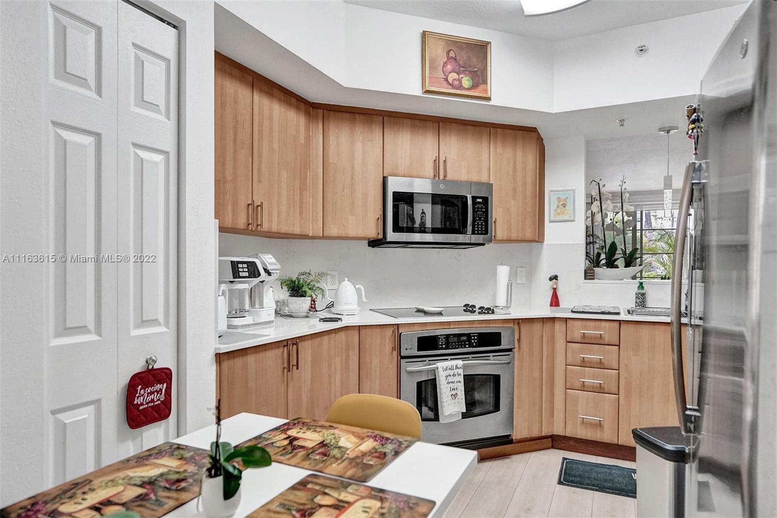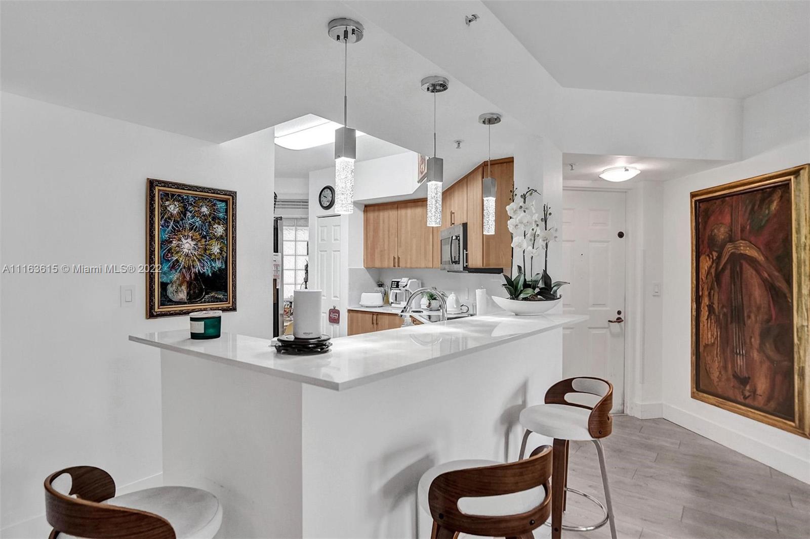 Bright and spacious, corner 2/2 plus den at the Courts. Den is located on the lower level, it features a private entrance both from 2nd Street and the parking garage. Lots of upgrades, such as wood flooring, new kitchen countertops, new blinds, and new closets. Walk to all South of Fifth has to offer while living in this resort-like community, which includes two pools, a gym, a social room, and barbecue area.