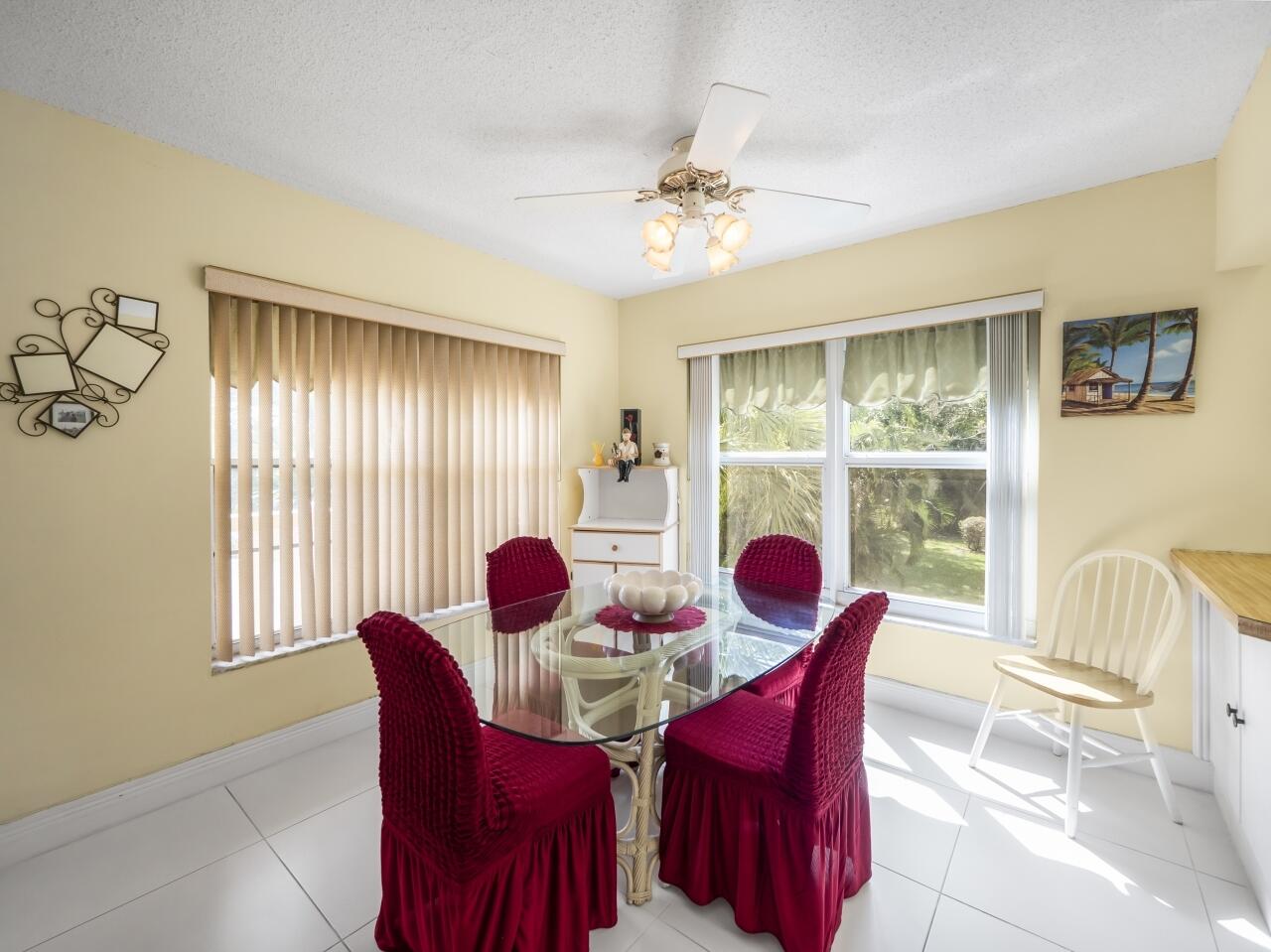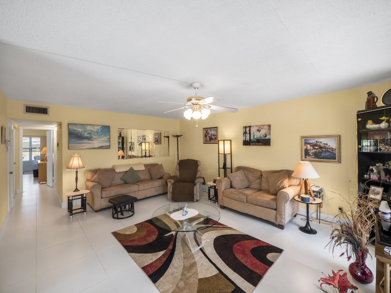 Spacious corner unit rarely available with elevator bldg. Furnished, As-is Sale absolutely impeccable and move in condition. Light and bright with side windows in the kitchen, dining Room and master Bedroom. Title throughout and closets galore! Hurricane protection on all windows. Enclosed Florida Room overlooking lake. Century Village 55+ Adult Community shuttle buses to many places, entertaining, tennis, excellent health & fitness center. Century Village is close to the Turnpike, 5 minutes to I-95, CityPlace downtown upscale shopping, the Intracoastal and the PBI Airport and close to Palm Beach. Enjoy the beautiful clubhouse with many activities, physical fitness, dancing, shows, educational classes, also an indoor swimming pool and spa.