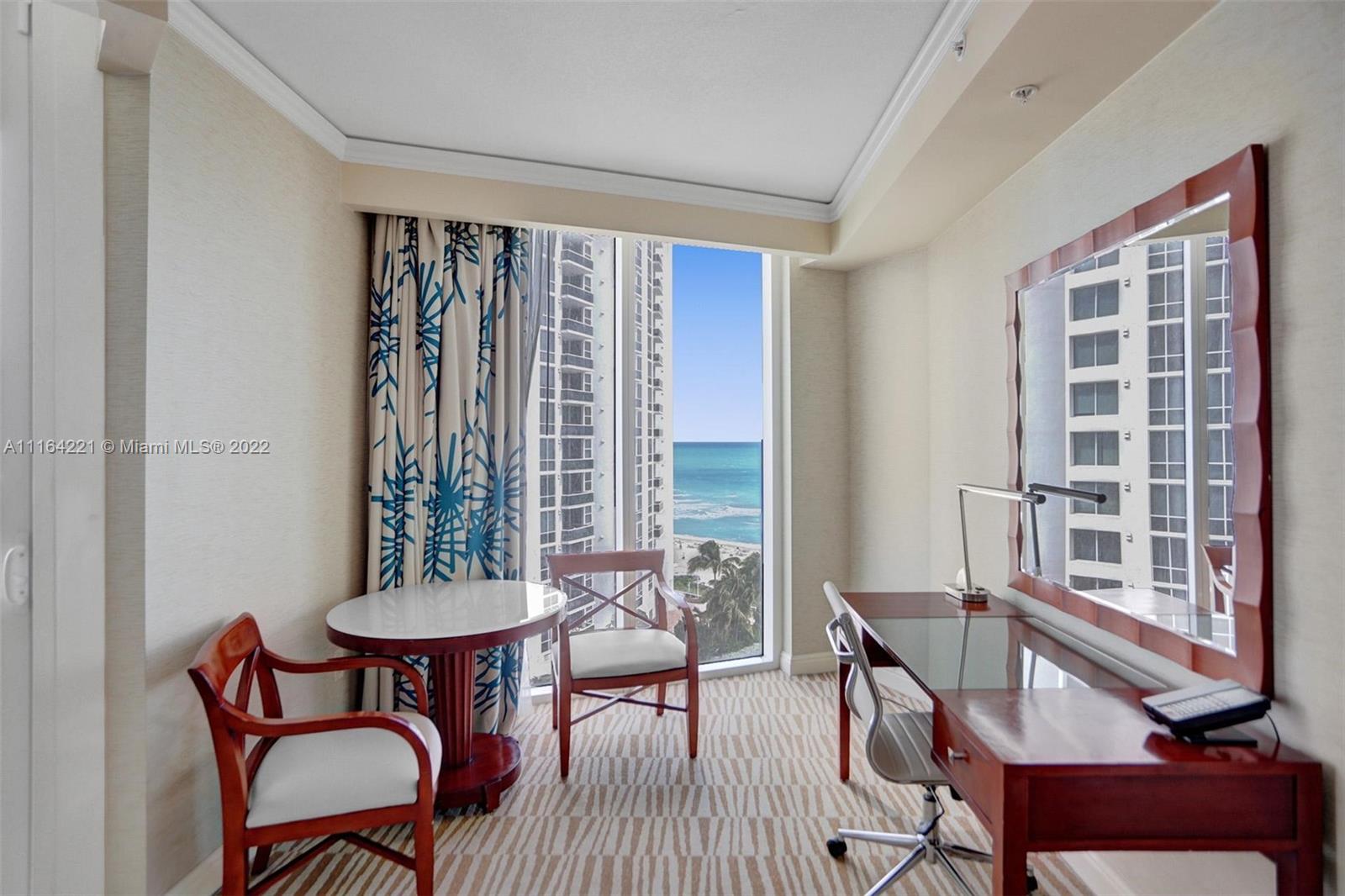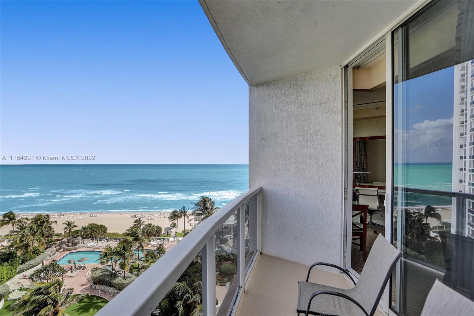 UNBEATABLE & EXCLUSIVE OCEANFRONT LOCATION! Beautiful oversized 1/1 condo overlooking the Ocean, pool, tennis & soccer courts in the beautiful Sunny Isles Beach. With almost 1,100sf, offering ample space and designer's details for an exclusive luxury living experience, or to rent through AirBNB or the Trump International hotel rental program. This amazing unit its been fully furnished by the T.I. hotel & accents include: master bedroom w/king-sized bed, designer's working station (desk) & a super spacious walk-in closet, master bathroom w/double vanitie & deep soaking tubs, fully-equipped kitchens & private furnished balcony overlooking the Atlantic Ocean & Intracoastal Waterway with E, N & W views. At just across the street from the best restaurants, bars & best shopping experiences.