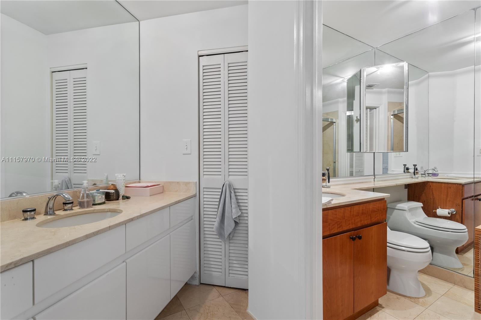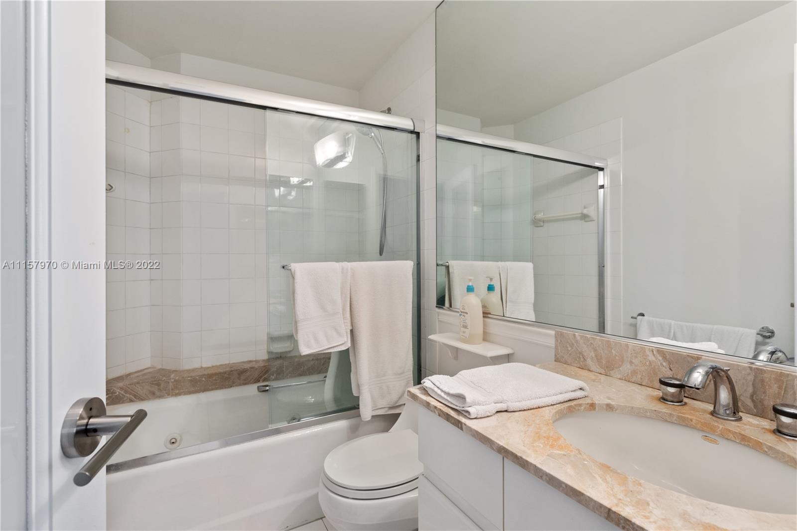 Gorgeous two bedroom, two and a half bathroom unit at One Tequesta Point. Unit has tons of natural light and high ceilings. Split floor plan. Remodeled Kitchen and stainless steel appliances, new tile floor throughout. Spacious living and dining area great for entertaining. Great size master bedroom with one of a kind walk in closet and nice bathroom. Second bedroom en-suite. Balcony offers a unique view of the Miami skyline and partial view of river. Building amenities include: pool, exercise room, squash and racquetball courts, barbecue area and business center. Additionally, Brickell Key offers recreational parks, a 1 mile strolling path that surrounds the island, and its high-end restaurants and local market.