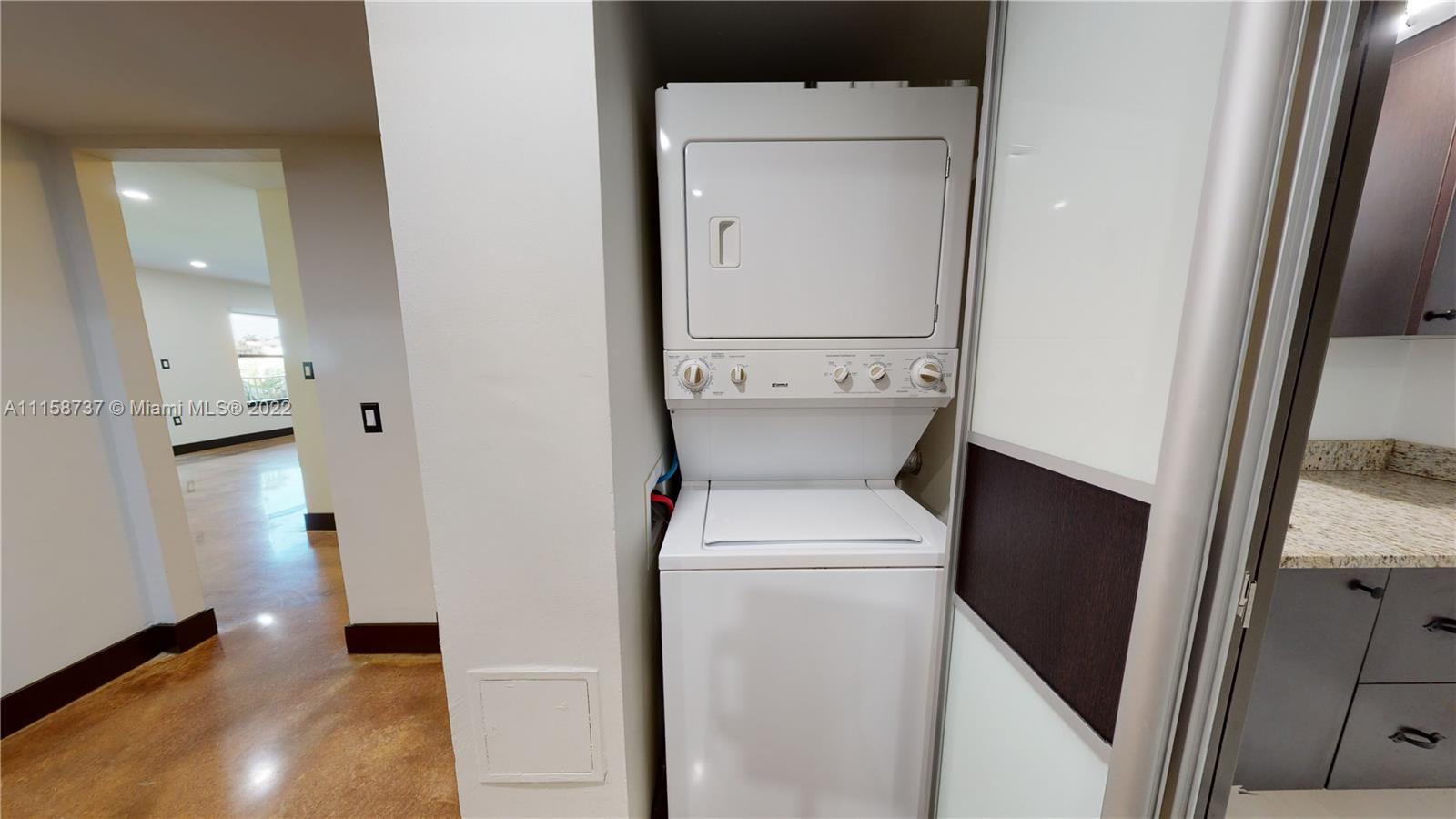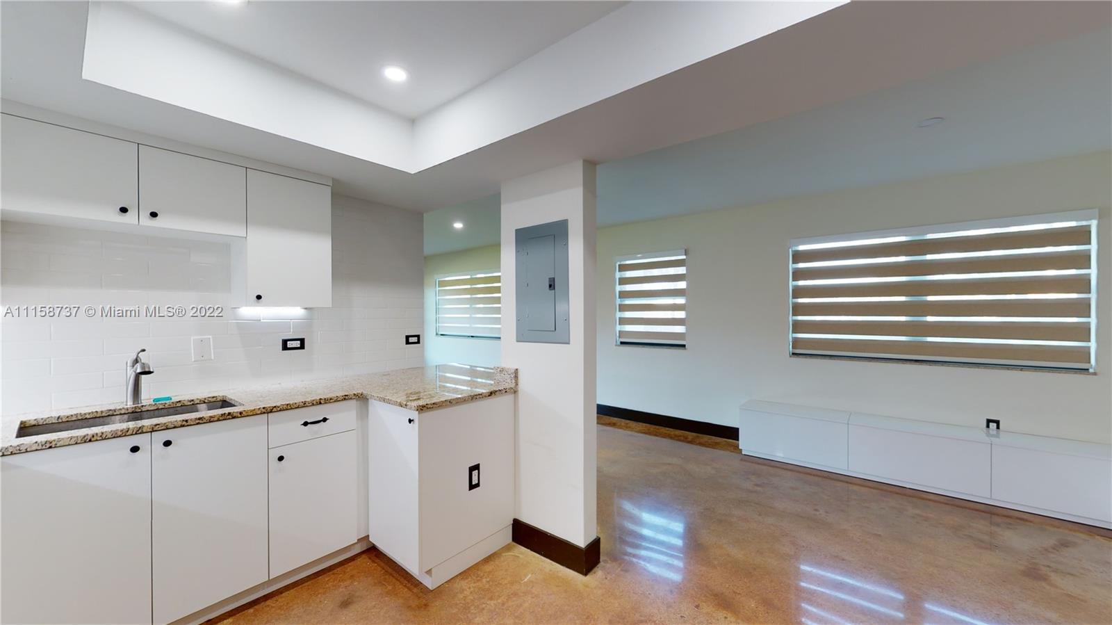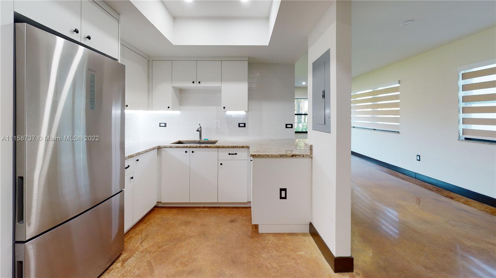 Spectacular remodeled 1 bed/1 bath apartment with intracoastal view. Stained concrete floors, large living area open to breakfast nook & built-in storage benches, Kitchen opened countertop area for entertaining, dining, or working from home. S/S E-Oven & Refrigerator. Master bedroom was converted for special needs as bedroom, closet, study, or sitting area. Master bath+ modern shower, floating cabinets. Laundry area with door. Designer taste upgrades. Located in one of the most desirable buildings by the beach, steps from Famous Hollywood Broadwalk with many restaurants. Enjoy the amenities : 2 Heated pools, 2 tennis courts, gym, game room & much more!. Cable Tv, Internet/WiFi, Landscaping/Lawn Maintenance, Sewer, Trash Removal, Water included in maintenance. Click on Virtual Tour