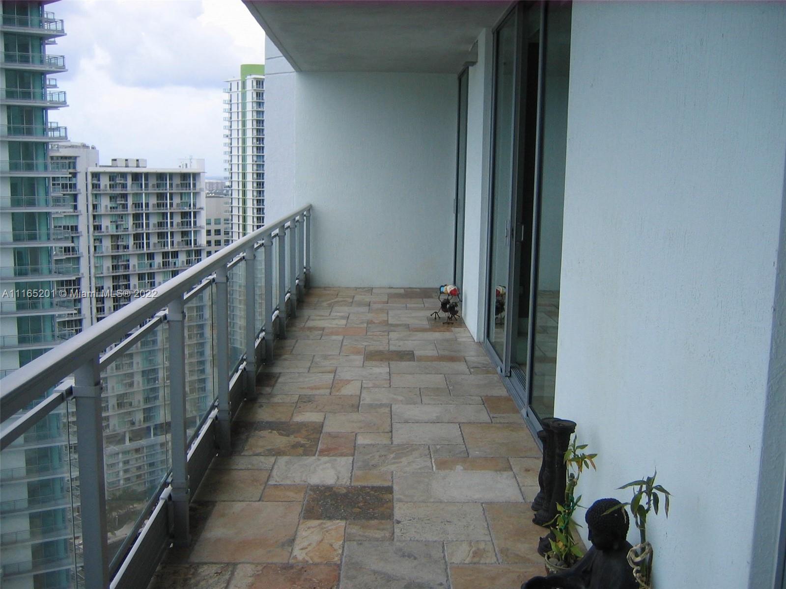 The Ivy in Riverfront, unit was completely redone in 2009 with new woodwork, all new solid wood doors, 40x40 Mabel flooring through the unit including the bathrooms, wood built out closets, stone and glass tile walls throughout the unit and new Ac and hot water heater in 2020. Tile walls and decor throughout the unit glass shower. Huge balcony 250 square feet with stone flooring on the balcony. View if the river and Brickell. Tenant occupied till June 30th tenant paying $3000 a month. 24 hours notice to show the unit. Building has pool, gym. spa, valet, business center, and party room. 2 parking spaces and 2 storage units include with the unit.