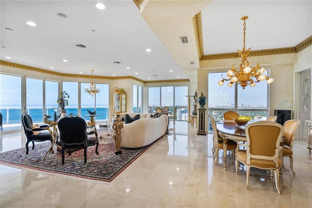 EXPERIENCE THE RENAISSANCE AT L'HERMITAGE: Most Gorgeous Southeast Ocean views from every room! Ascot Penthouse with 4 bedrooms, 4.5 baths, 11 foot ceilings, 2 Southeast balconies, marble flooring inside and out. Dream home in the sky. Oversized master bedroom suite has 2 separate bathrooms, 2 large closets, and large seating area. Oversized kitchen. 2nd master suite has walk in closet/large bath. Private elevator/foyer. L'Hermitage is a Resort-like complex with 10+ acres of oceanfront property incl. 600 feet on an attended beach. The 2.5 acre pool deck has spas, pools, and café. Fitness center with his/her sauna/steam/massage rooms. Full valet and concierge services included. Tennis facility onsite. Pet walk area. Walk to fine dining, salons, shopping. Minutes to Las Olas and airport.
