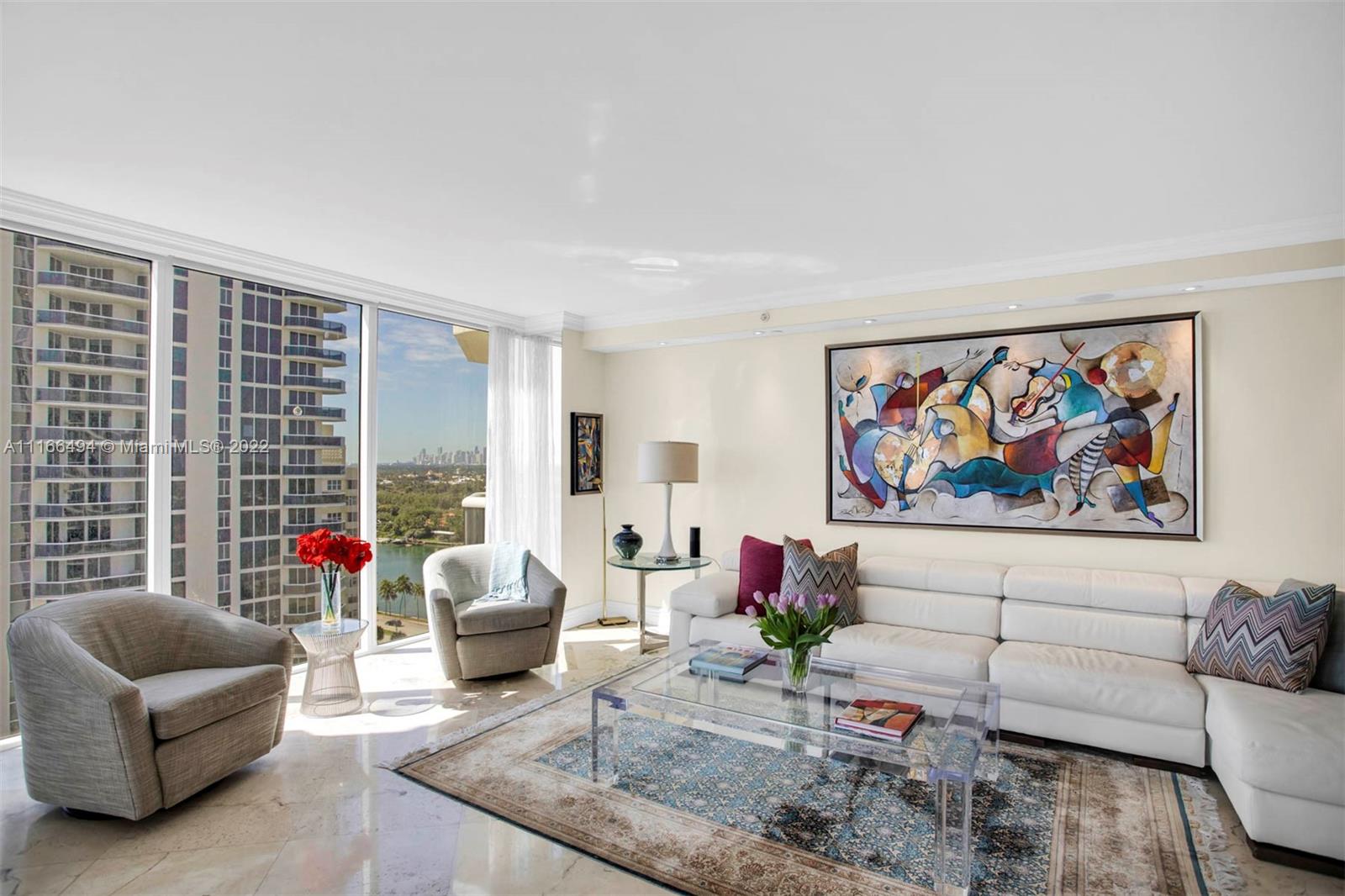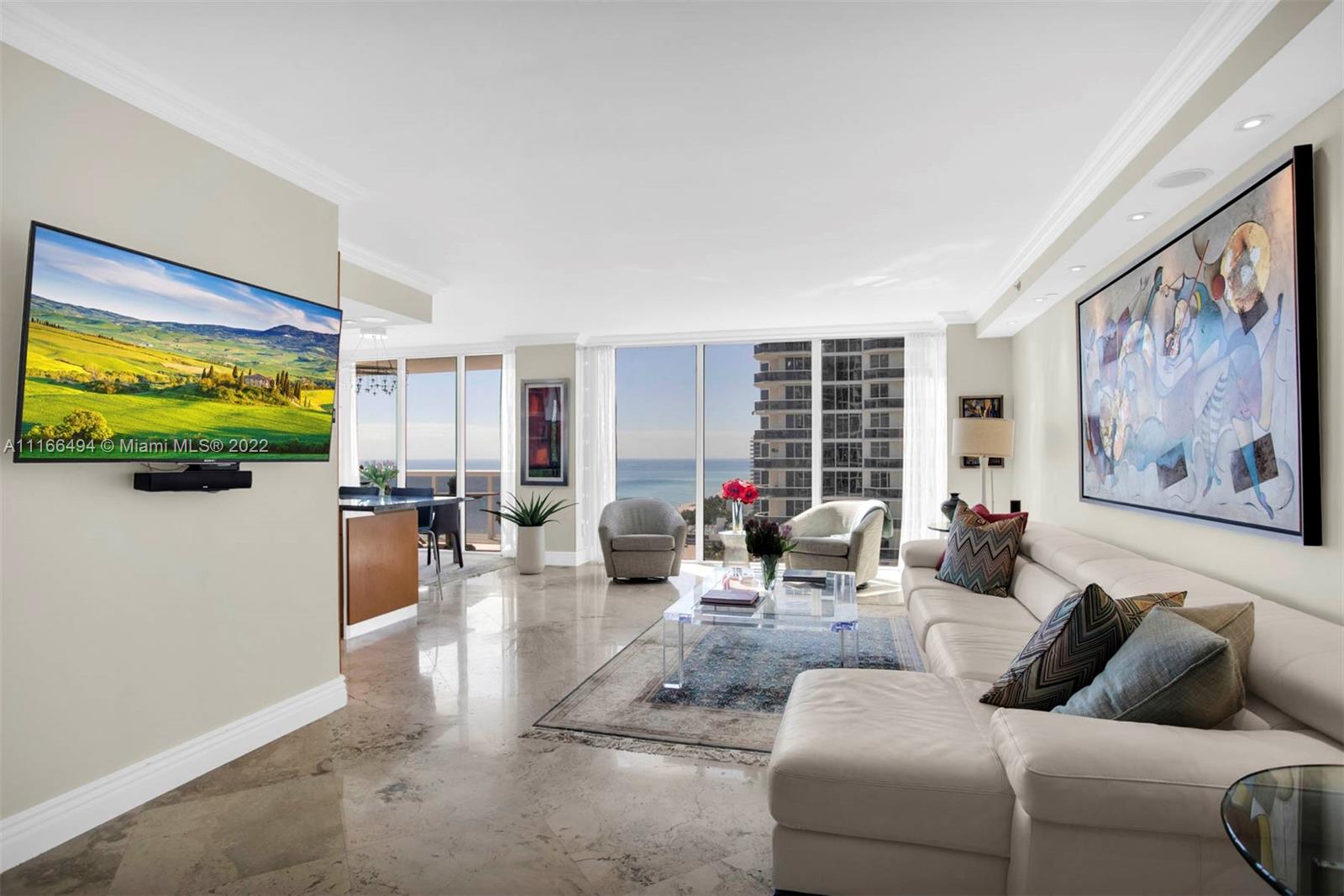 Direct oceanfront 3 bedroom & 3 bath residence at The Blue Diamond Condo, one of the most coveted locations in Miami Beach. Spectacular views of the ocean, Bay & the Miami Skyline. Some of the features includes; Open gourmet kitchen equipped w/ stainless steel appliances, wood cabinetry & granite counter tops; large living & dining area; floor-to-ceiling windows, electric shades, surround sound, beautiful flooring, exquisite lighting, double door entry & 2 large terraces, The main suite with a large bathroom that includes a large glass-enclosed shower and jacuzzi. Custom built walk-in closet and more details are found throughout this unit. Enjoy luxury beachfront living with five- star resort-style amenities and services.