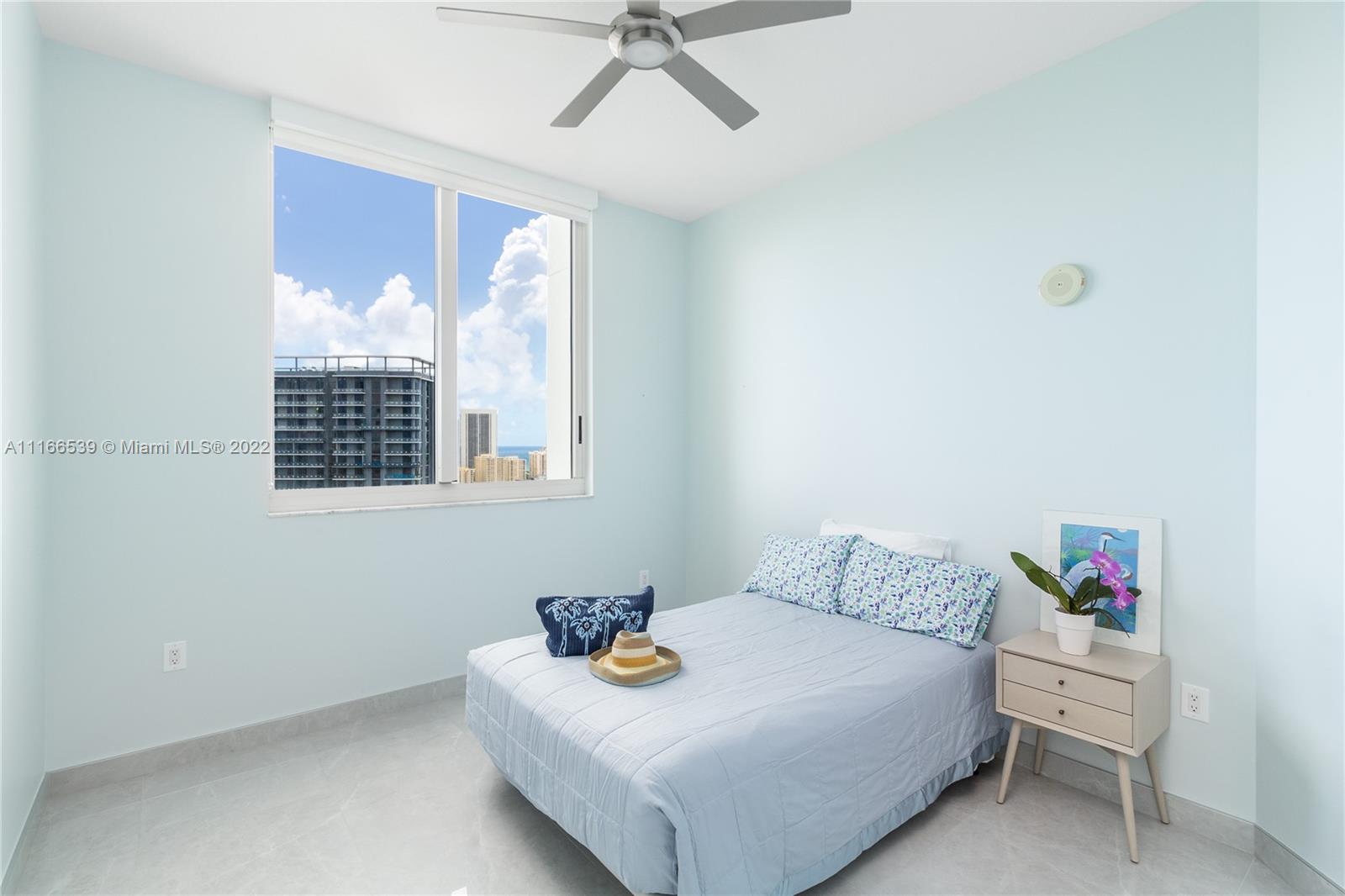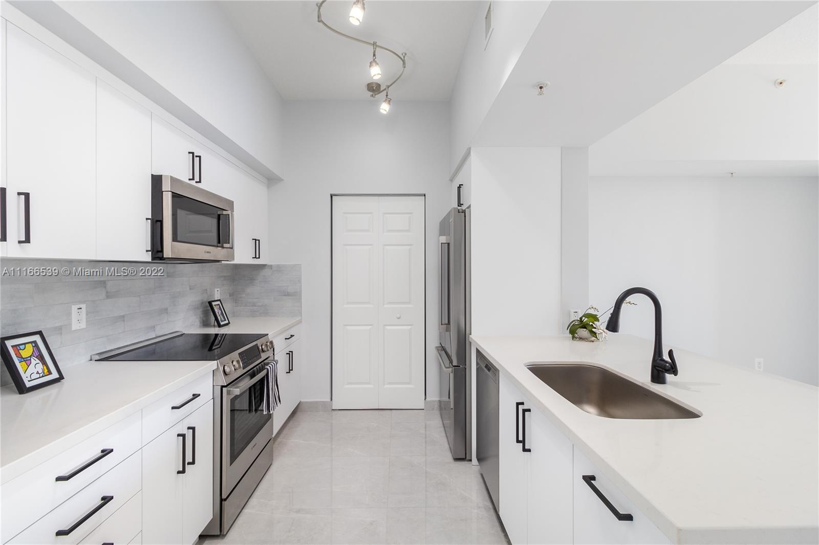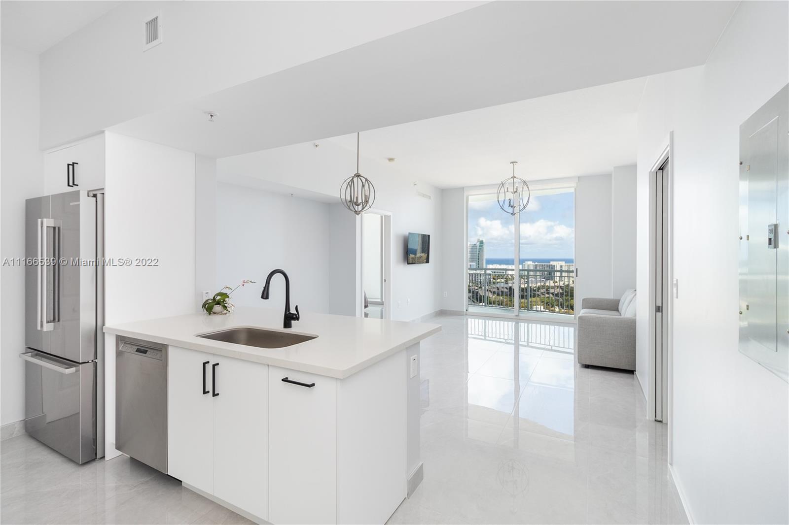 Recently finished complete renovation. This split 2 bdrm w/2 full bath has 10 ft ceilings. All Kitchen appliances are Bosch the electric range, dishwasher, microwave/convection oven, quartz countertop & tile backsplash. Pantry & Laundry room w/ full-size LG washer/dryer. Seamless tile floors 48 X 24. Both baths have been updated w/ all new tile, vanities, medicine cabinets, lighting, glass shower doors, Kohler showerheads. The Master bath has an extra-large sink & a seat in the shower. Custom closets throughout. The Master bedroom has its own balcony entry. All rooms look beyond the golf course towards the ocean & sunrises. A fully equipped gym overlooks the pool. Covered, above-ground parking. 24 hr security, concierge & valet service. Easy access to beaches, shops, I95 & FTL Airport.