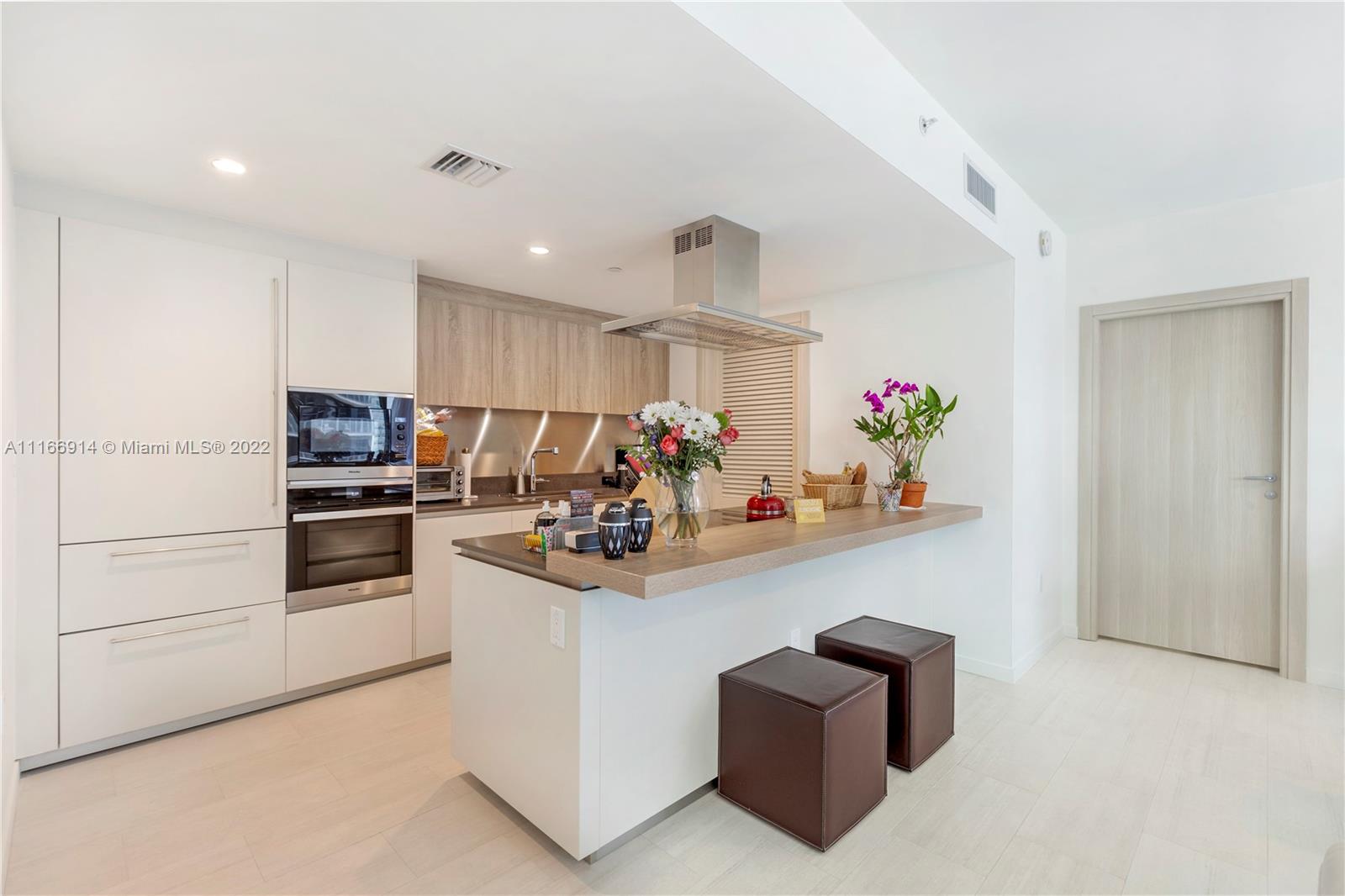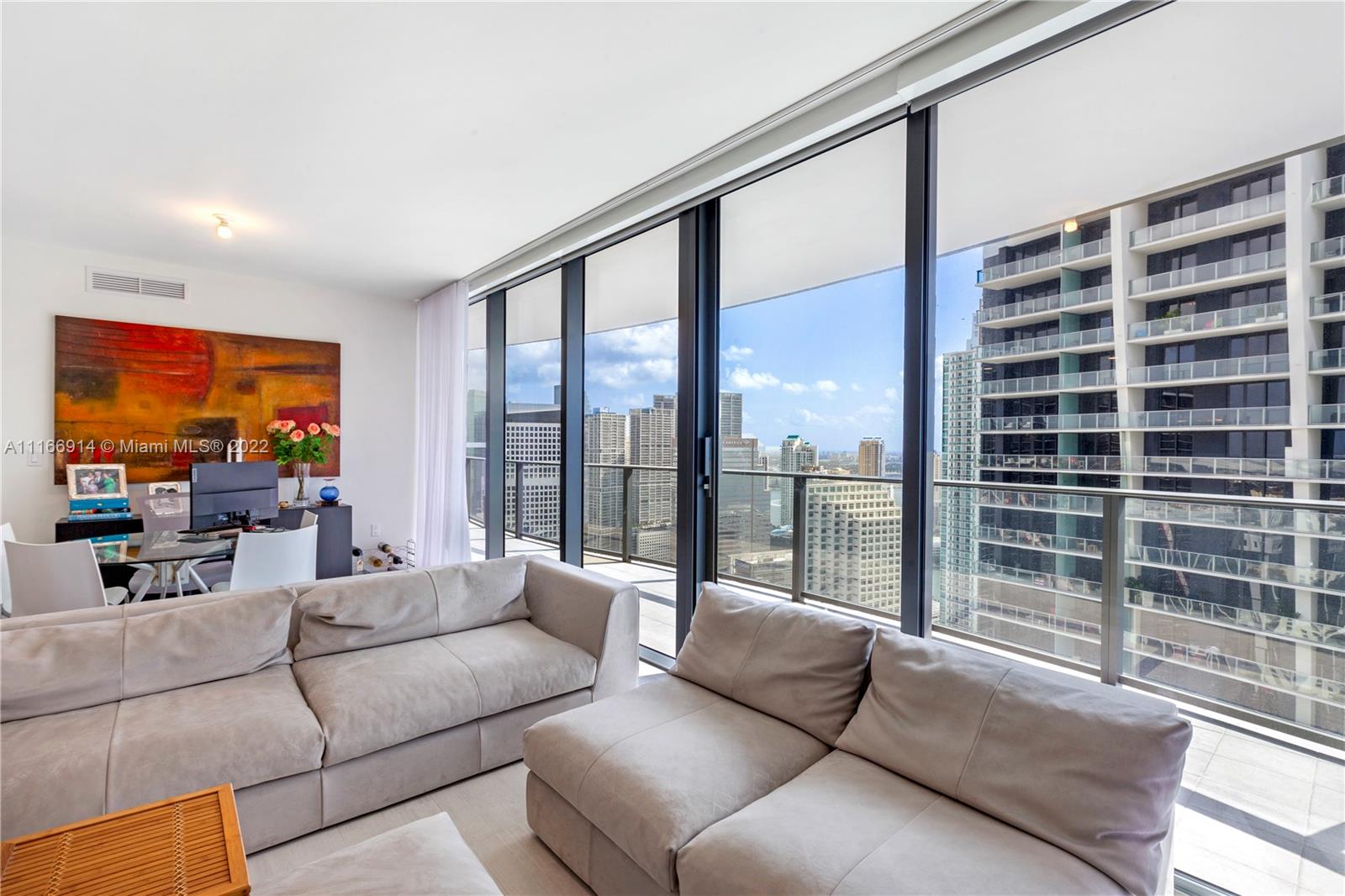 Magnificent skyline views complete this modern condo in the unique architectural icon developed by Ugo Colombo. With 1,236 Sq.Ft., its glass walls and elliptical balconies wrap around the 2 bedrooms and 2.5 bathrooms, kitchen, and living/dining room area. The imported Italian marble floors, accent walls, custom-designed cabinetry, and high-end, stainless steel appliances create a sophisticated style for easy living. This unit has a spacious washer and dryer walk in closet, smart master Toilet ,remote control blinds and 2 parking spaces.The amenities include a spa, gym, 2 pools, theater, lounge, billiards room, personal concierge, children's pool, and playroom, plus a secure parking garage with electric vehicle charging stations. Walking distace to all Brickell has to offer.