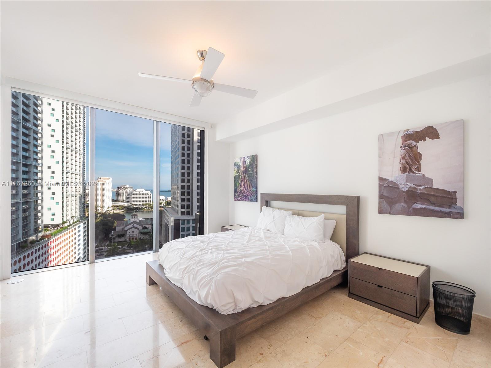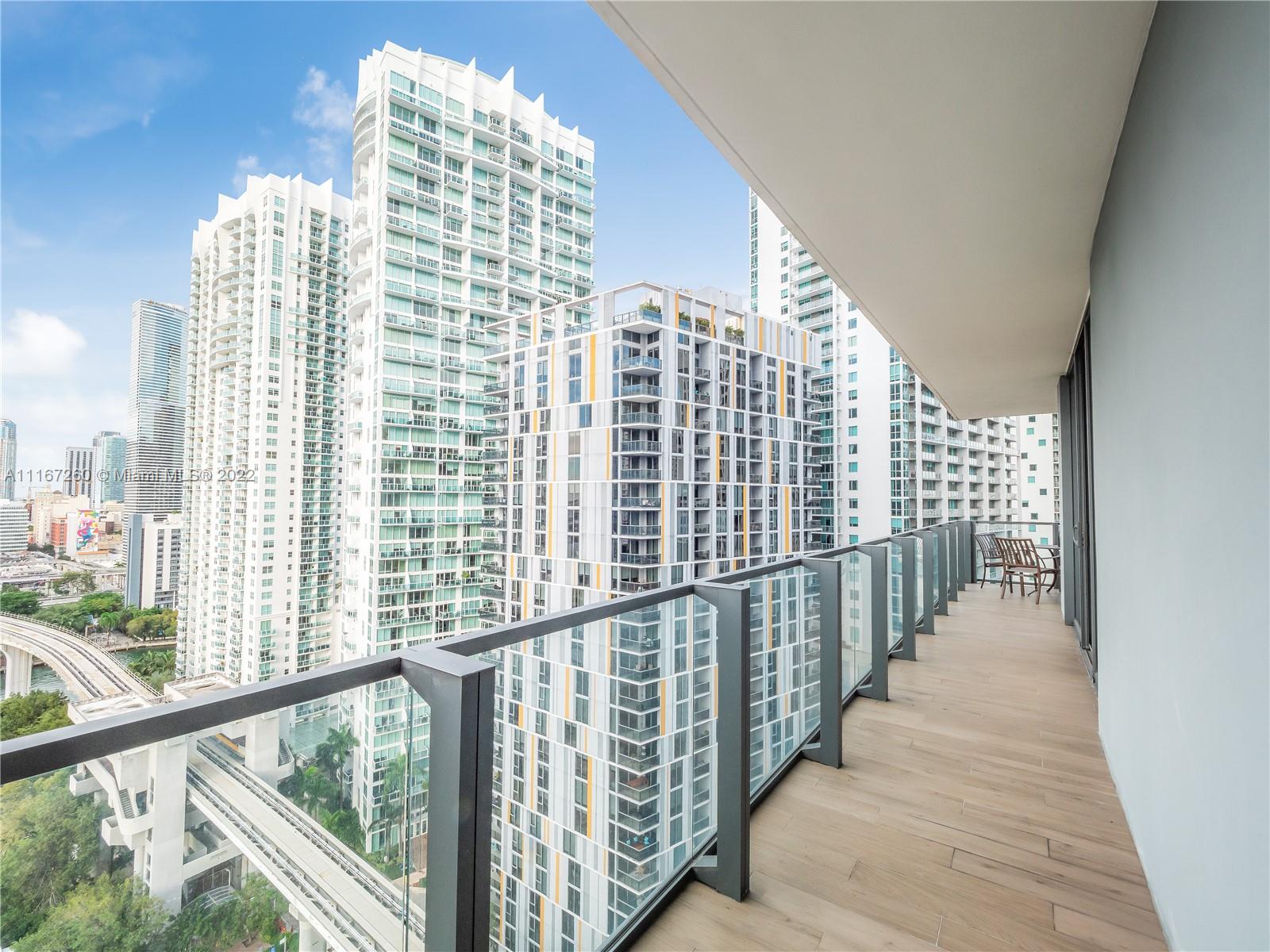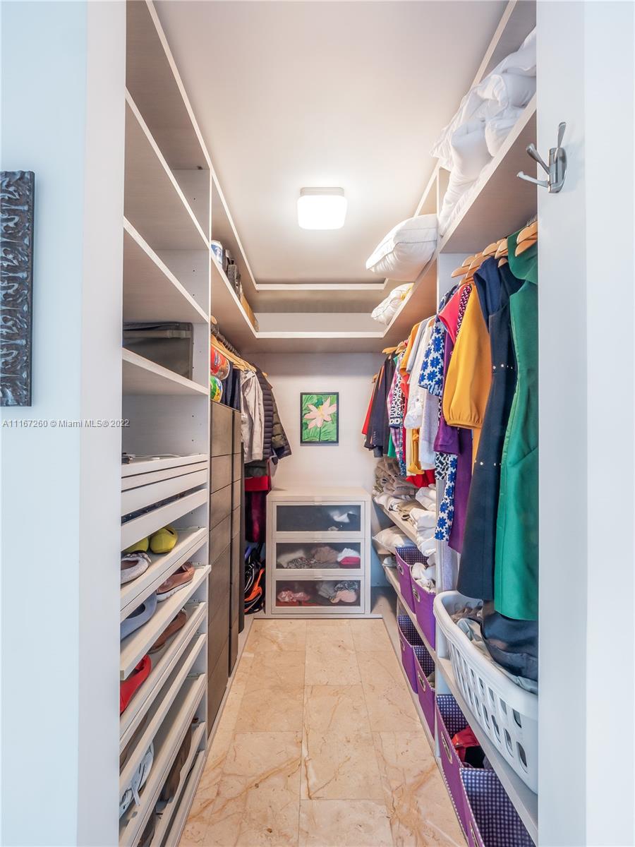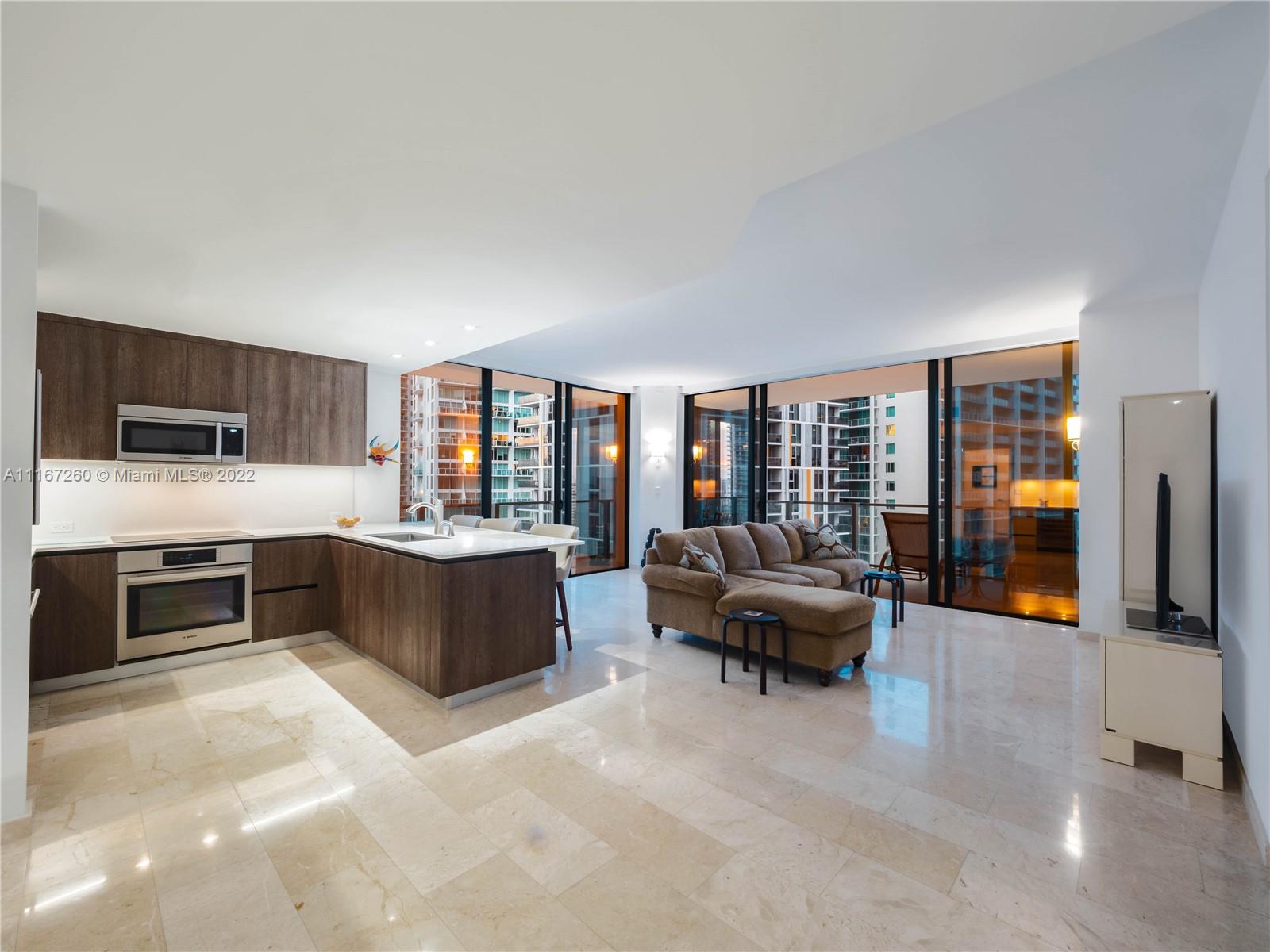 This unit is fully upgraded to give it a more practical and warmer feel. Bar / Wine Cooler station removed from the kitchen to its own stand-alone space using materials from developer with 4 extra cabinets for storage. Kitchen has upgraded cabinets. This Unit features 2 bedrooms with full walk-in closets and in suite bathrooms. The master bathroom features his/hers sinks, shower with custom shelving installed, brand new anti-fog mirrors, roll out shelves in the walk in closet, and remote controlled black out shades. The 2nd bedroom is currently used as an office with space enough for a queen-sized bed and extra linen closets in the bathroom - also equipped with remote controlled black out shades. The living room has automated / remote controlled shades and extra custom lighting throughout.
