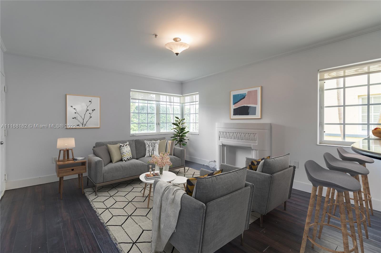 Beautiful renovated Deco home with two bedrooms, two full baths, washer and dryer, dishwasher, separate dining area and lots of windows and light. Quiet, well maintained complex in the heart of South Beach just steps from the ocean, shopping, south-of-fifth and the causeway to all major highways. Large pets welcome!