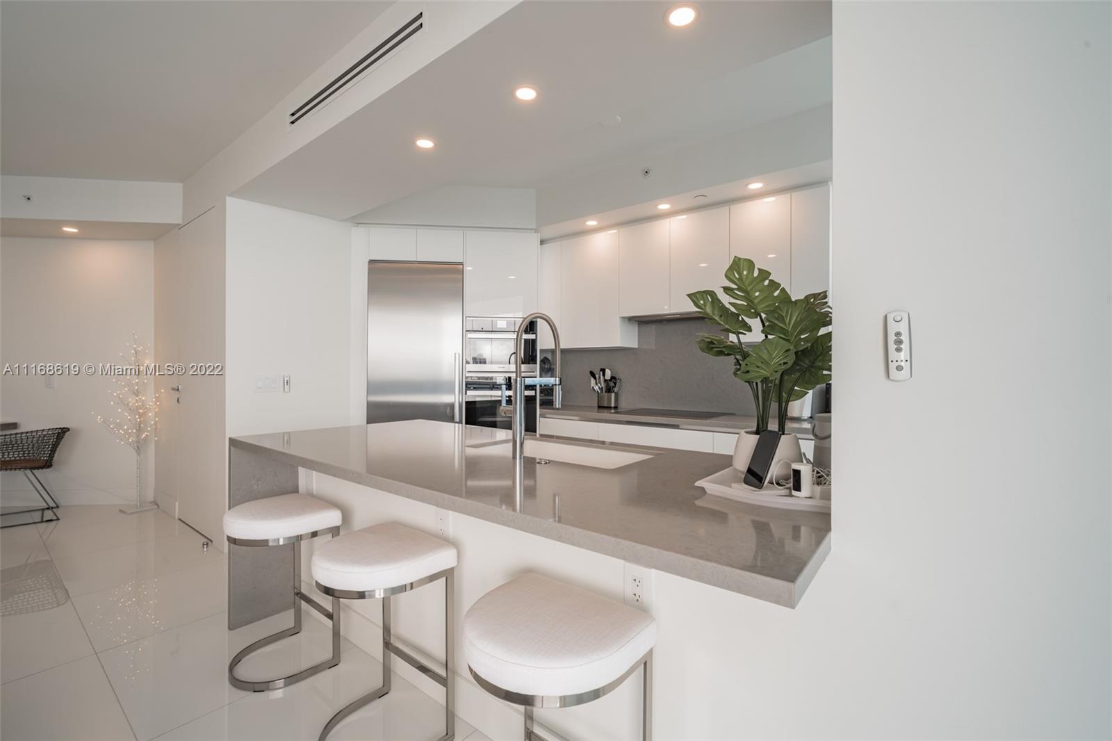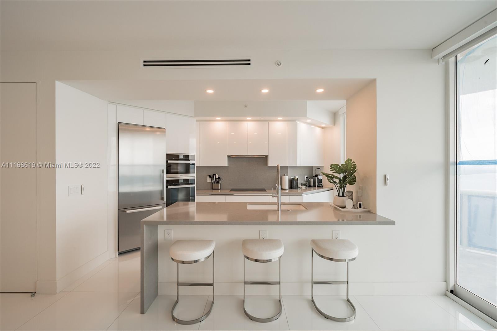Oceanfront Penthouse in Millionaire's Row. 2/2 fully renovated and furnished; featuring Italian kitchen with German Miele appliances, custom made quartz antimicrobial counters and backslash, soft close cabinets. Italian Madeli bathroom cabinets and Hansgrohe plumbing . Custom frameless 8' interior doors, 32” x 32” white polished crystal porcelain floors. Building offers state of the art amenities such as a sauna, gym, BBQ area, water sports equipment storage, social room , beach club, gazebos, valet parking. Renovation assessment will be paid in full by the seller, set for completion by 2022, to include new elevators, exterior concrete restoration, swimming pool. Minutes to South Beach, Brickell, Design District, Airports and prestigious Bal harbour Mall.