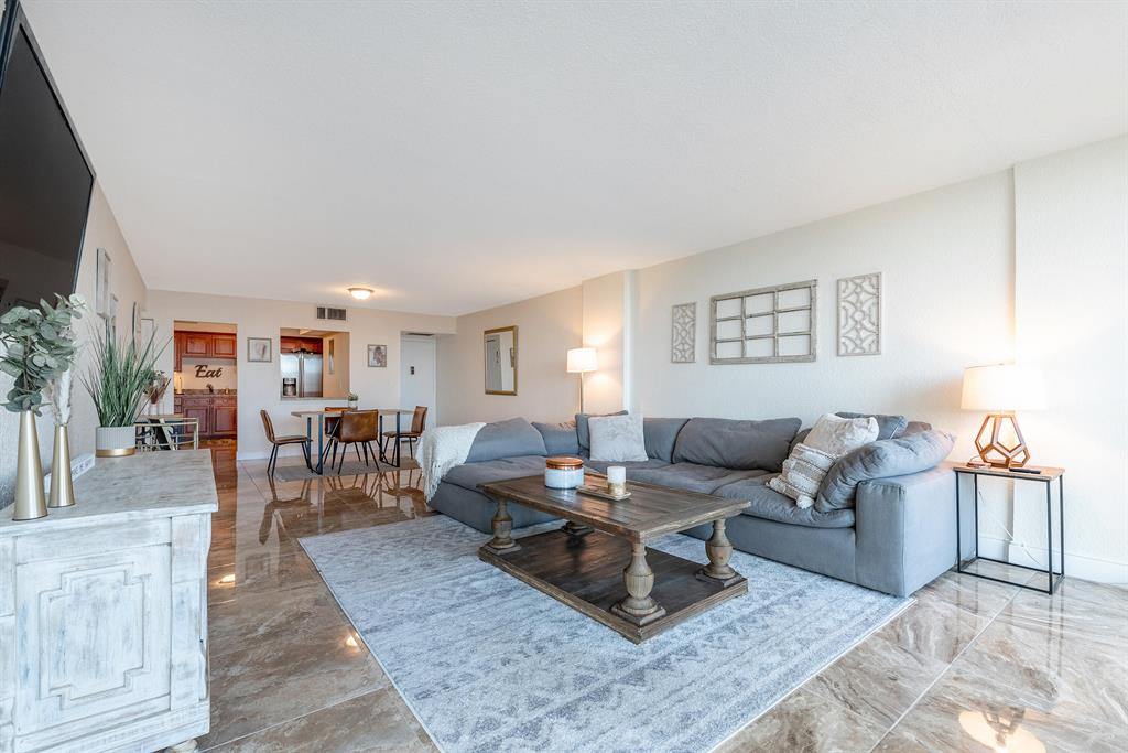 Updated 2 bedrooms, 2 full bathrooms in Quadomain ''Grenoble'' ocean front community. Partial water views from balcony with direct beach access. Updates include kitchen cabinets with granite counter tops, updated bathroom vanities with granite counter tops, porcelain tile flooring throughout unit, knock down walls, fresh interior paint, and new light fixtures and hardware throughout. Community offers 2 heated ocean front pool, 24 hour security, valet parking, sauna, gym, library, billiards, and restaurant.