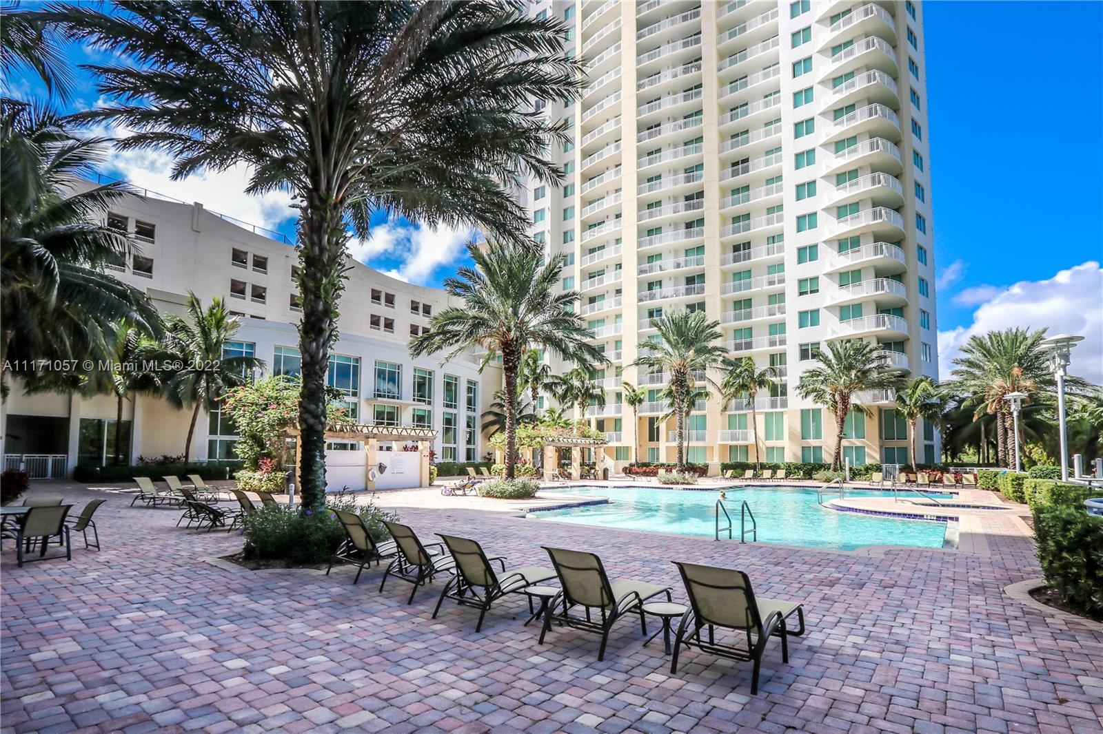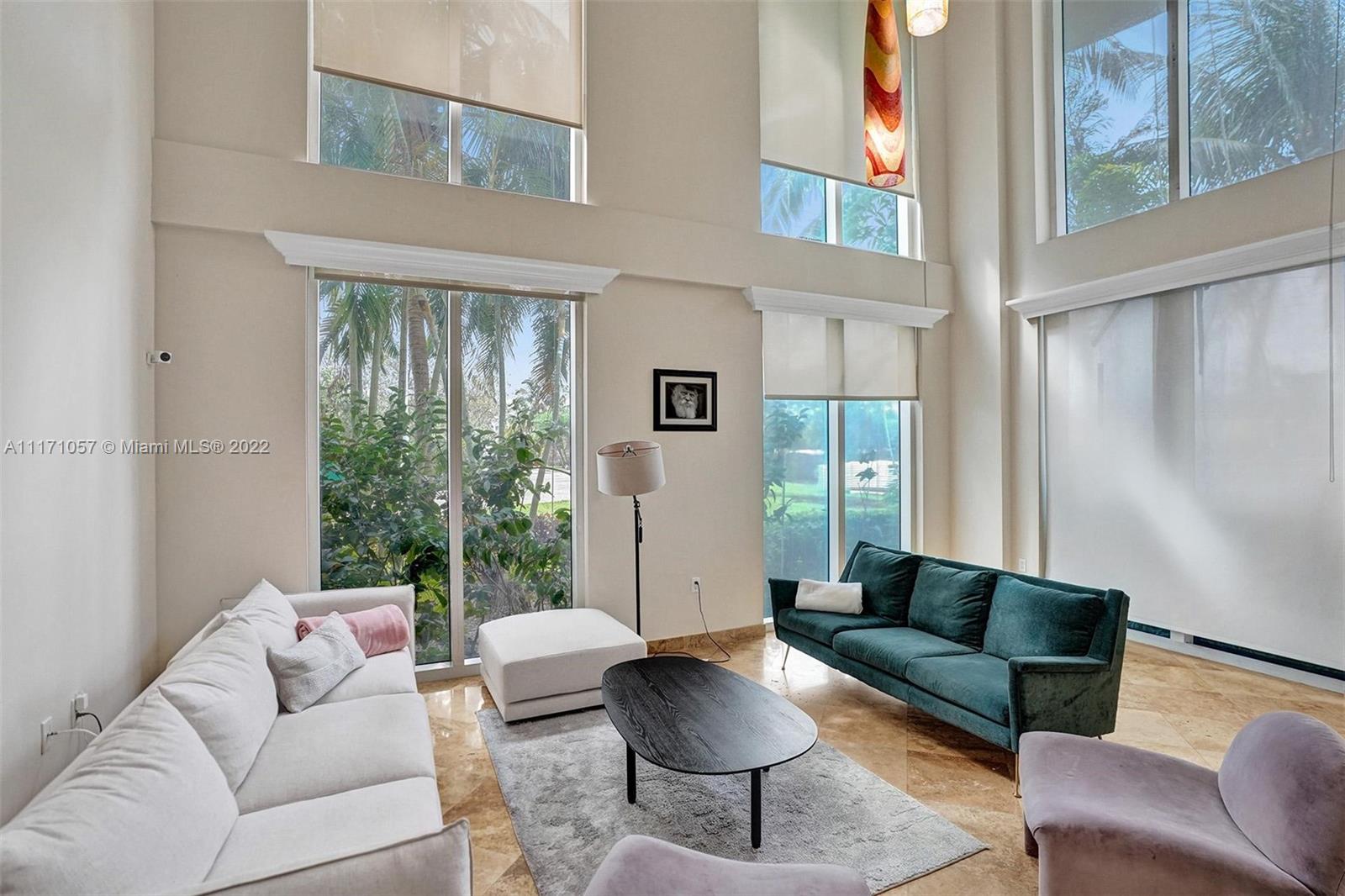 Fantastic 2 Story Townhouse/Condo corner unit at ground level with high ceilings in living room with floor to ceiling windows. 3/3.5 with den including 2 private patio/terraces. 2262 sf of total living area. Spacious, very bright with natural light. Travertine flooring lower level. Kitchen with wood cabinets, ss appliances, granite countertops, marble backsplash. One Suite downstairs plus 1/2 bath. Formal Dining room w/ crown molding. Amenities include, pool, spa, gym, movie room, business/conference room, social room, jogging tracks next to the tennis course located on . 24hrs valet services/concierge, guard at the gate. Great location, close to beaches, fine dining, shopping, Aventura, Gulfstream and so much more.