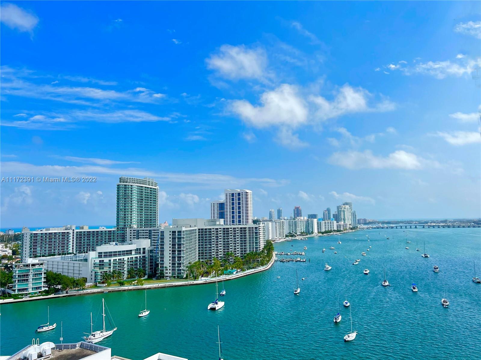 SPECTACULAR views of Biscayne Bay, the Ocean and South Beach from this spacious high floor East view 2BD/ 2BA. Remodeled kitchen features cherry cabinets, Uba Tuba granite counters and S/S appliances. Baths have been updated. Other features: Impact glass windows and door, Extra large walk-in storage closets. Costa Brava, a full-service building, offers wonderful amenities including new gym, heated pool, solarium, covered parking & BBQ. Great location across from Standard Hotel. And, steps to Sunset Harbour and Lincoln RD. Showings are limited: Wed & Fri: 10-11:30 am. Weekends: 2-4 pm.