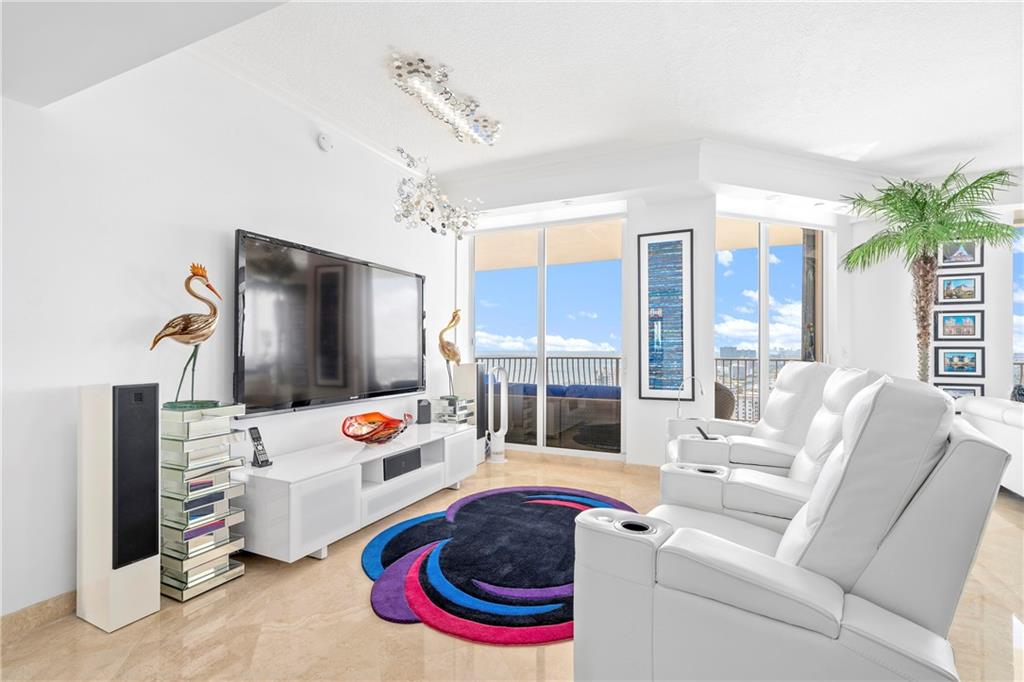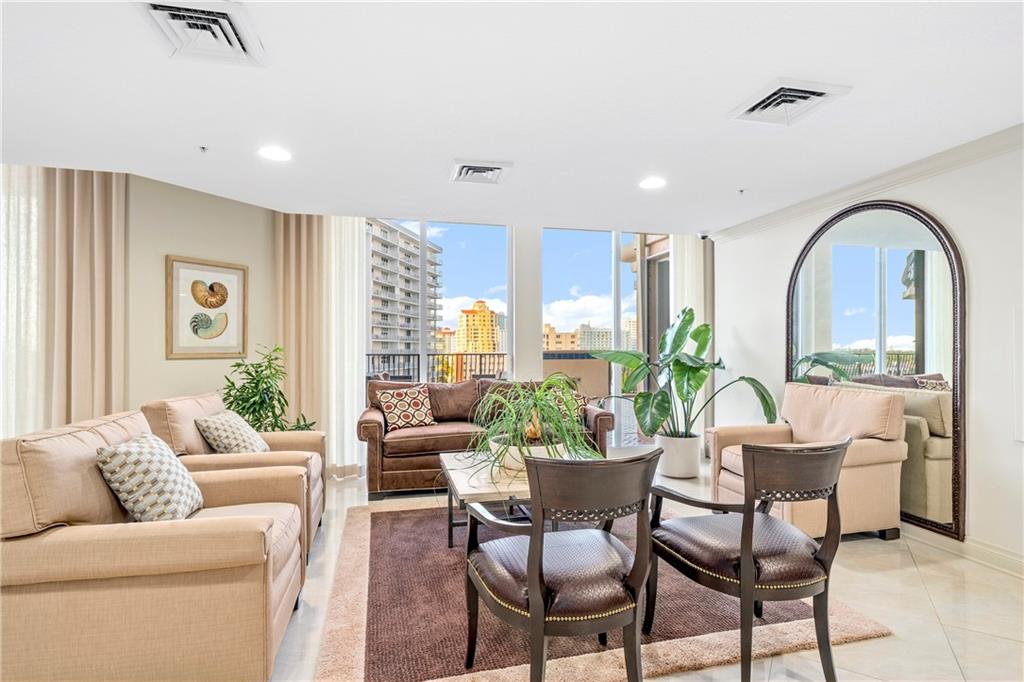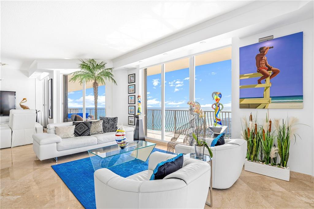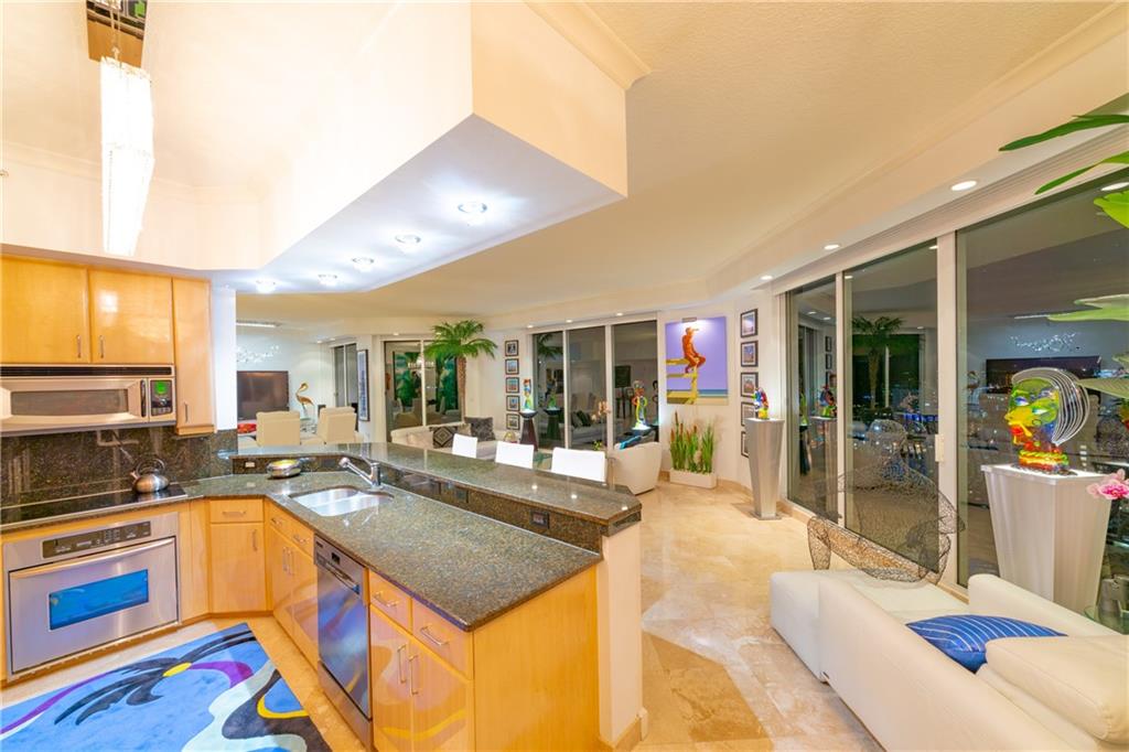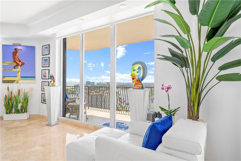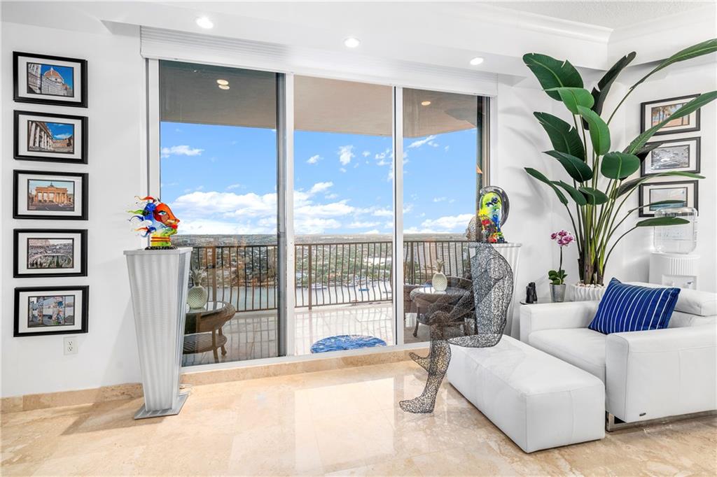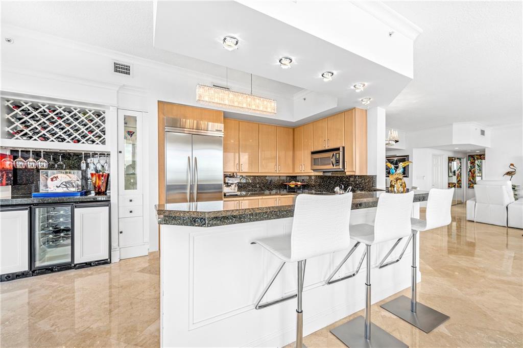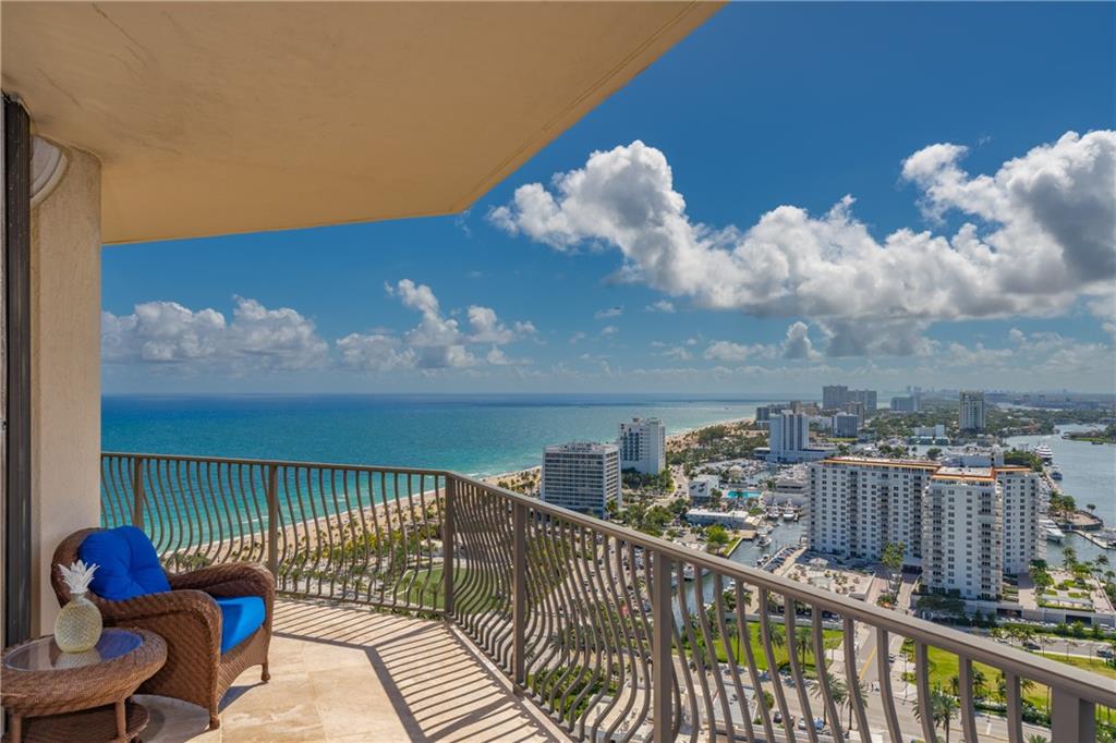 Breathtaking open views in every direction from this highly sought-after SW corner unit, offering sweeping panoramas of the ocean, Intracoastal, and city skyline - with an unbeatable location overlooking the Las Olas Marina and beach and panoramic views of the yachting capital of the world. Private elevator delivers you to an entry foyer and into this meticulously maintained lower penthouse originally designed by the renowned Steven G. The light-filled residence spanning 2,000 square-feet features marble and bamboo flooring throughout and high ceilings with beautiful crystal and blown glass chandeliers. A custom open kitchen showcases granite countertops, updated appliances, and a breakfast bar, plus a built-in bar area with a wine rack and cooler perfect for entertaining.